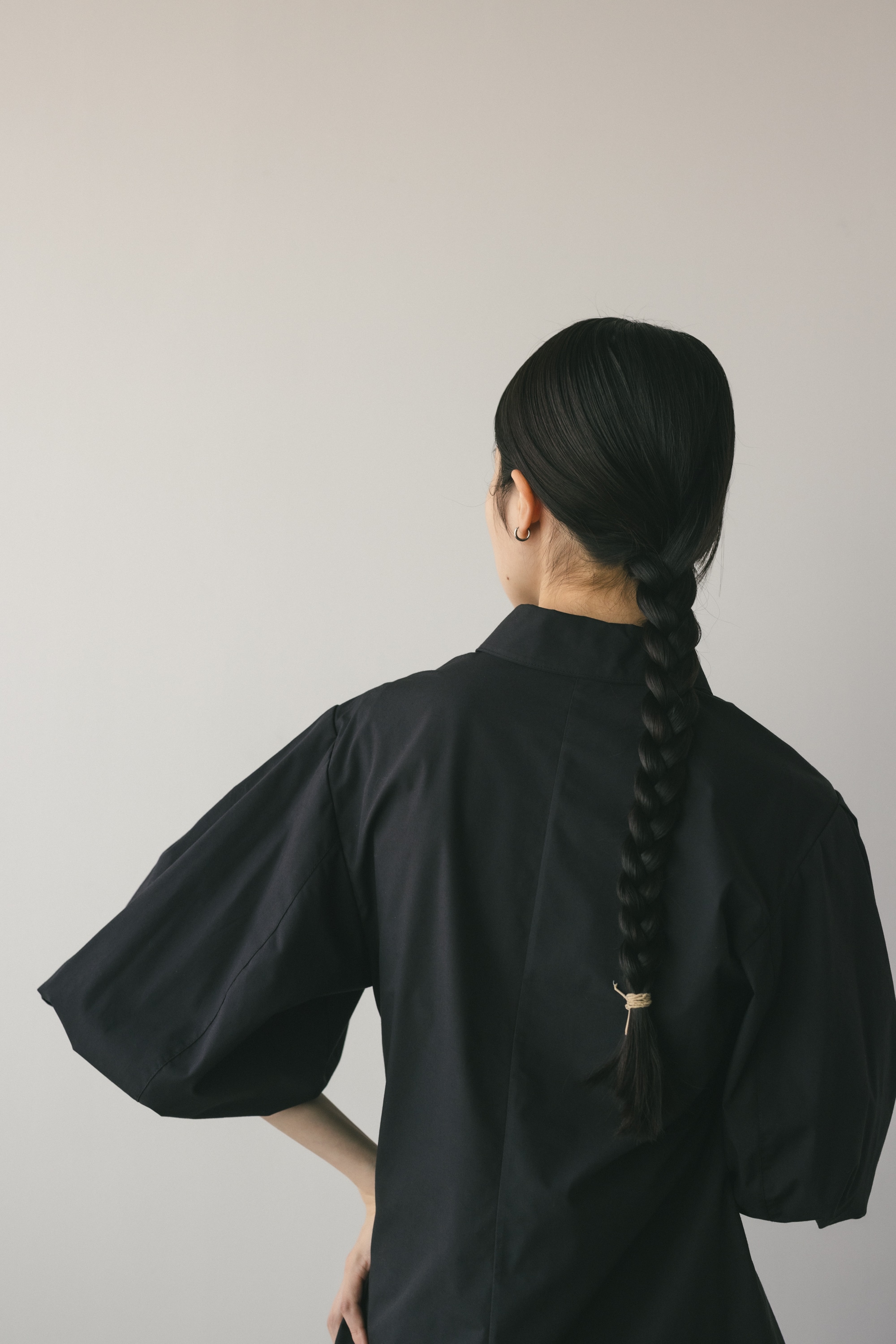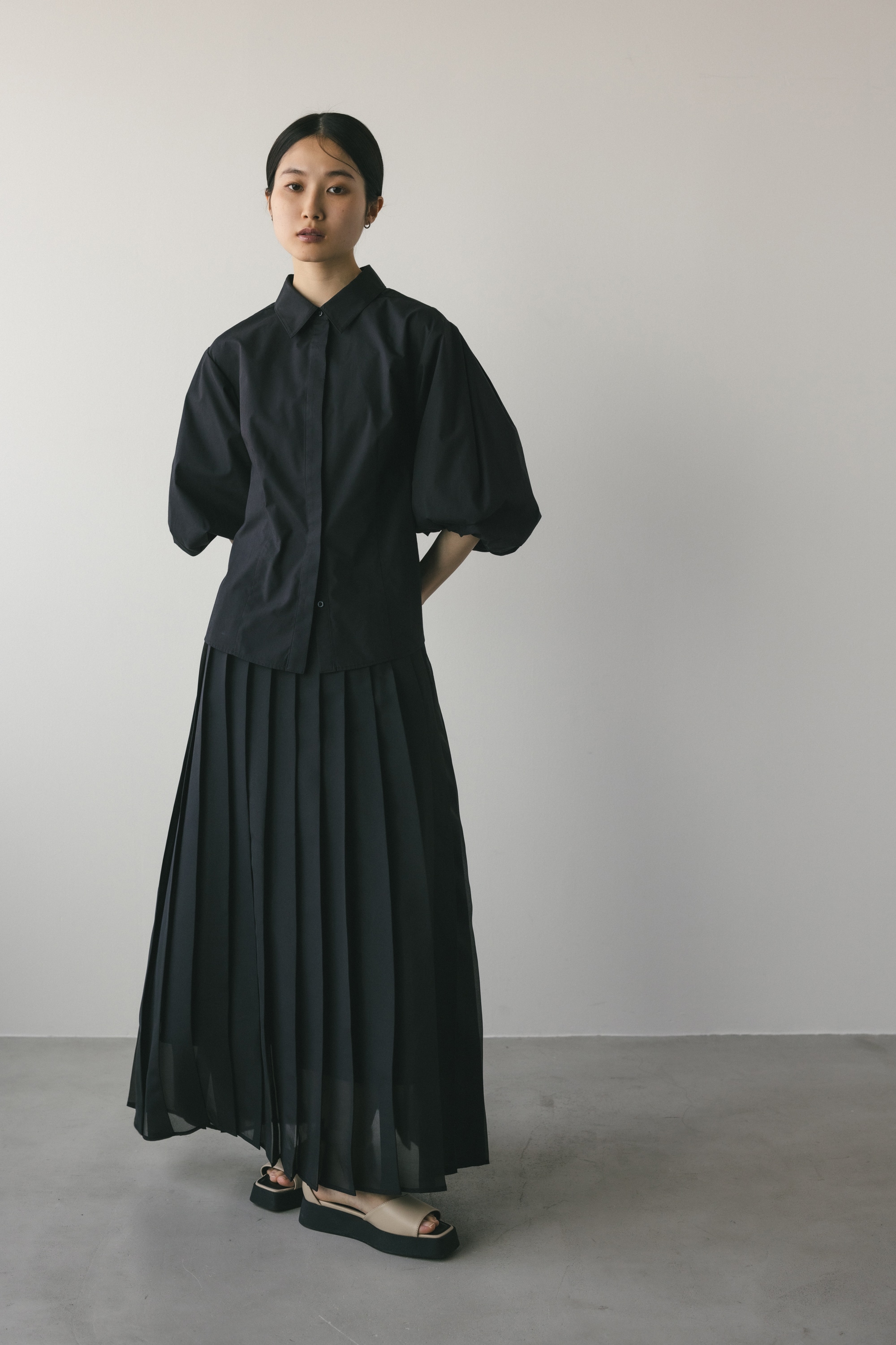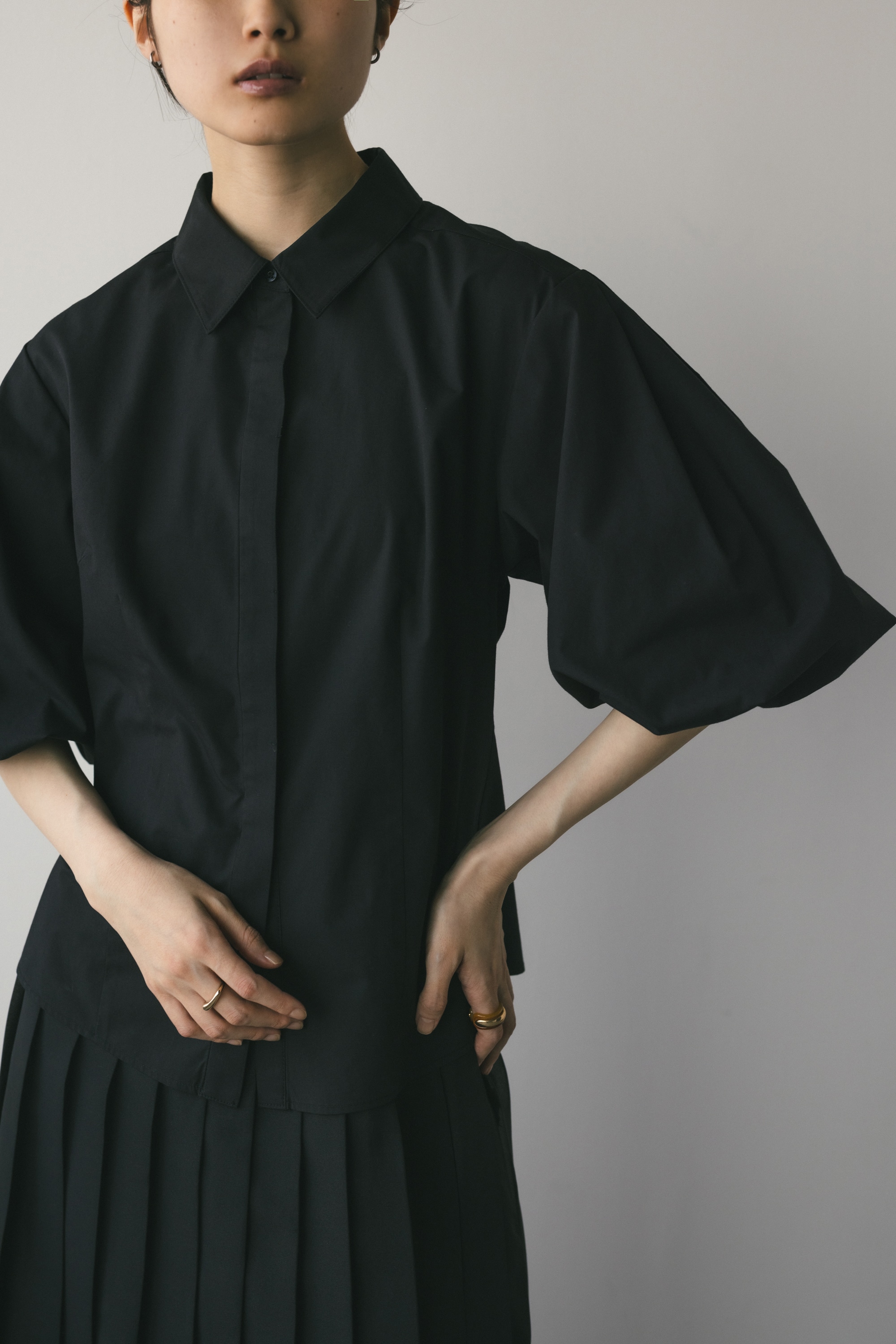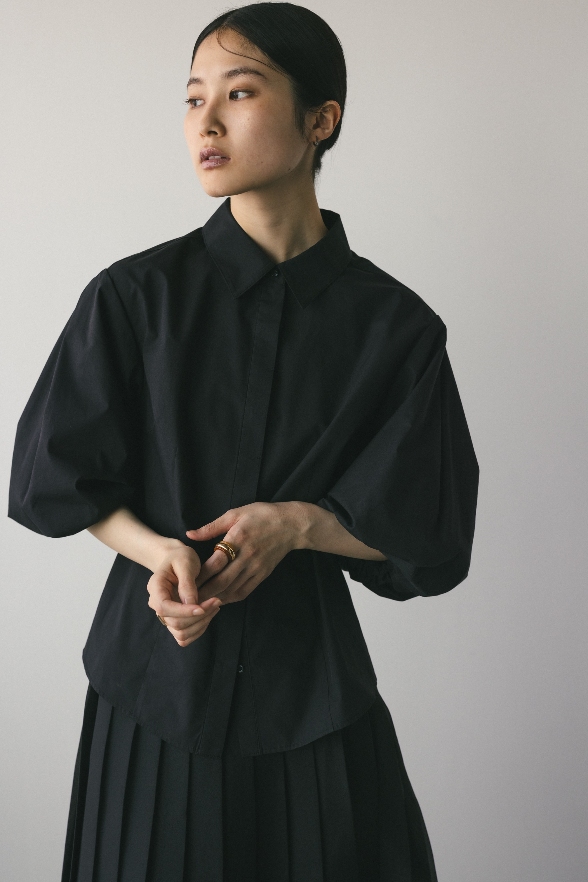 高密度で程よいハリ感とクリアな表面感が特徴のコットン素材を使用したシャツトップ。