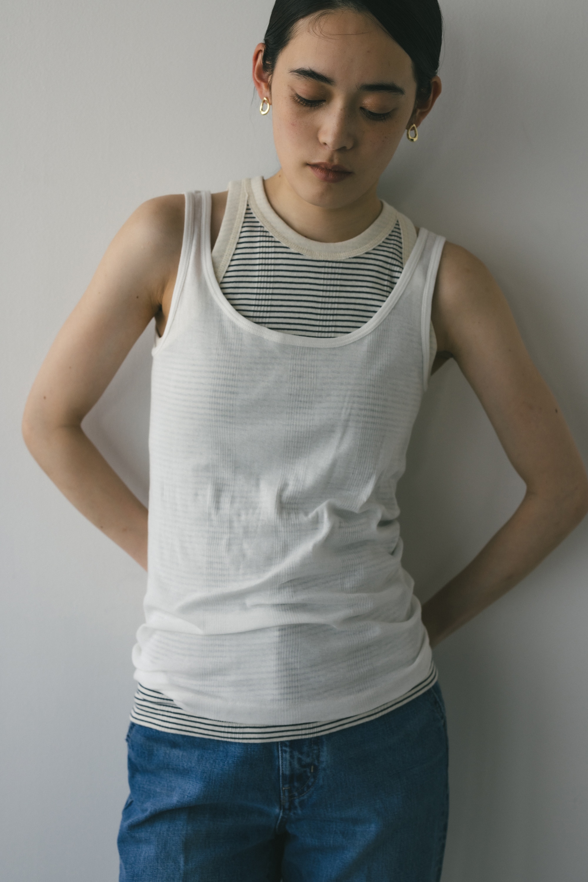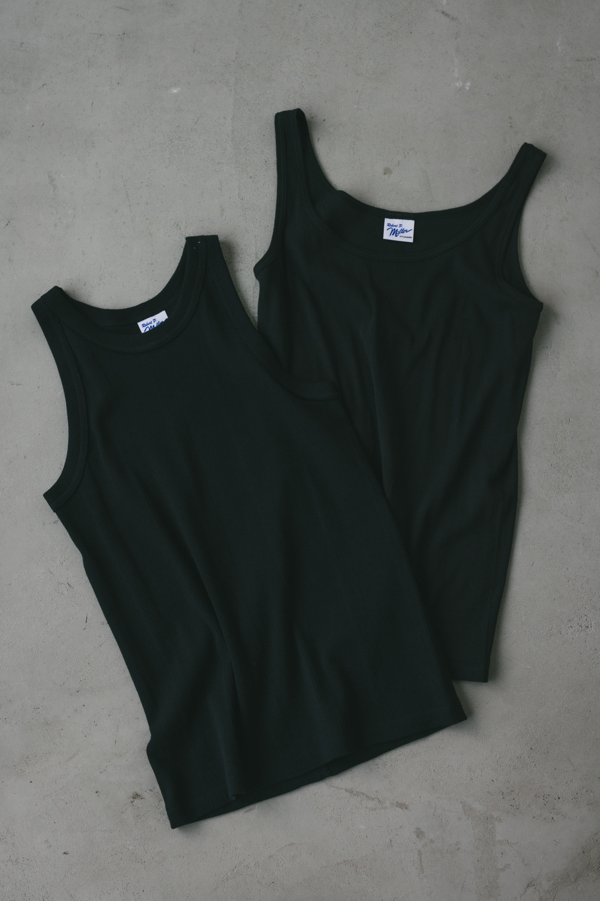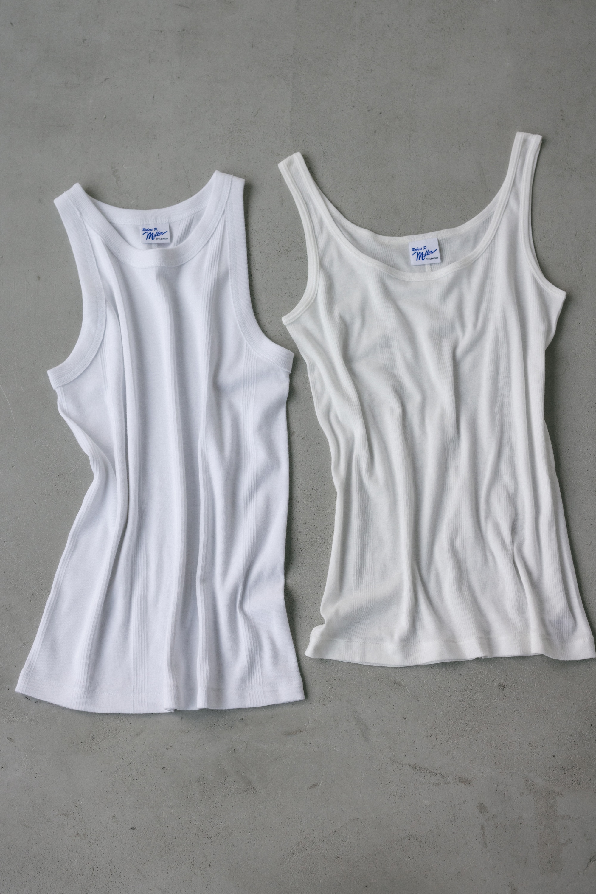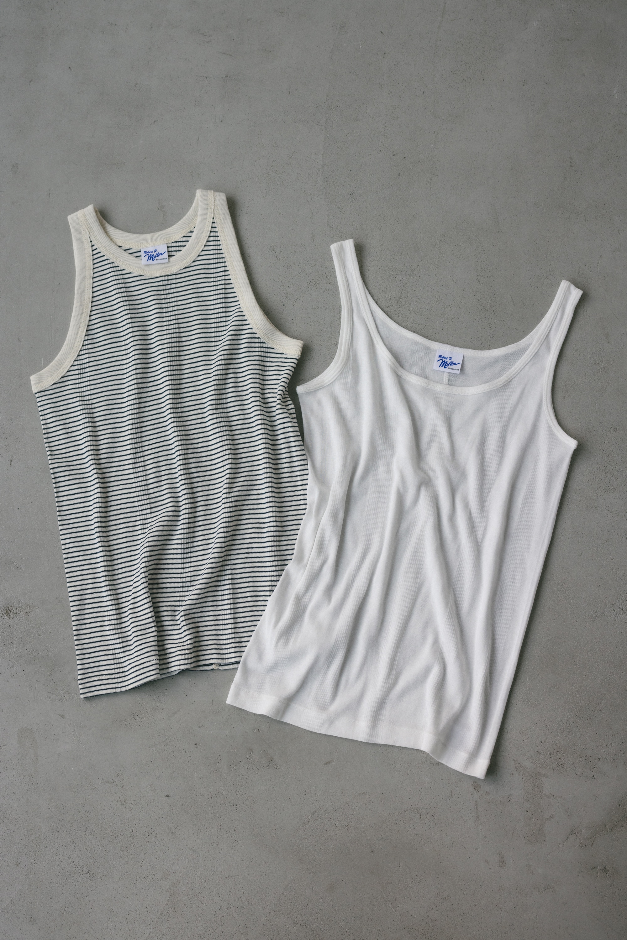 リサイズしたMiller定番のメンズパネルリブタンクとシアータンクとのレイヤードを楽しめるスタミキらしいセットアイテム。