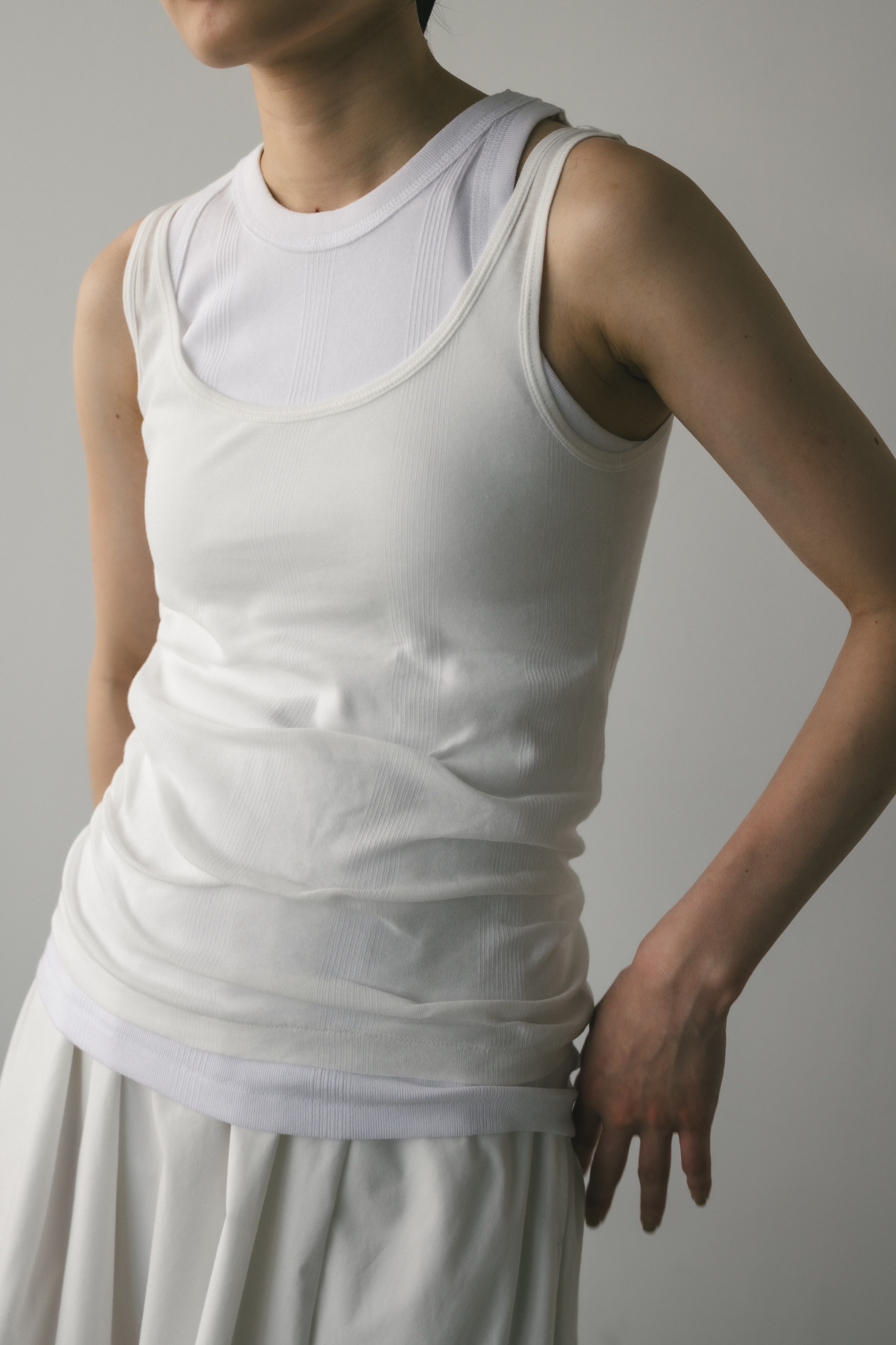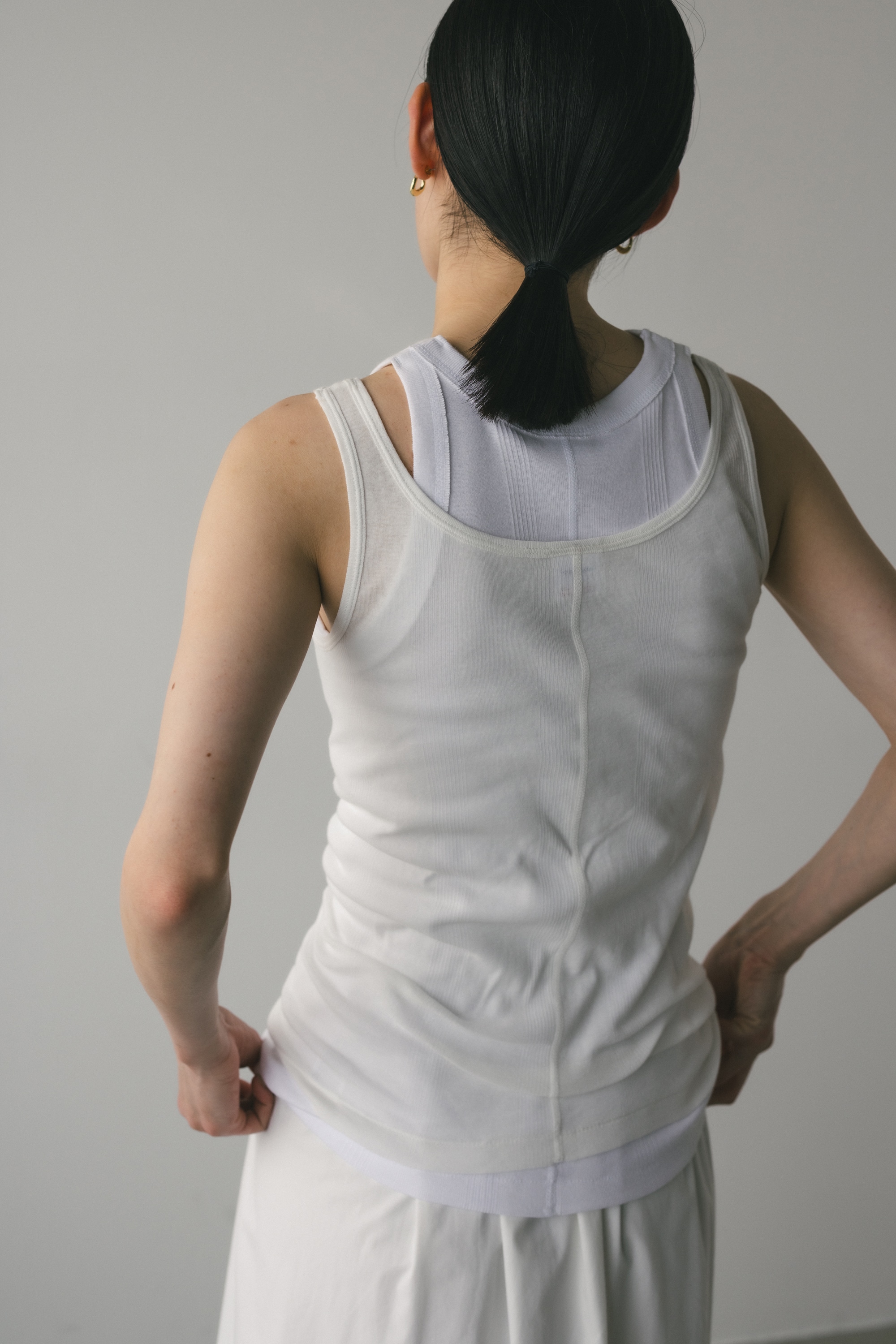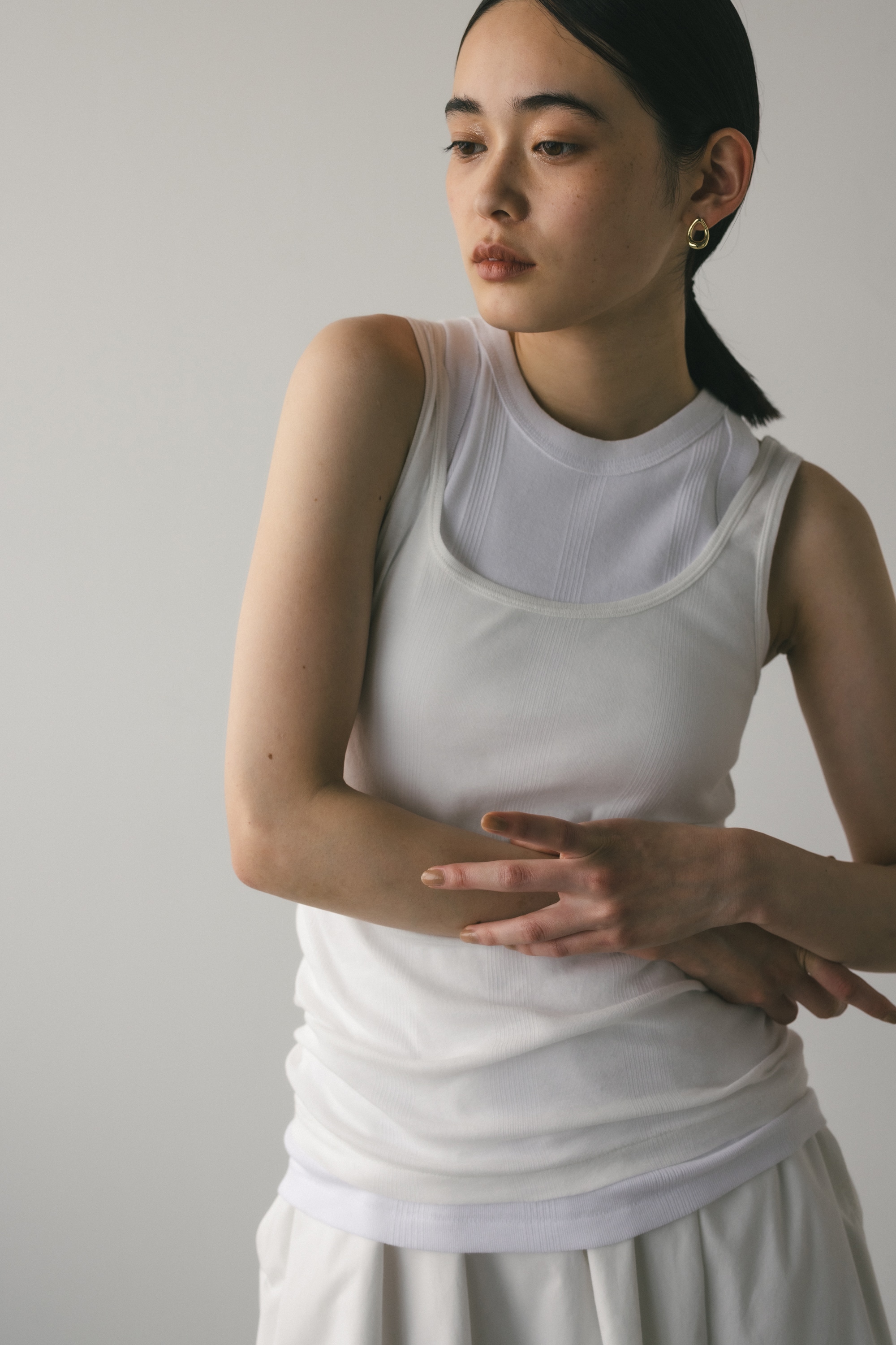 リサイズしたMiller定番のメンズパネルリブタンクとシアータンクとのレイヤードを楽しめるスタミキらしいセットアイテム。