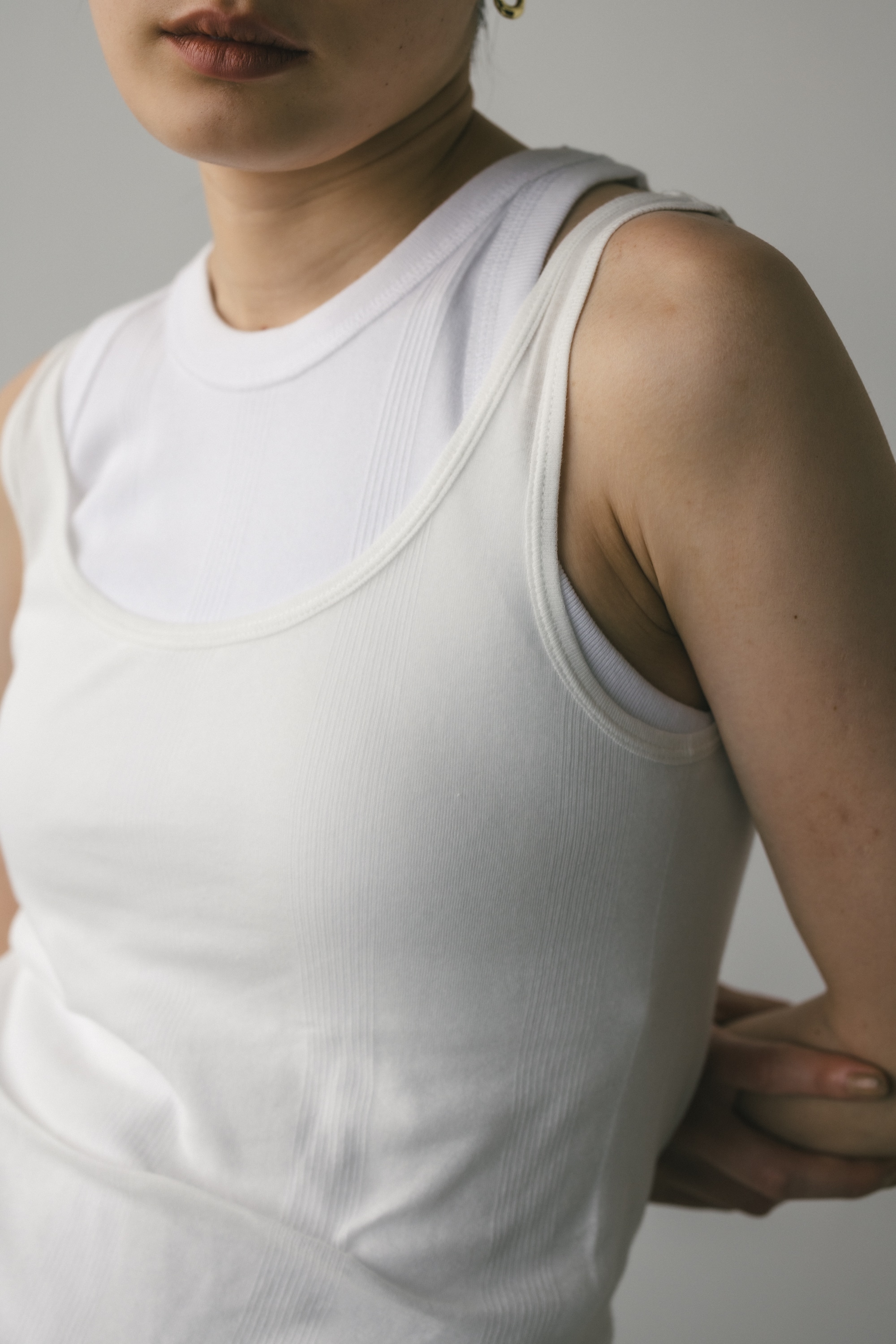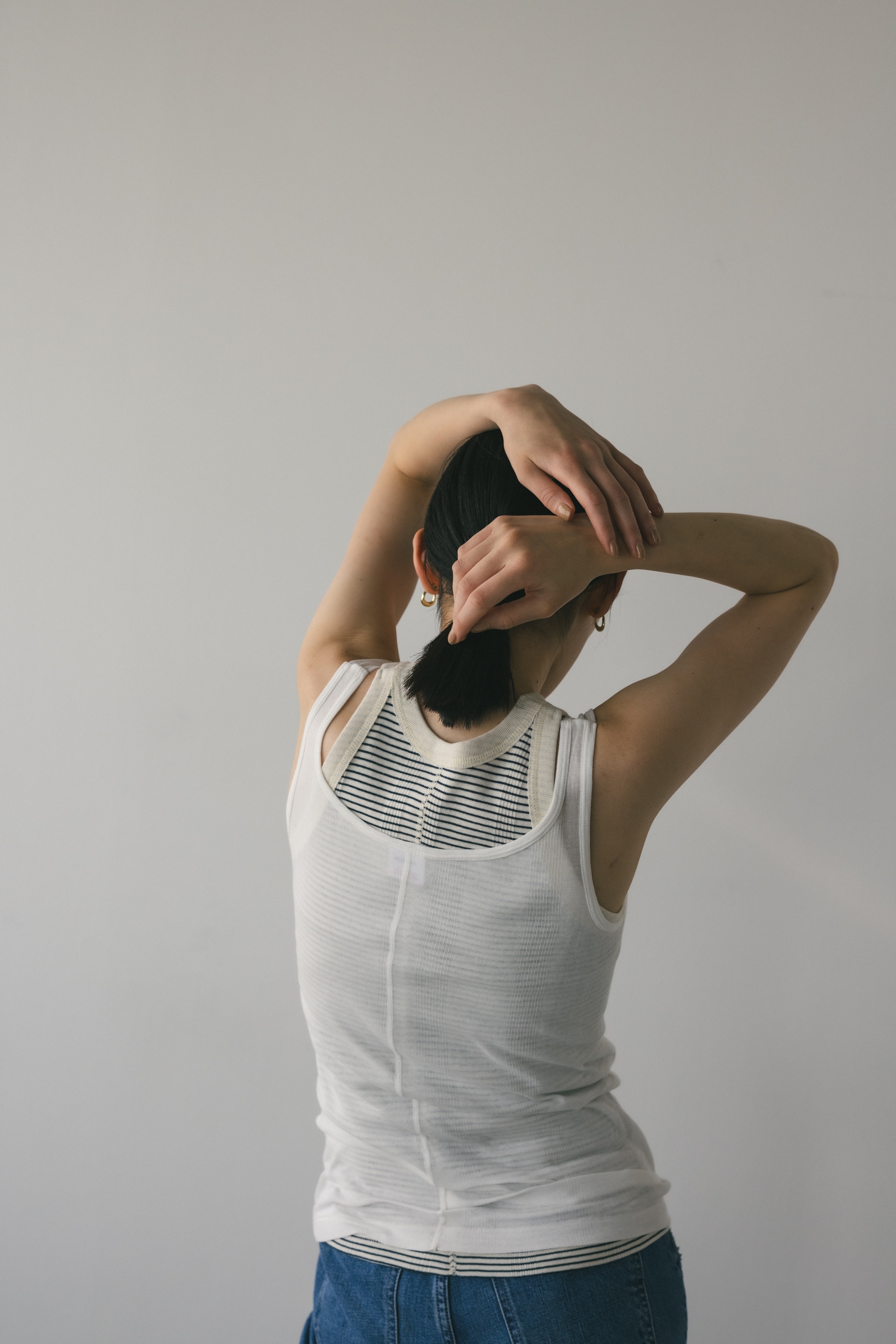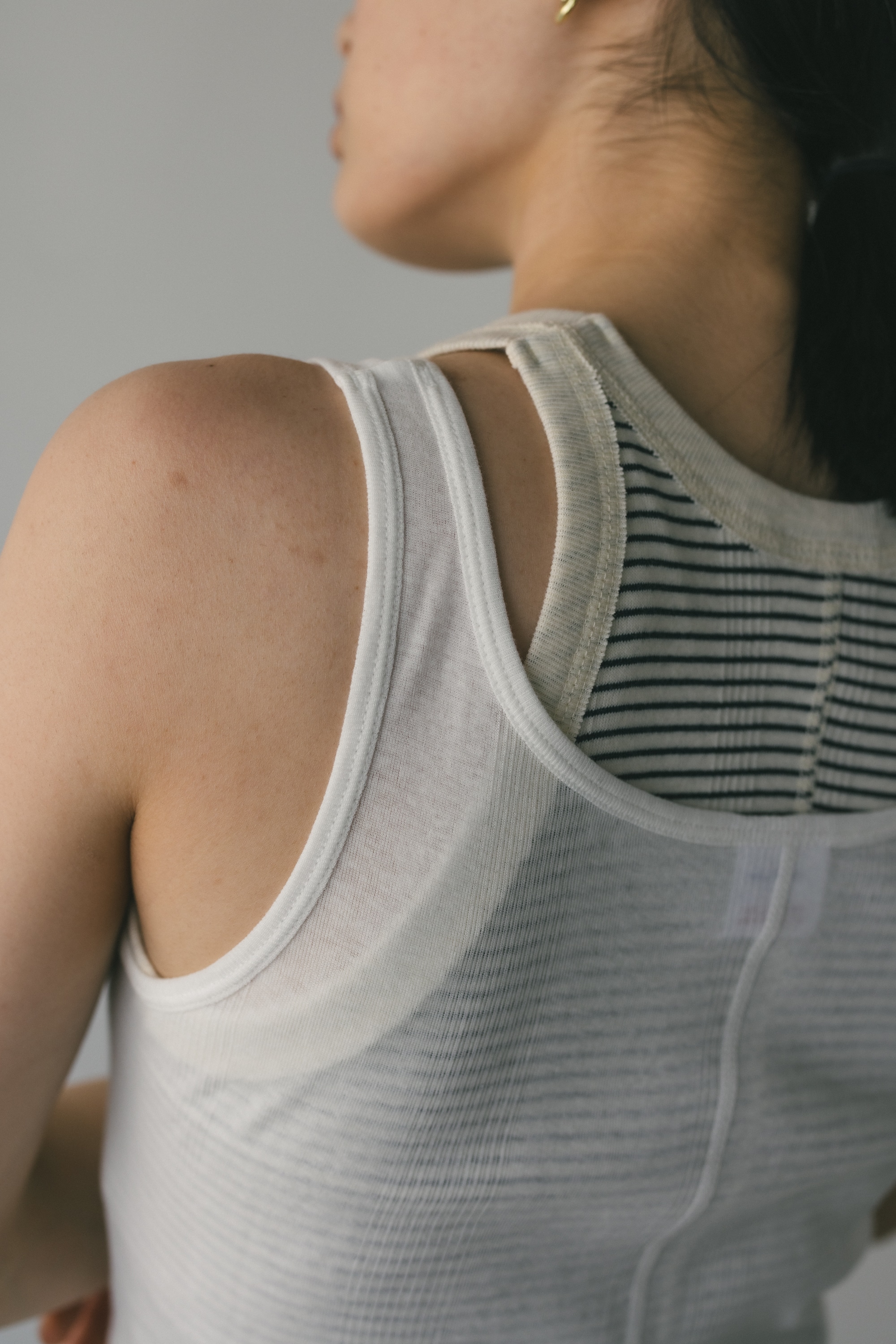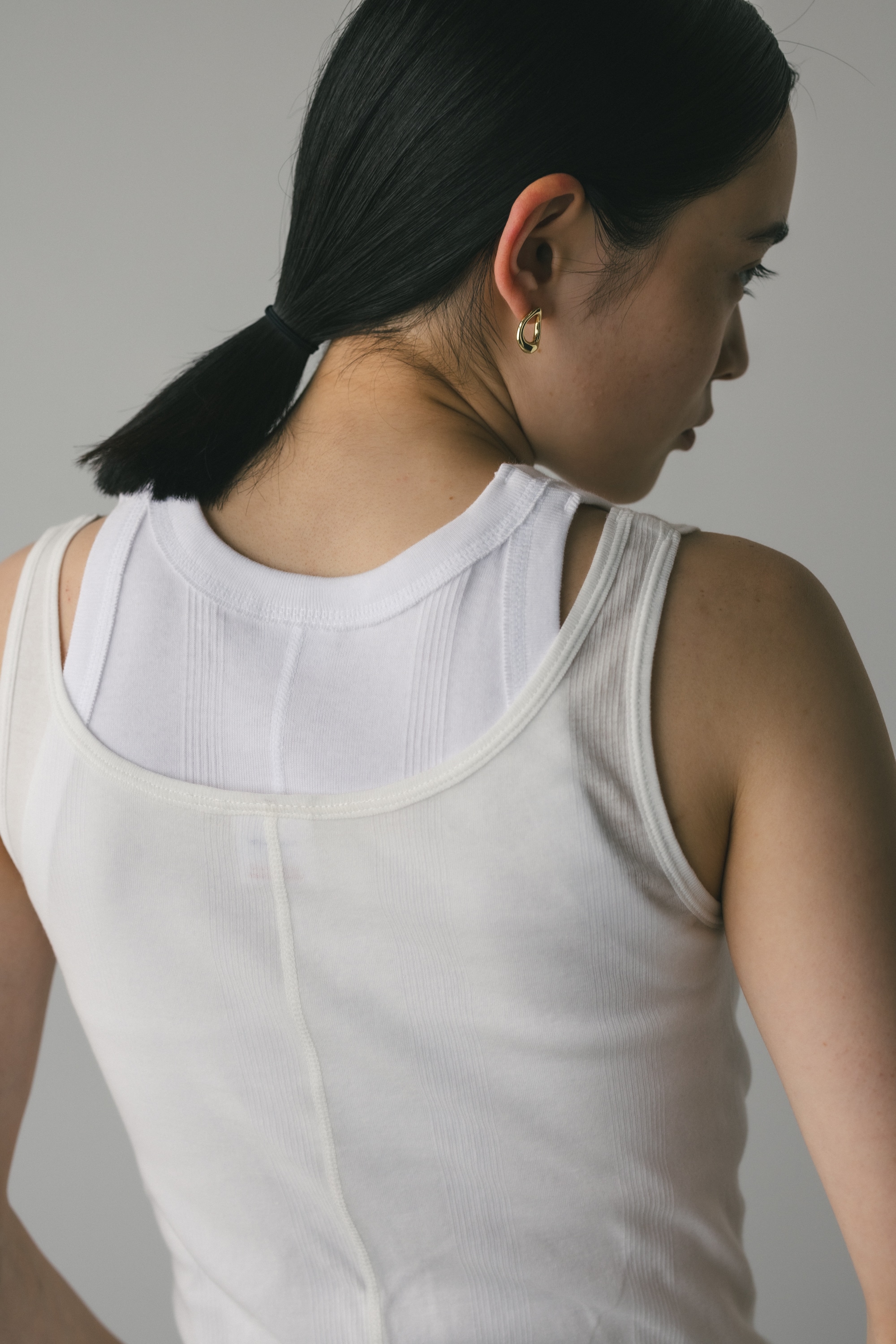 リサイズしたMiller定番のメンズパネルリブタンクとシアータンクとのレイヤードを楽しめるスタミキらしいセットアイテム。