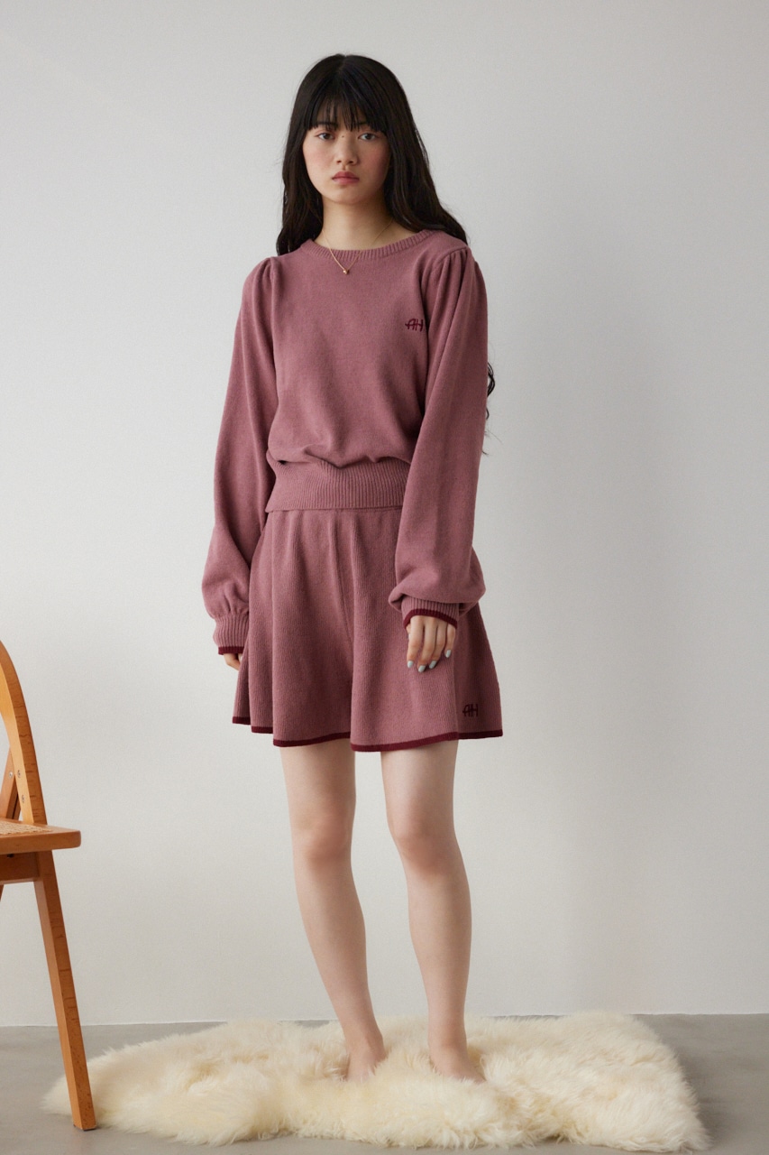 ・ボトムのショートパンツがスカートのようなフレアシルエットなので、トップスはあえてコンパクトですっきりとしたシルエットにしています。