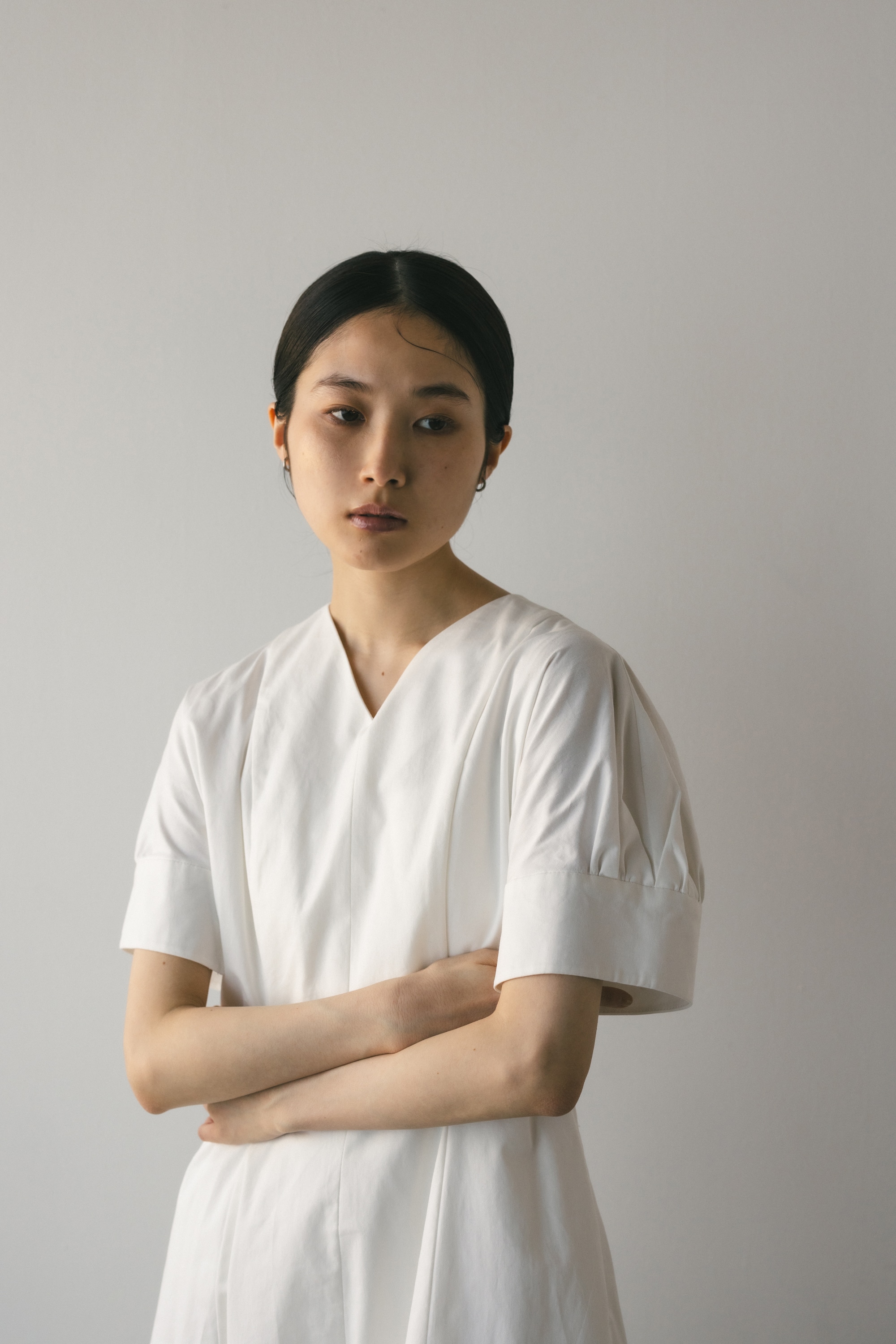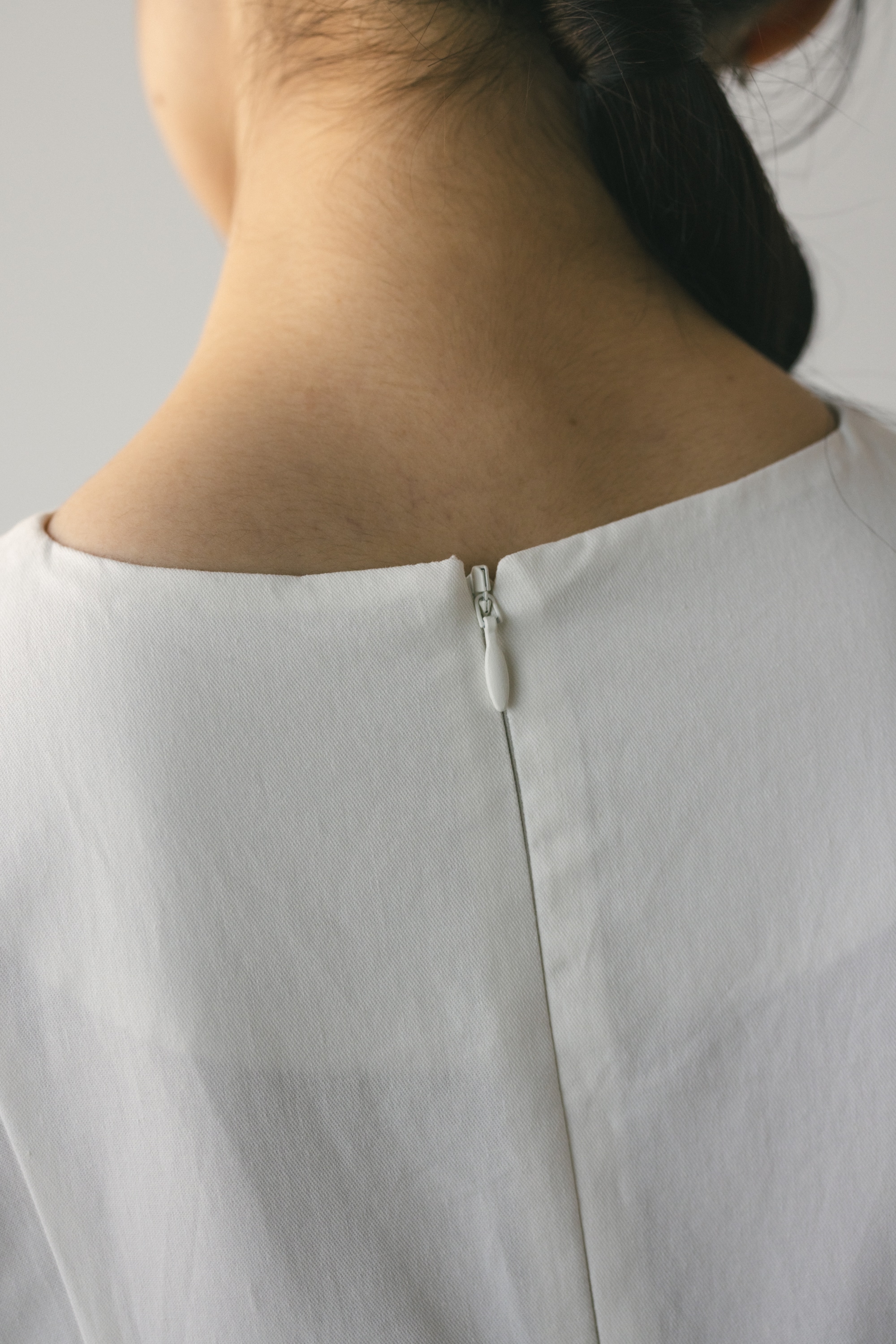 ドライなハリ感のある素材を使用しているのでエレガントになりすぎず着用して頂きやすい一枚です。