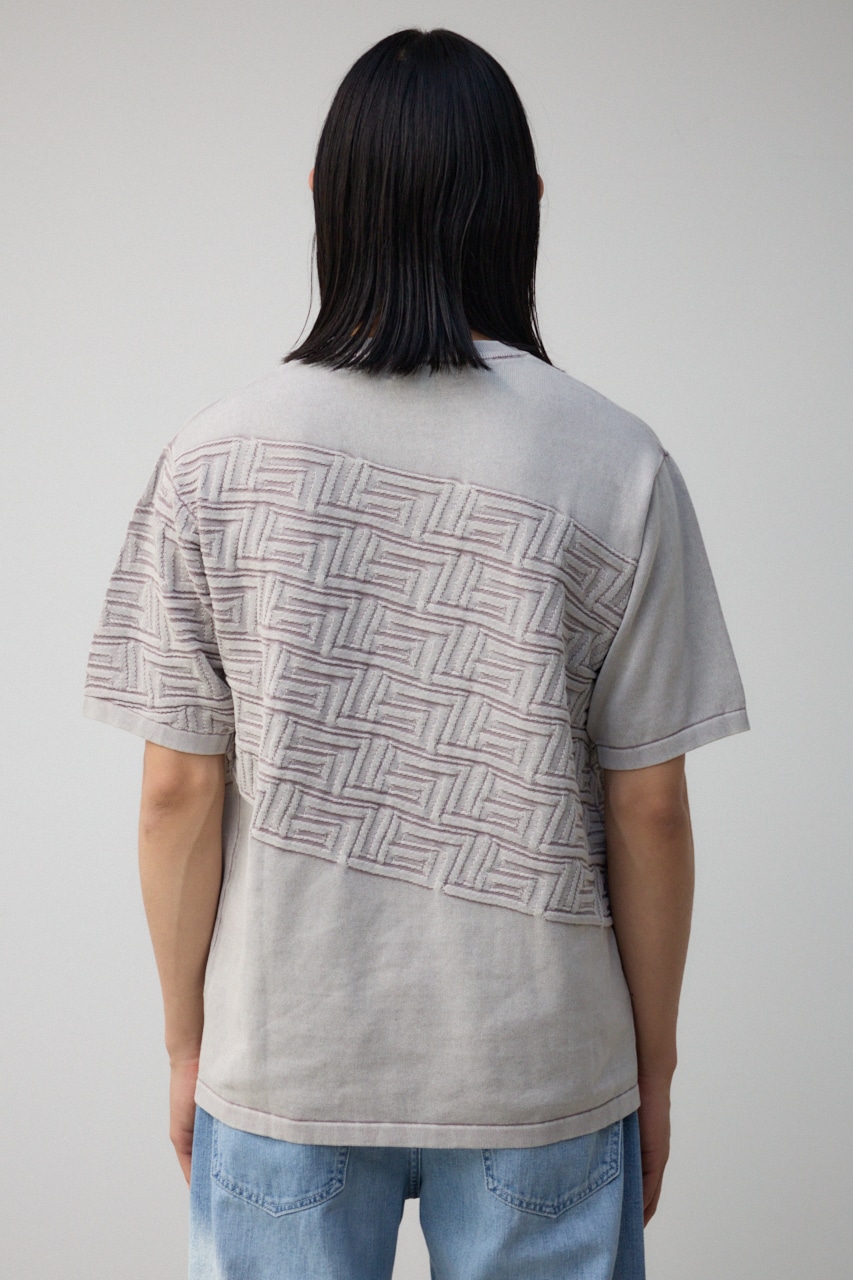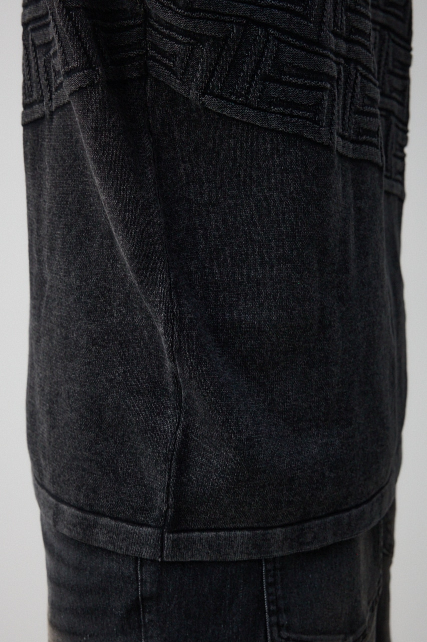 ・身頃上部のジャガード柄、ストーンウォッシュによる色落ち加工で、雰囲気のある一着に。