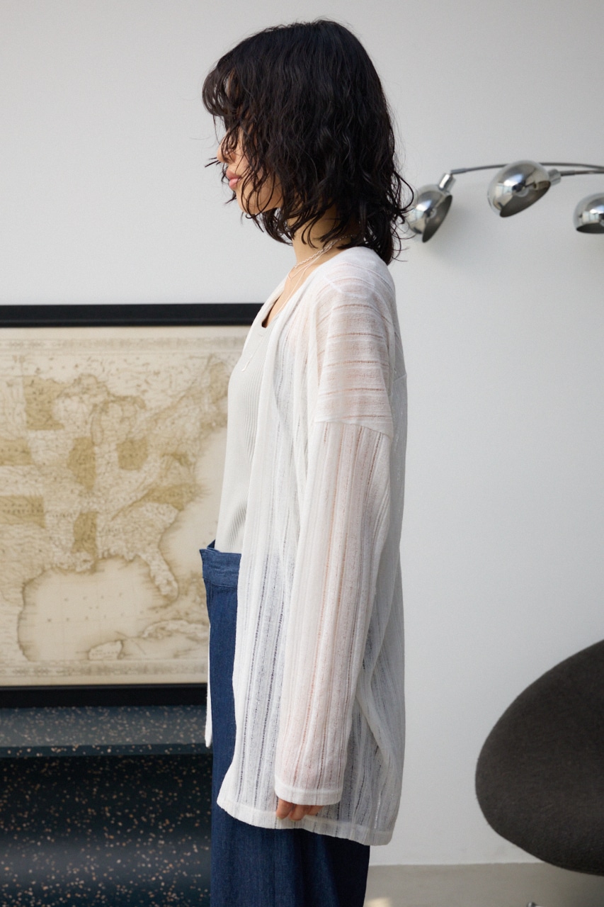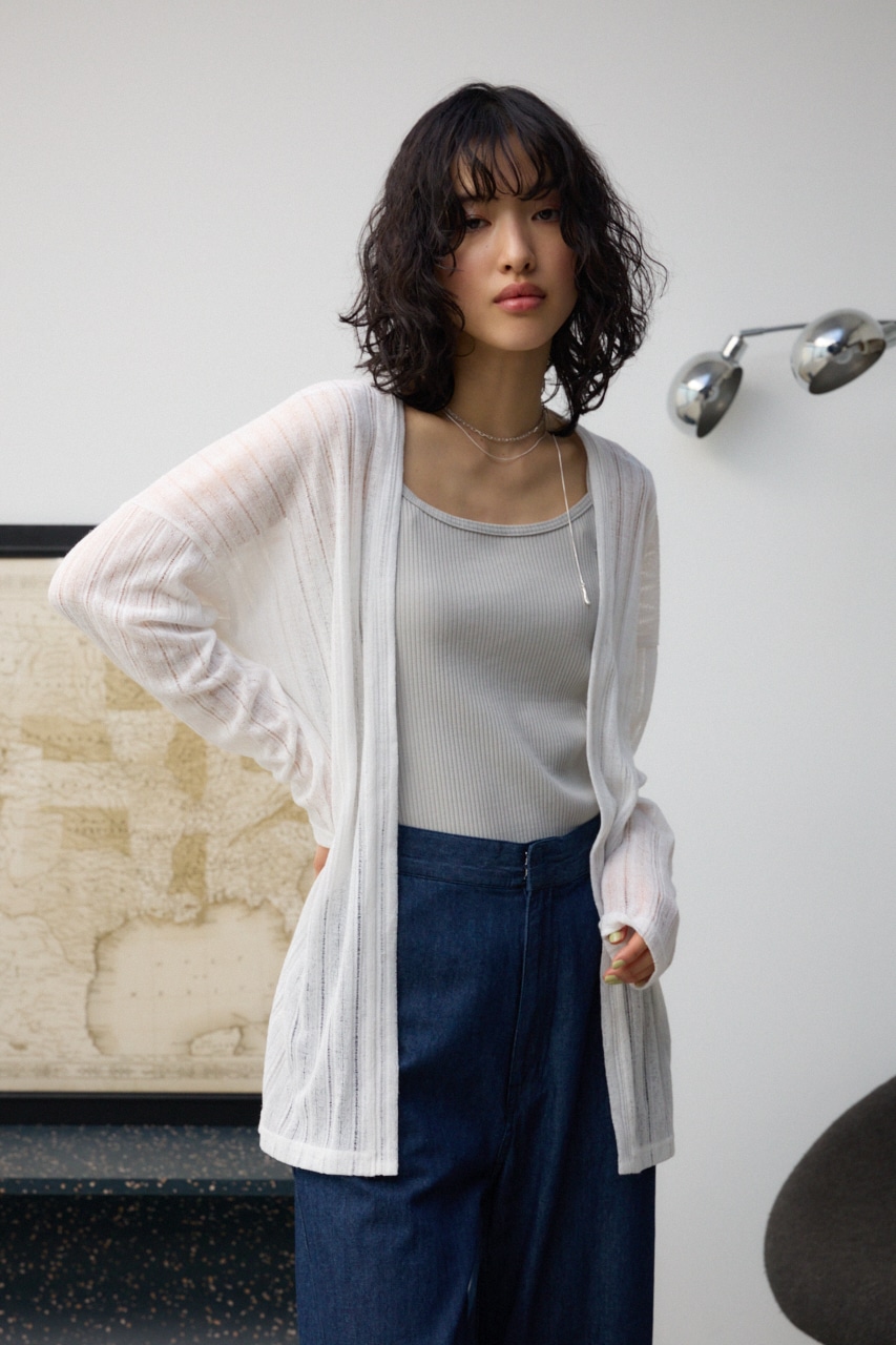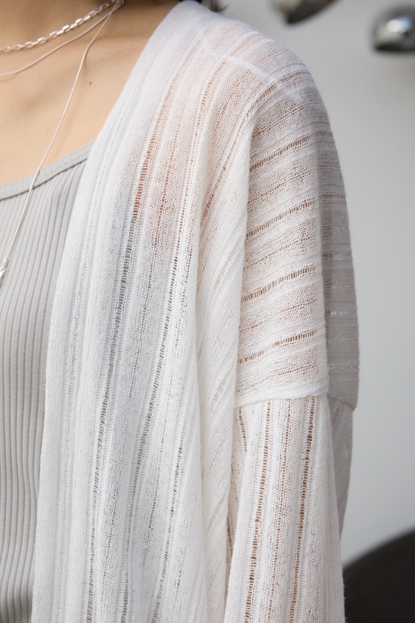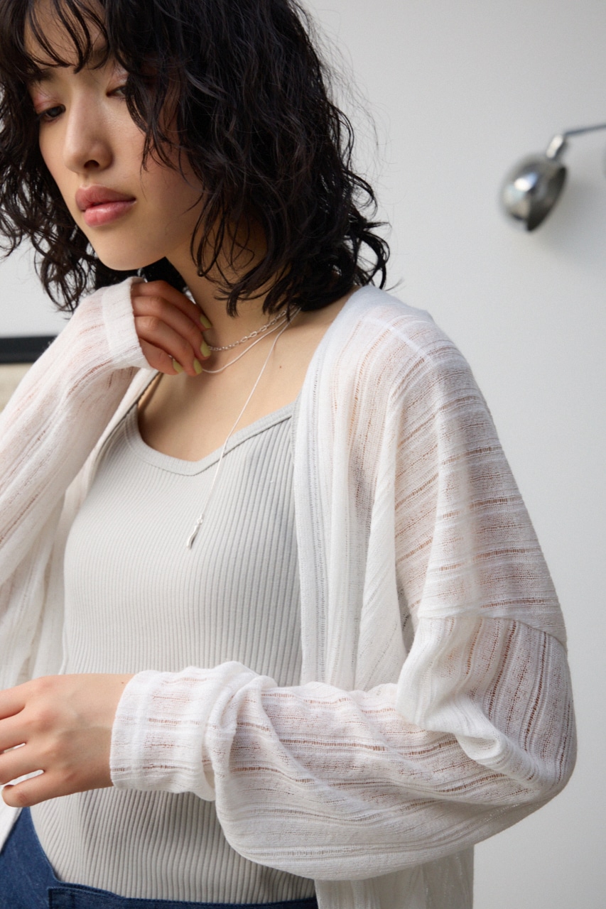 ■商品(デザイン)ポイント: この時期に重宝する、涼しげな印象のトッパーカーディガン。