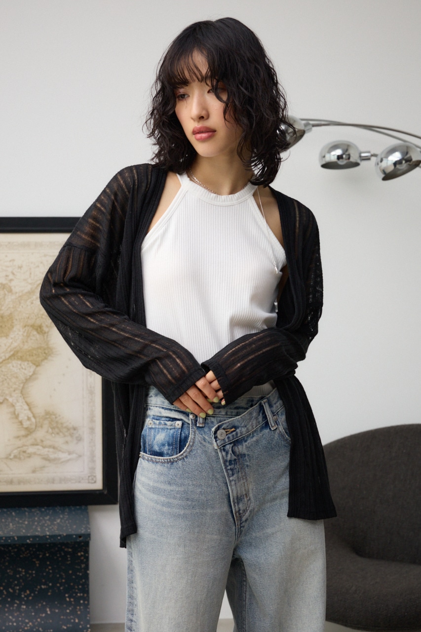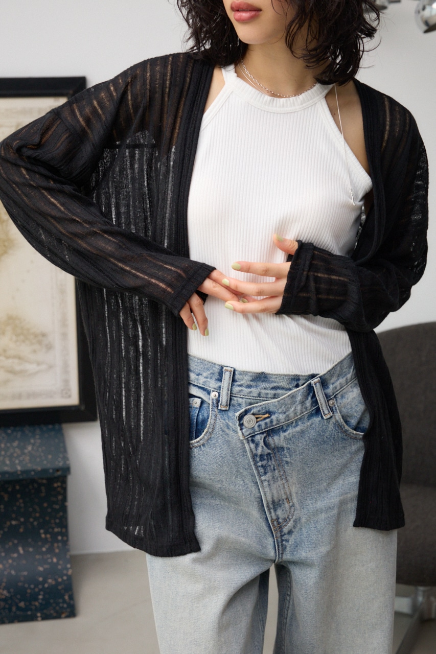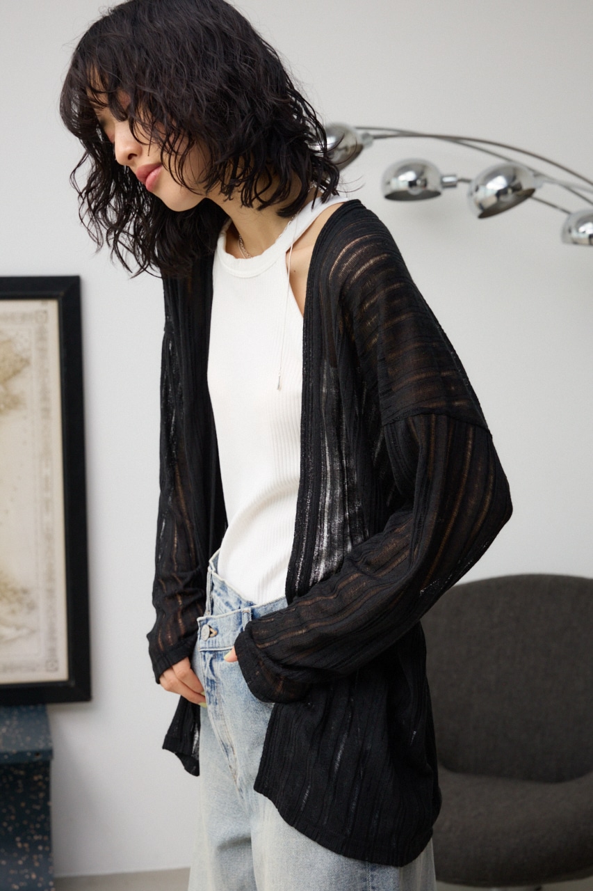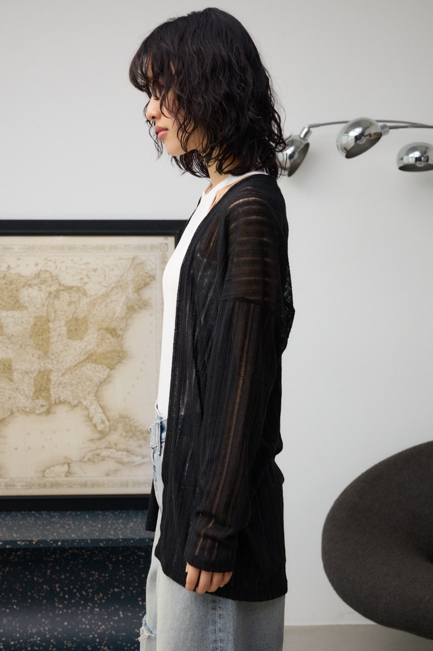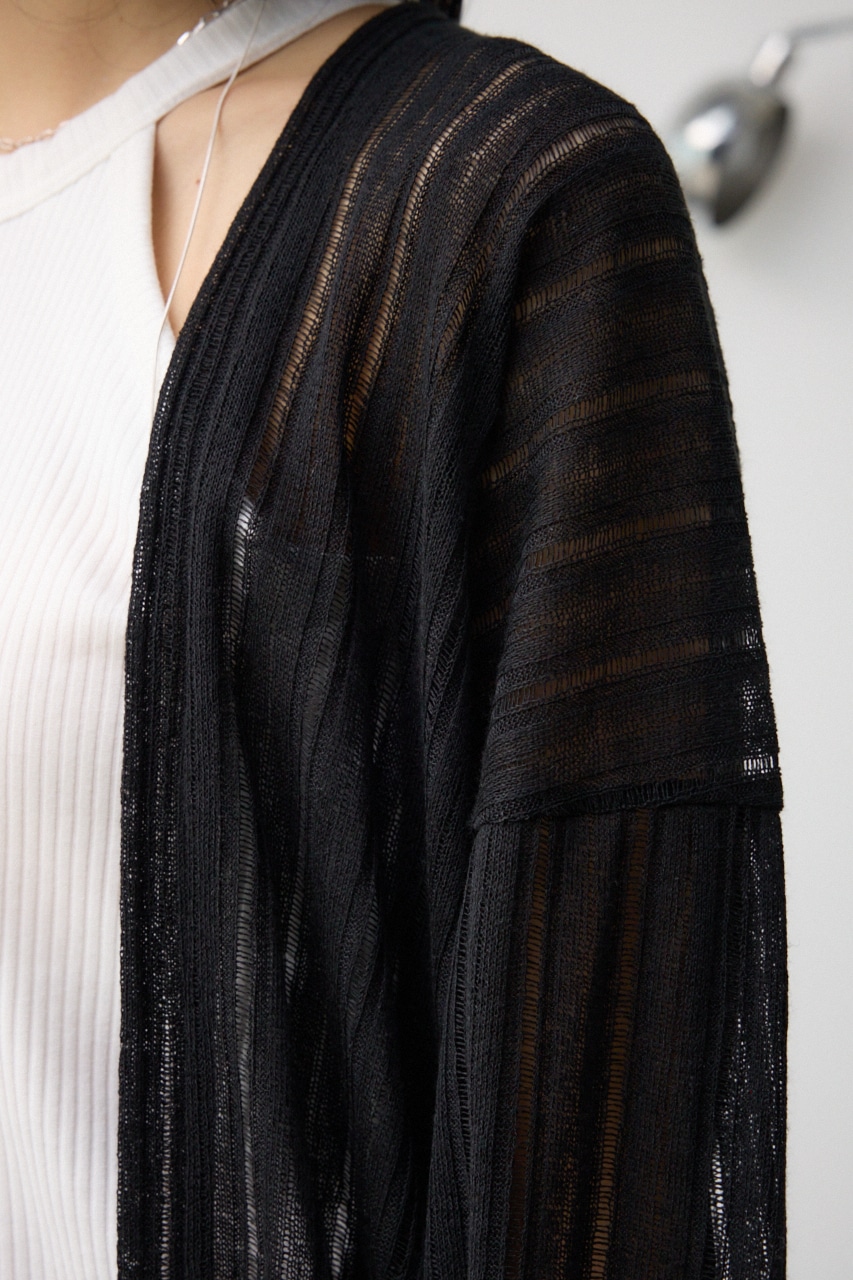 ■商品(デザイン)ポイント: この時期に重宝する、涼しげな印象のトッパーカーディガン。