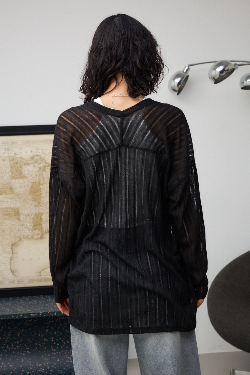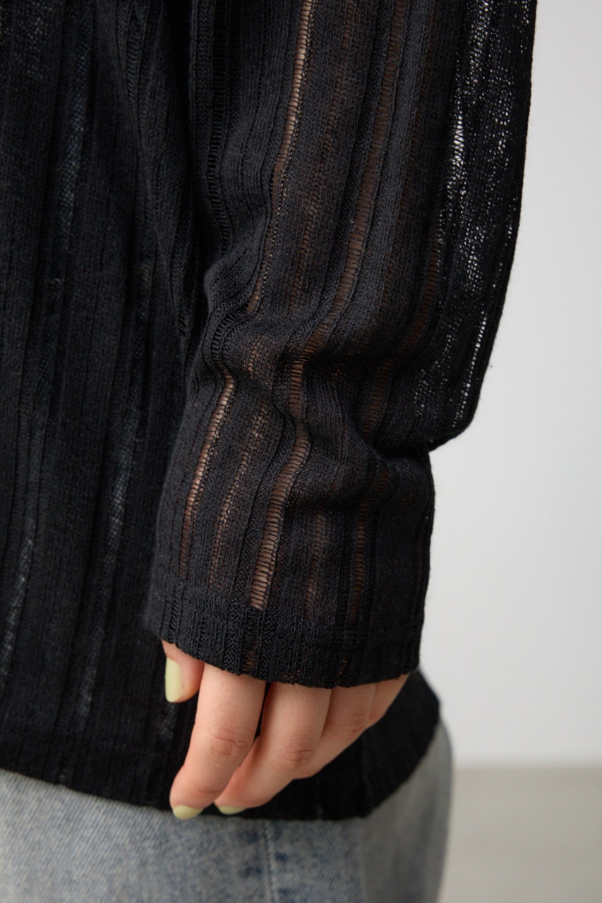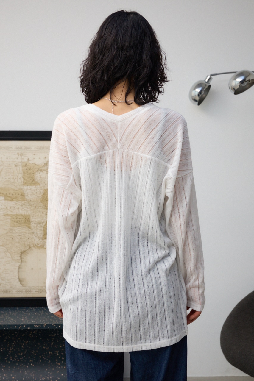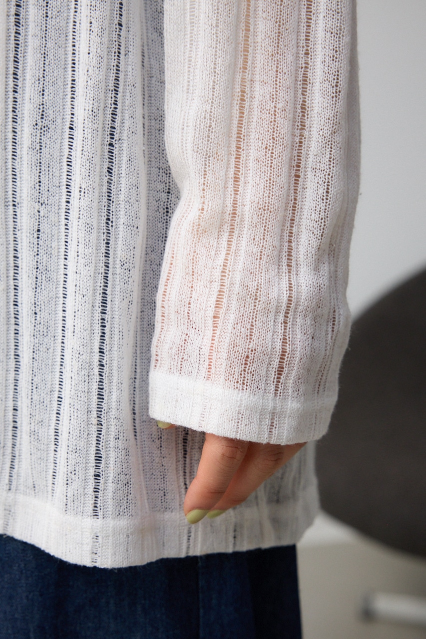■商品(デザイン)ポイント: この時期に重宝する、涼しげな印象のトッパーカーディガン。