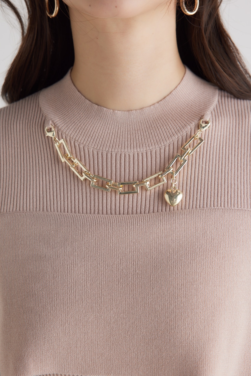 存在感を放つ太めのチェーンにハートモチーフのチャームが今時な雰囲気にアップデートしてくれます。