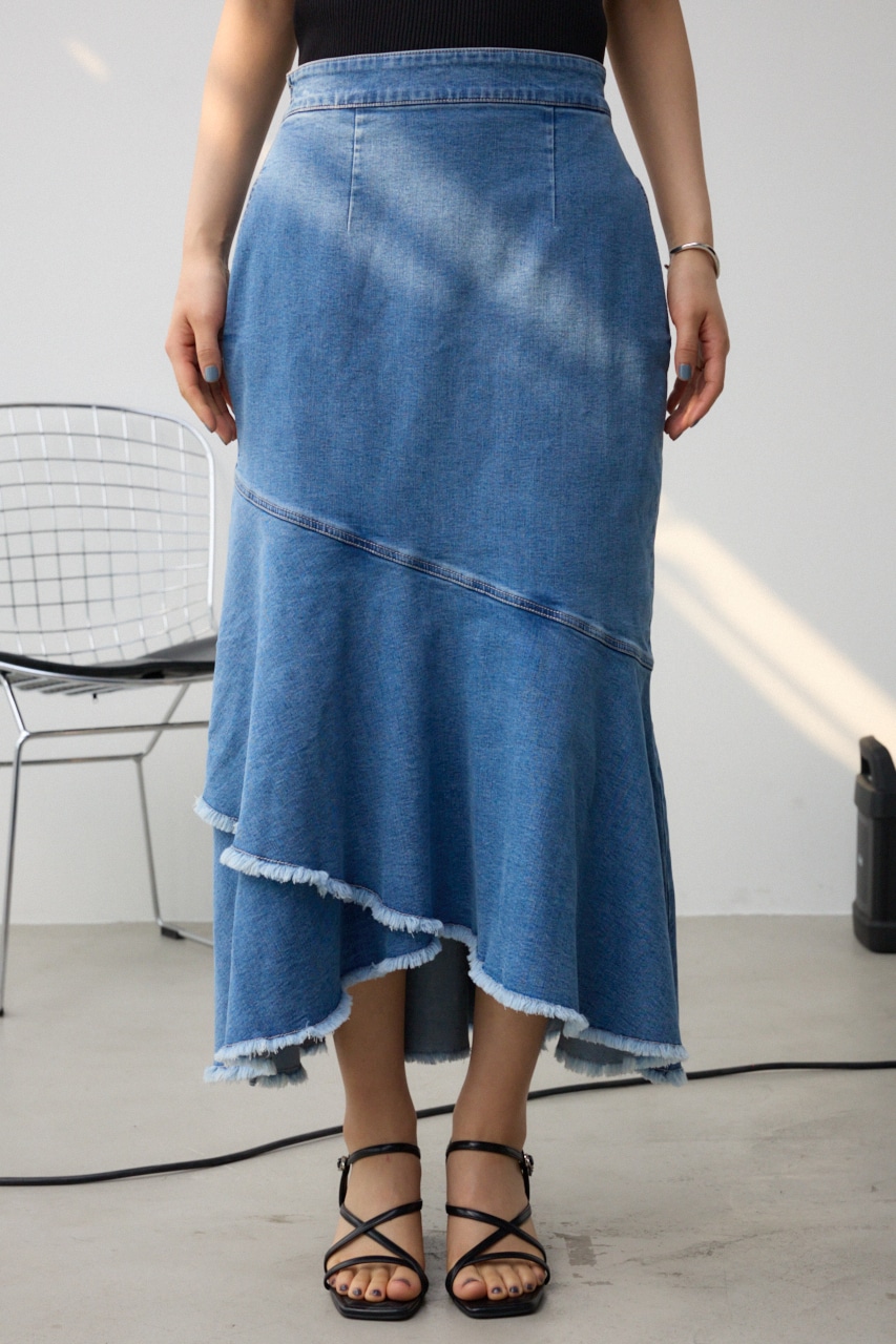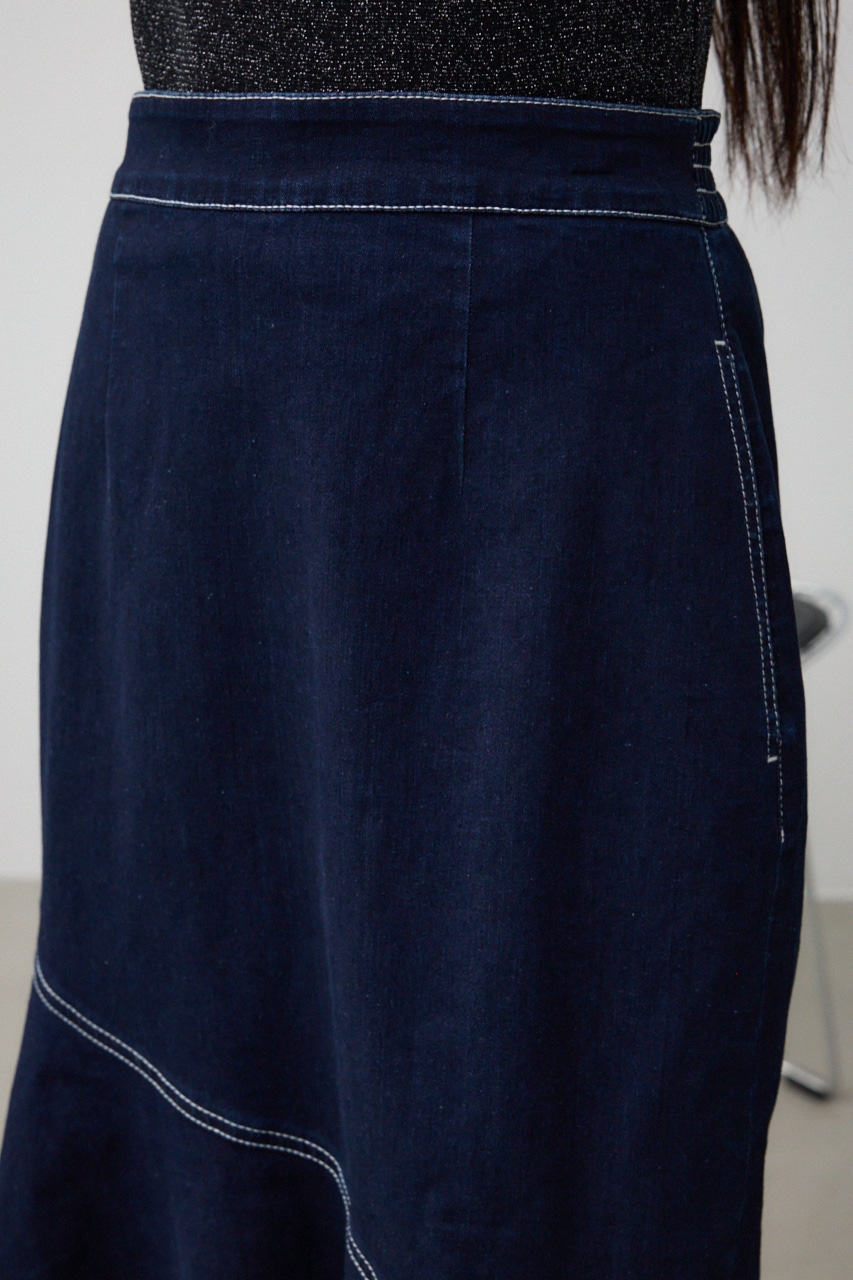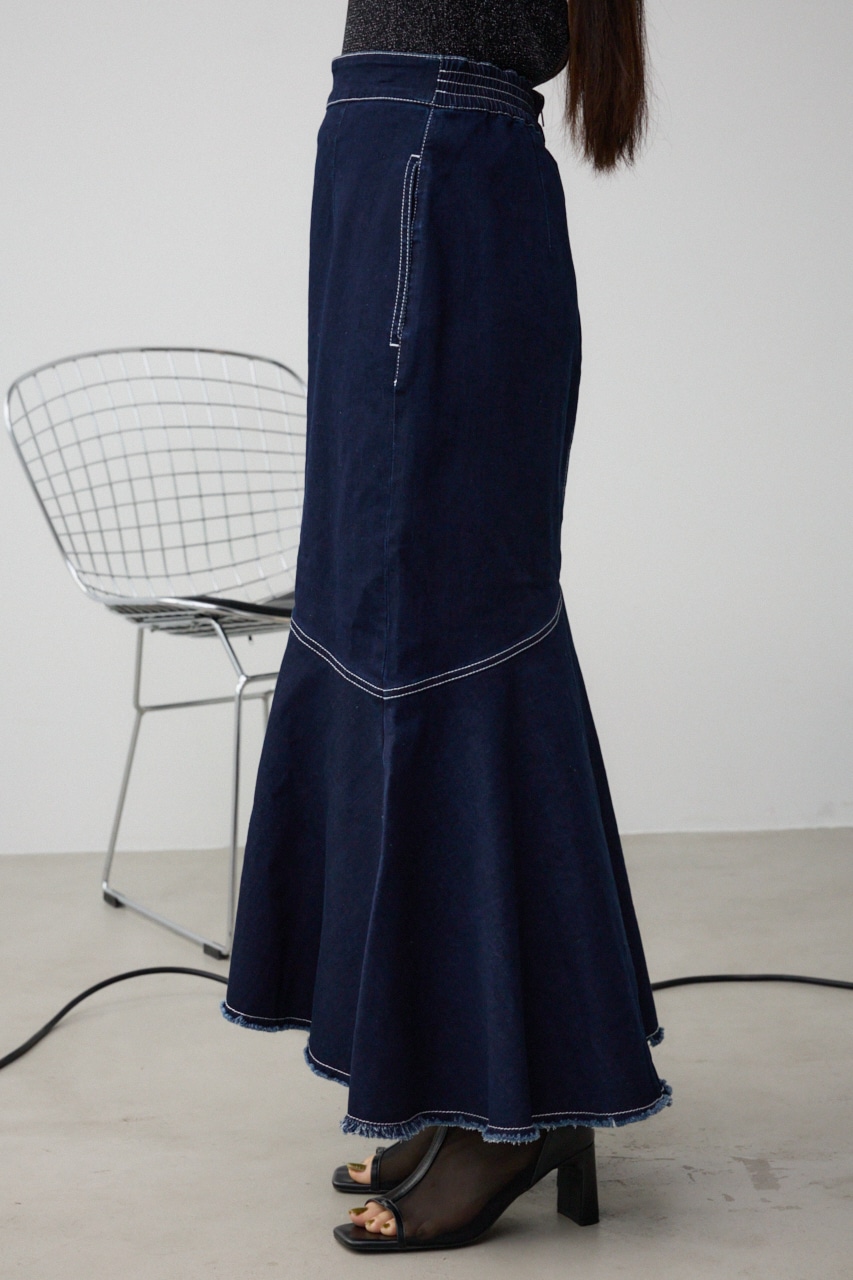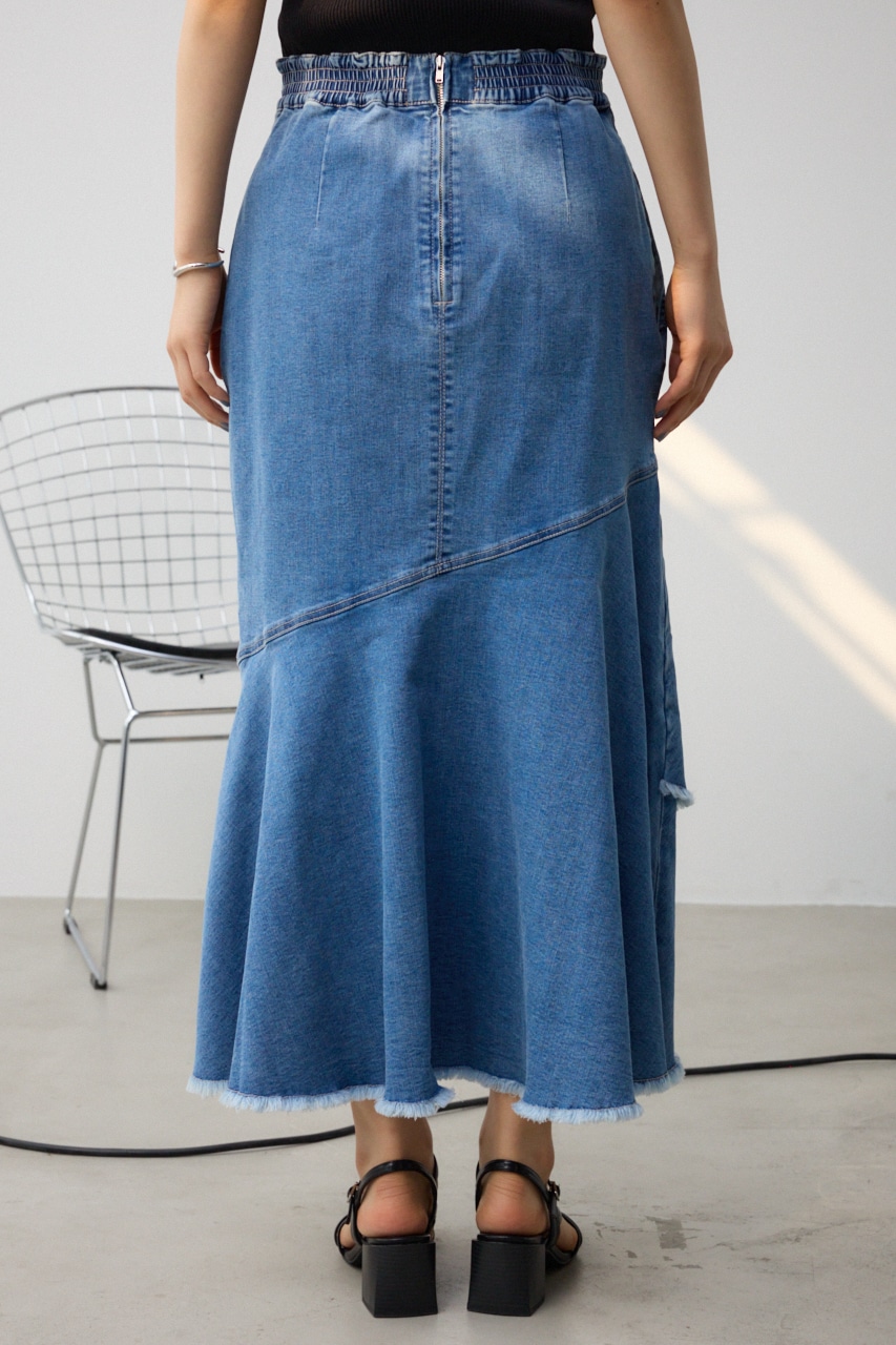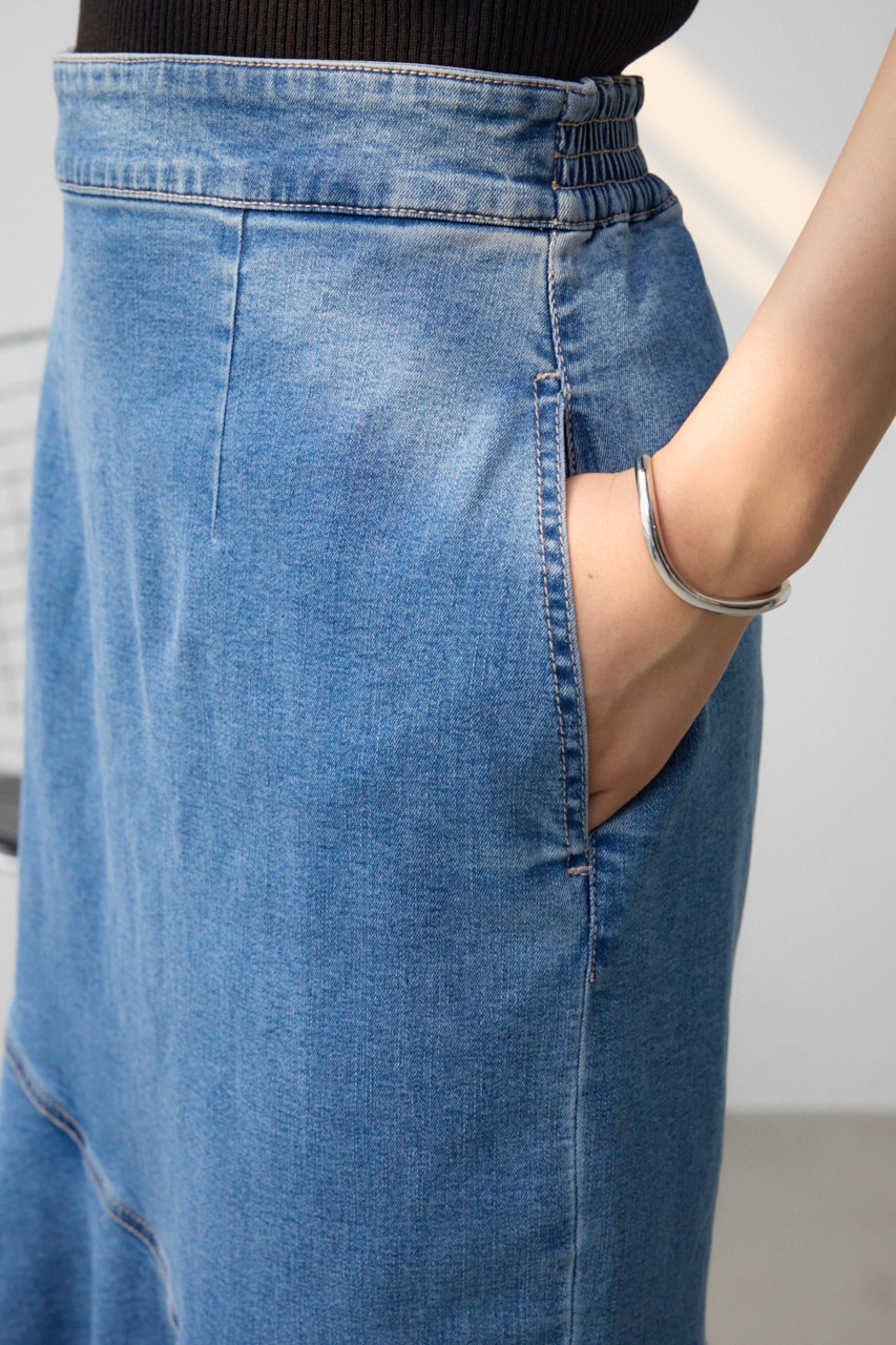 ■商品(デザイン)ポイント: カジュアルなデニム素材と女っぽさのあるマーメイドシルエットがマッチしたレディライクなスカートです。