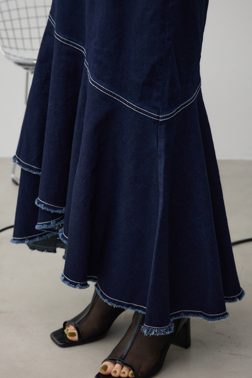 カシュクールフレアマーメードデニムスカート
