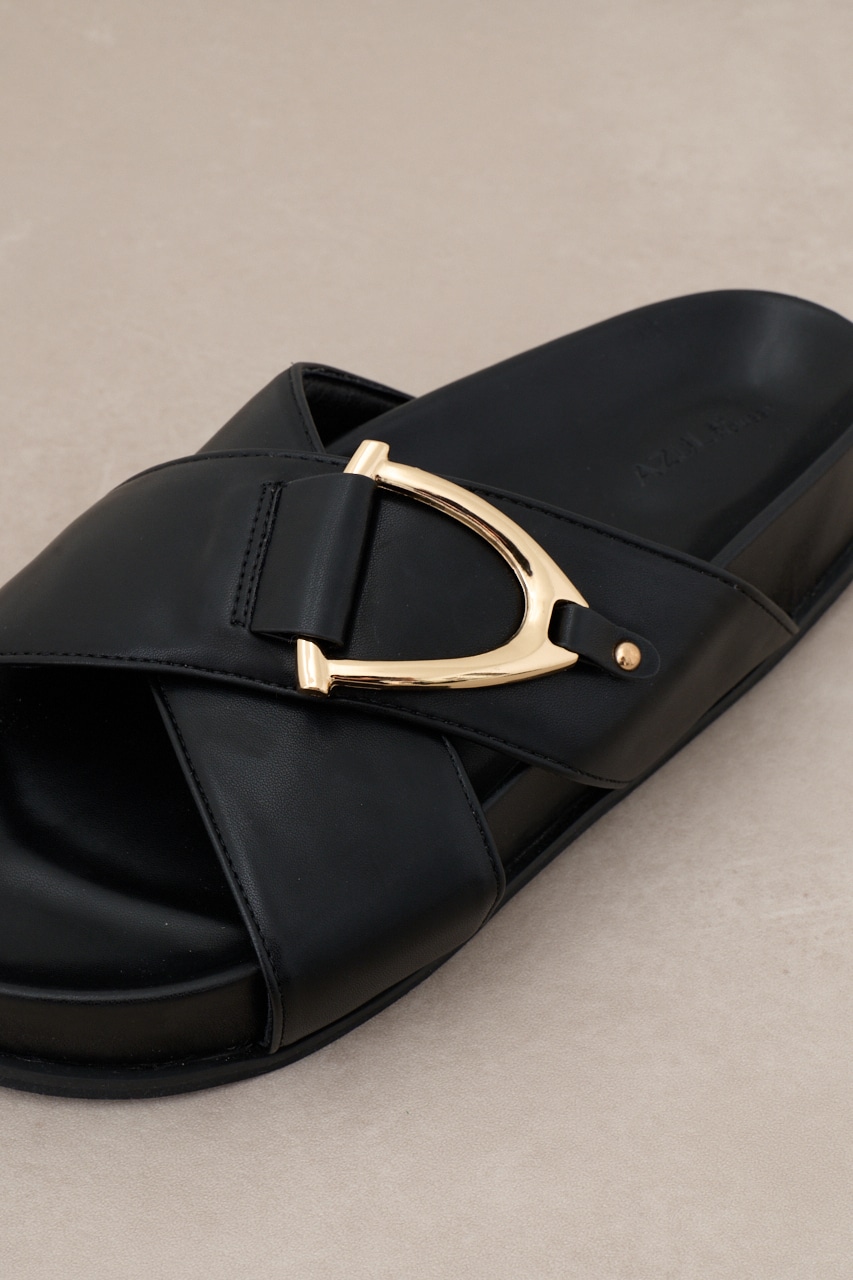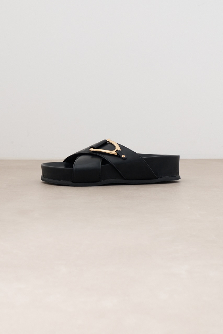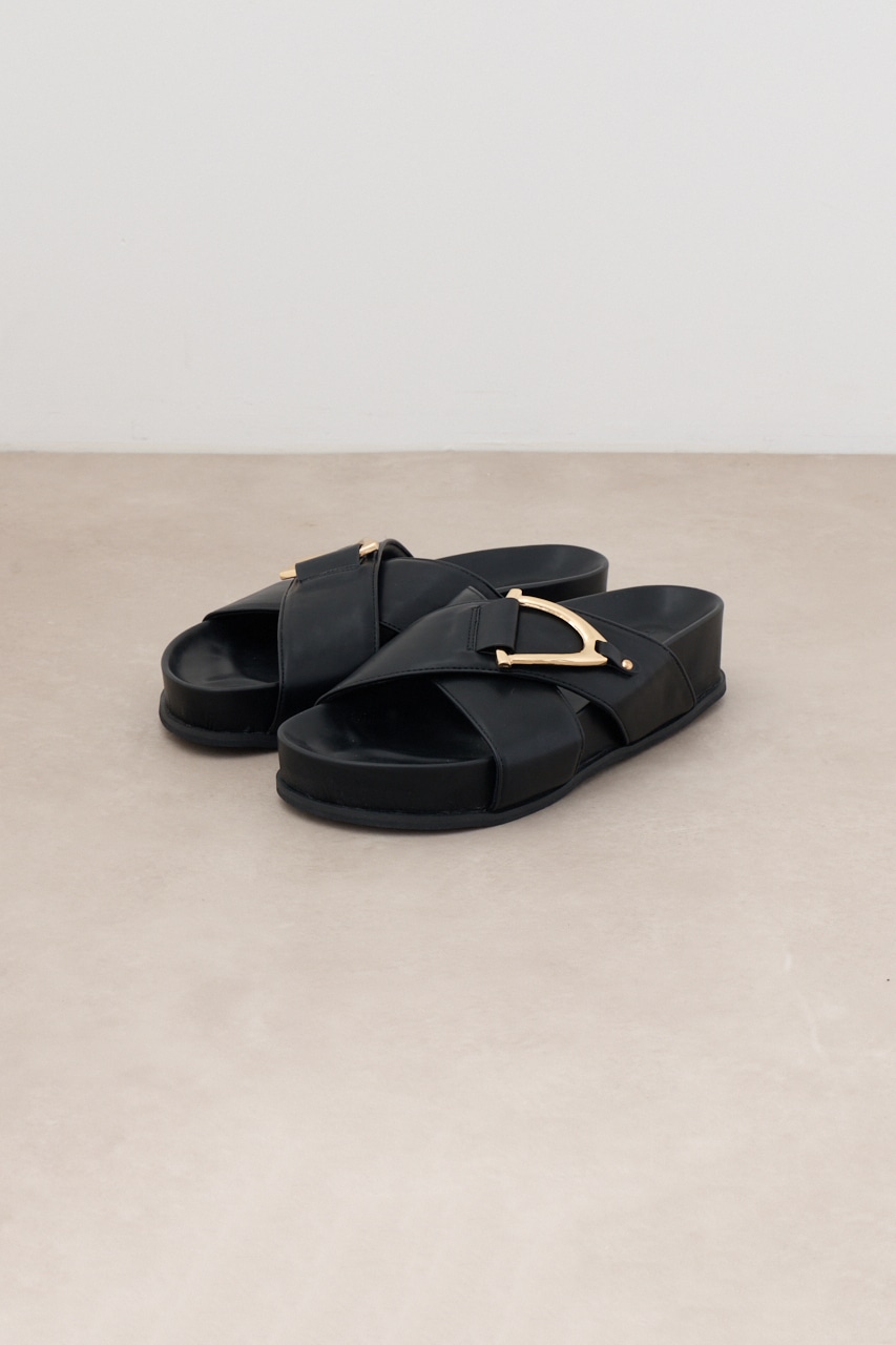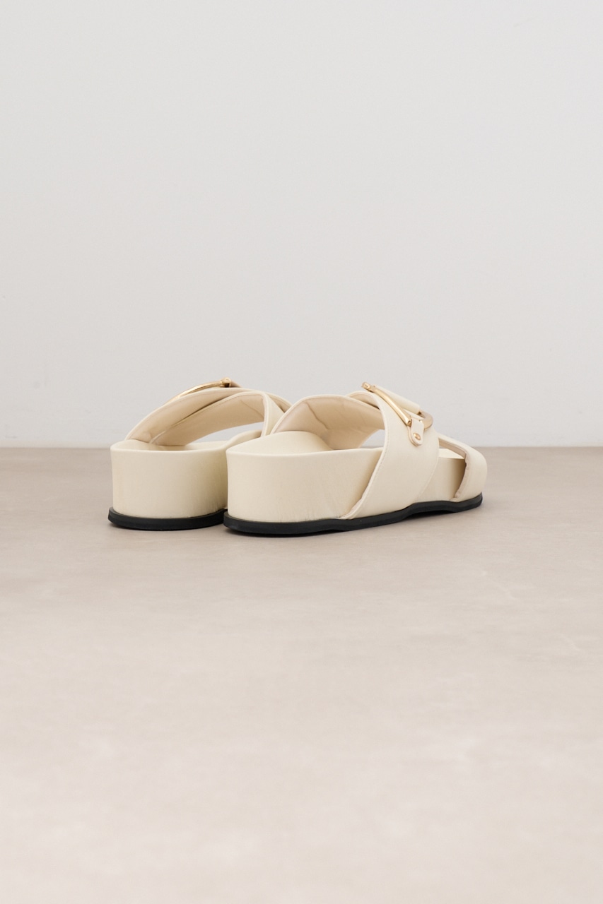 ■商品(デザイン)ポイント :大きめのメタルバックルがポイントのボリュームサンダルです。