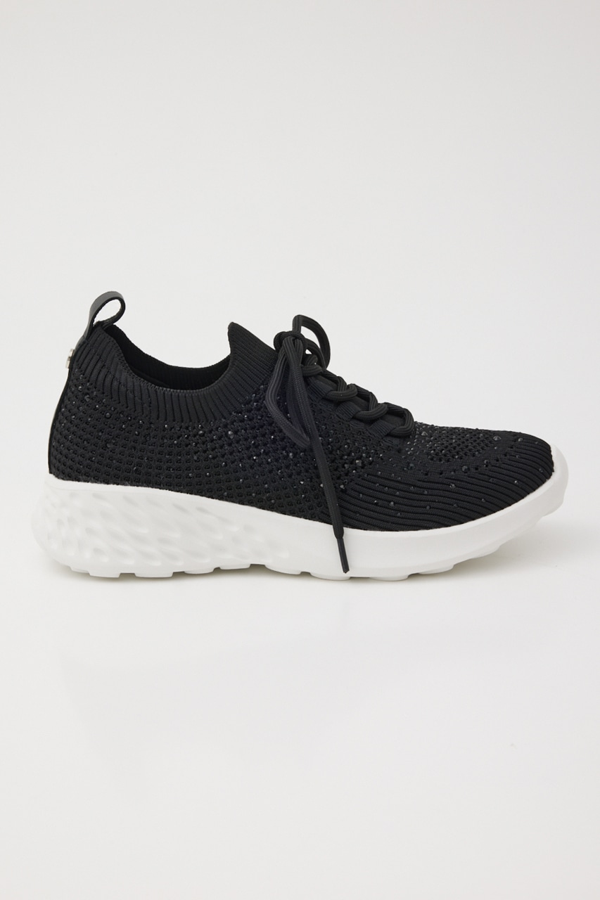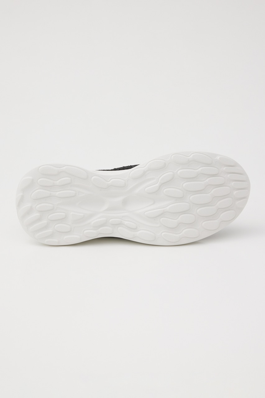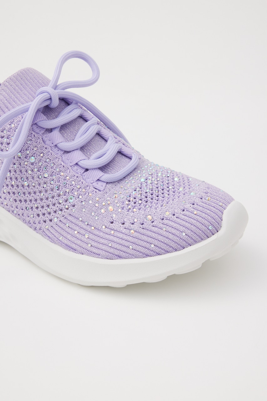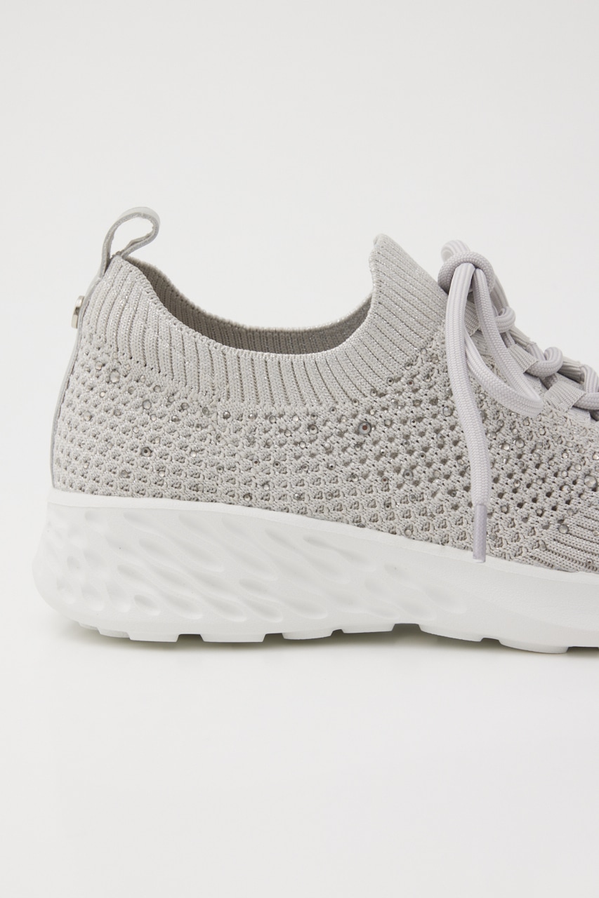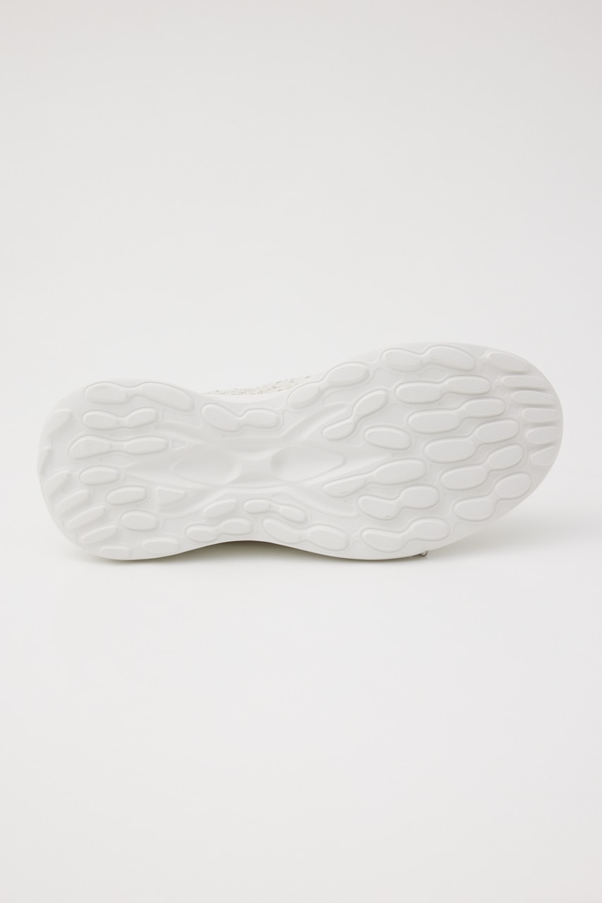 人気のレースアップスリッポンに新デザインが登場。華やかなダイヤカットのクリスタルストーンを散りばめ、通気性も良いラメ混のメッシュニット地に軽量なランニング風ソールで軽快な履き心地を実現。シューレスはデザインなのでスリッポンタイプでそのまま履いていただけます。