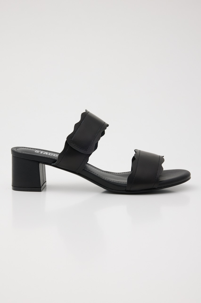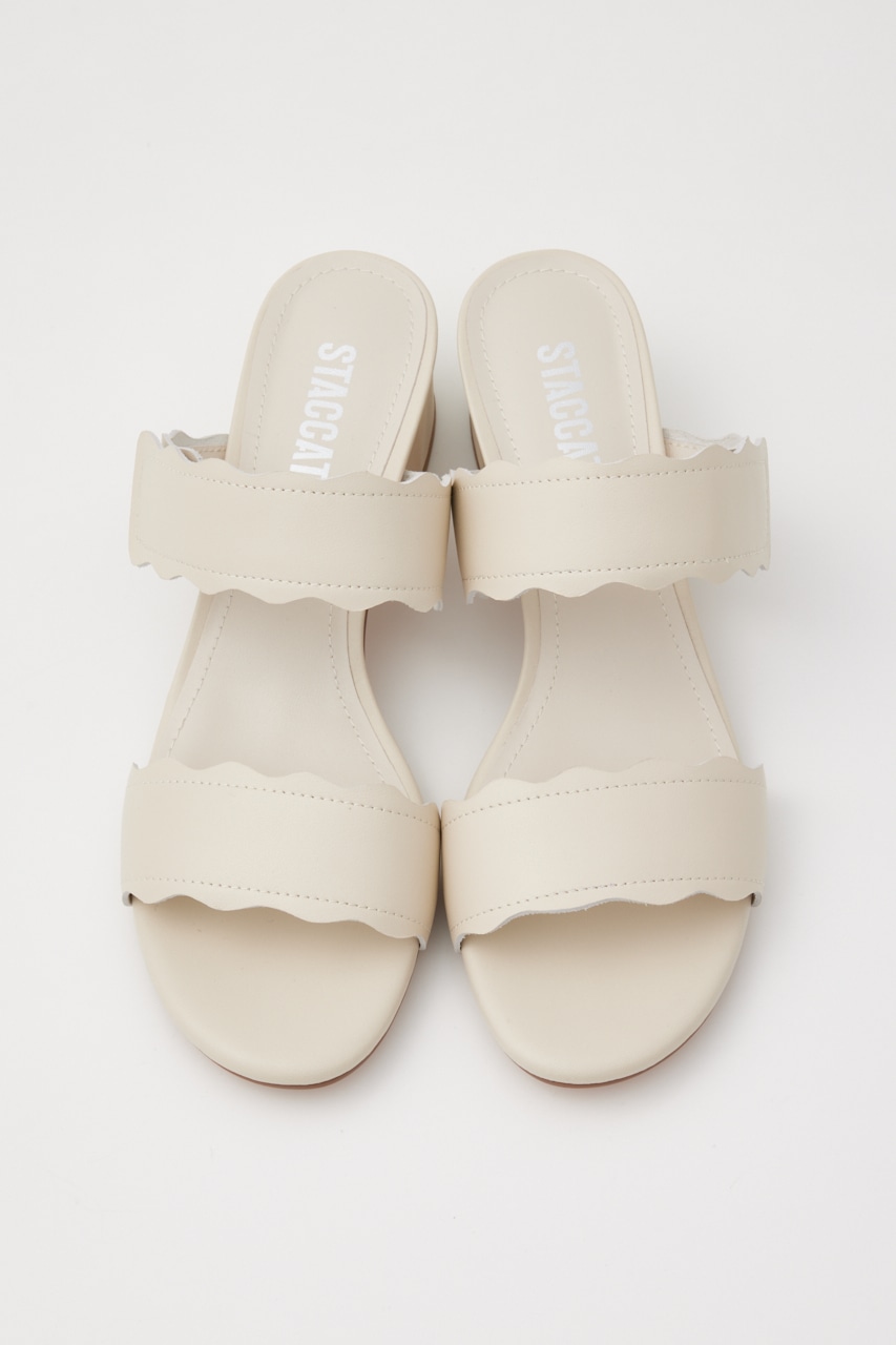 【日本テレビ「ヒルナンデス」井桁弘恵様】 STACCATOで大人気のウェーブカットデザインから、ミュールタイプが新登場。フィット感のあるWベルトにミドル高のブロックヒールなのでミュールサンダルでも安定感抜群。きれい目にもカジュルにもどんなコーディネートにも相性のよい、スタイリングのワンポイントになるデザインです。