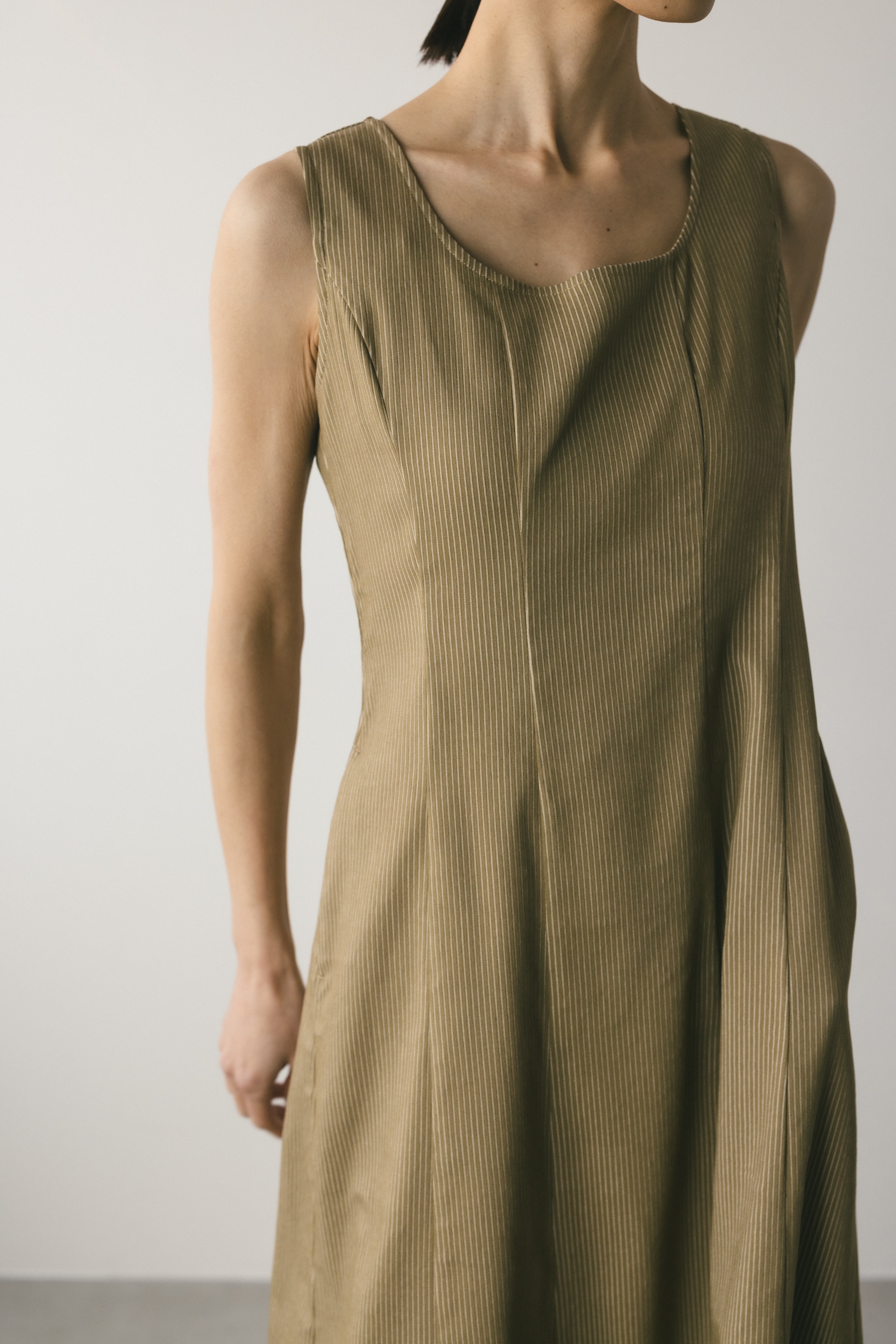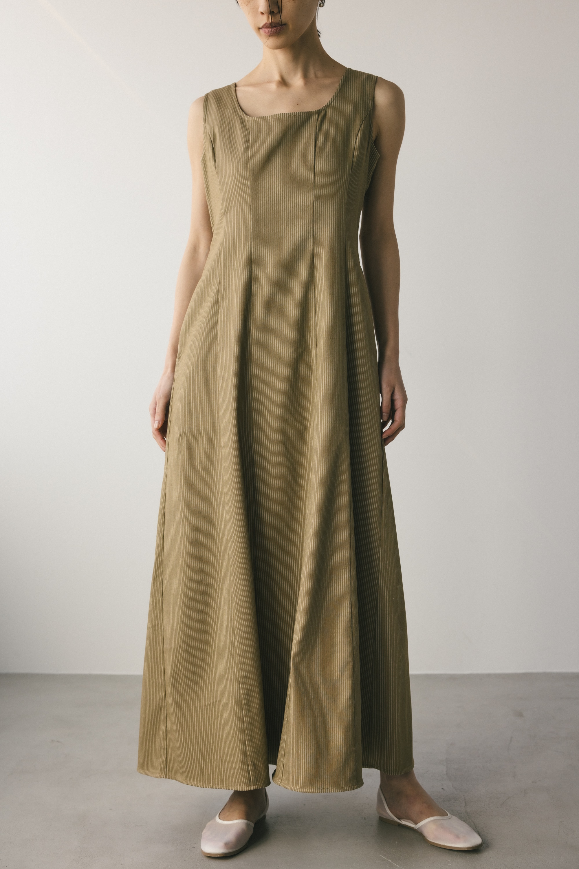 程よく厚みがある着心地良いハイストレッチ素材を使用したストライプワンピース。