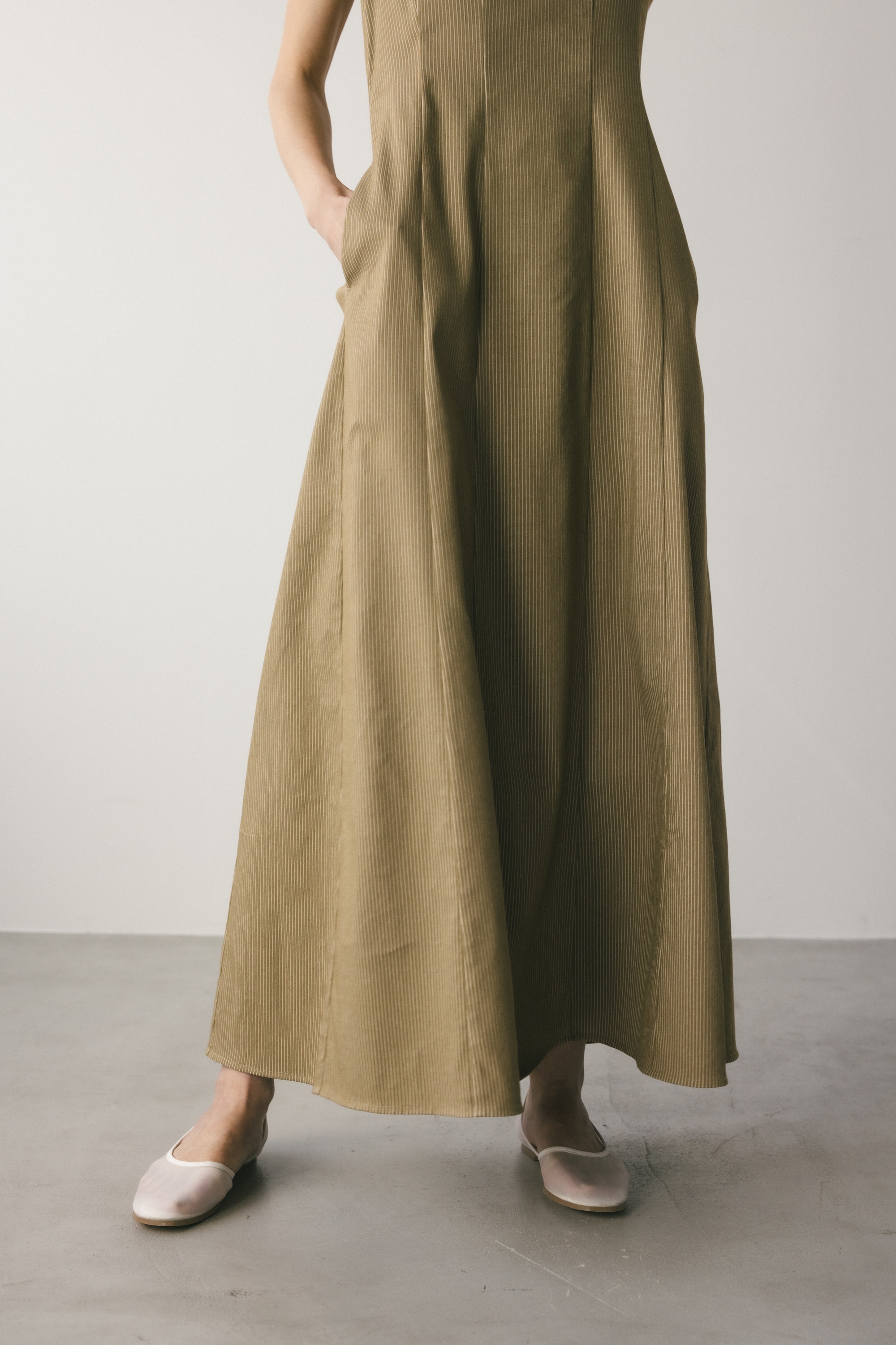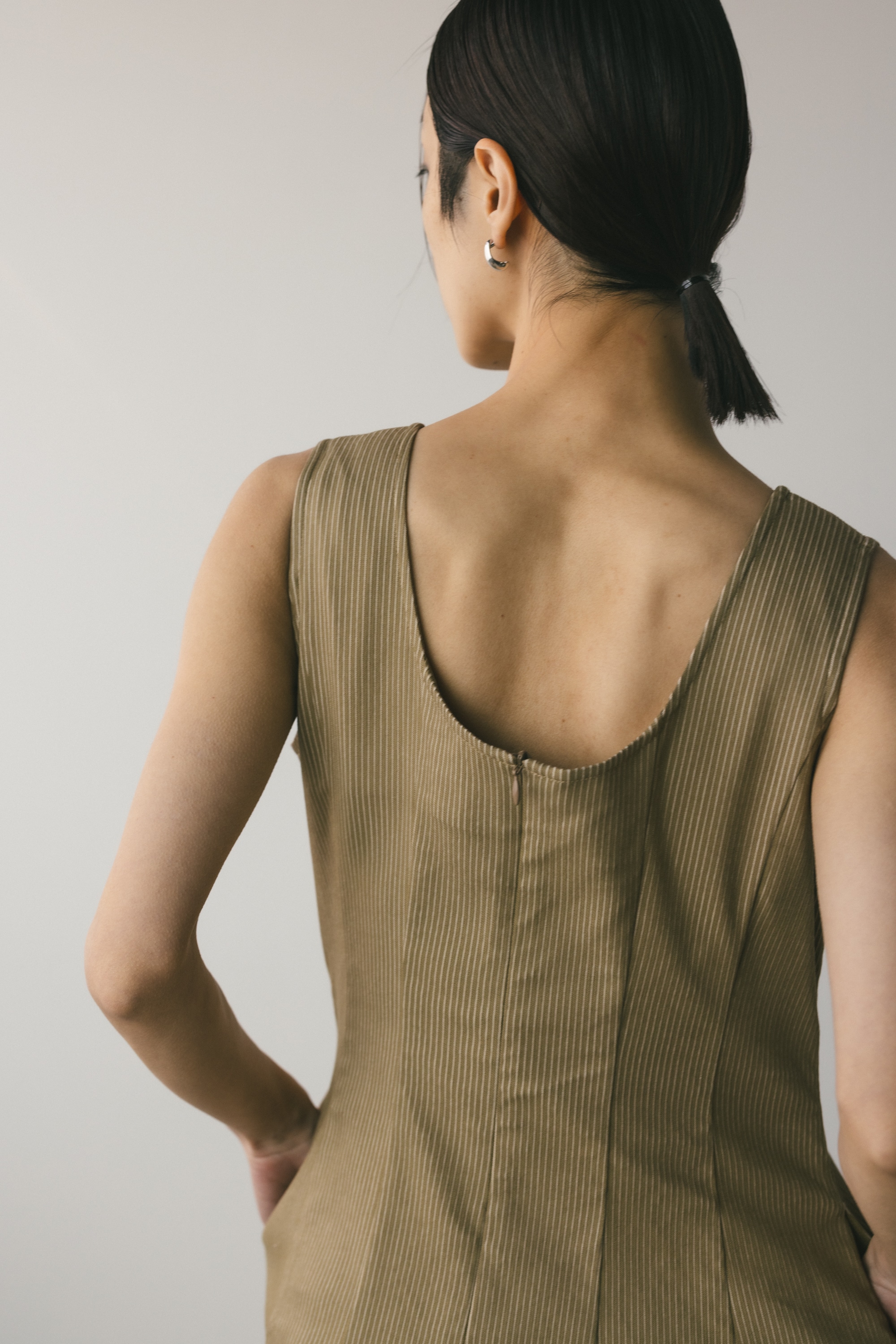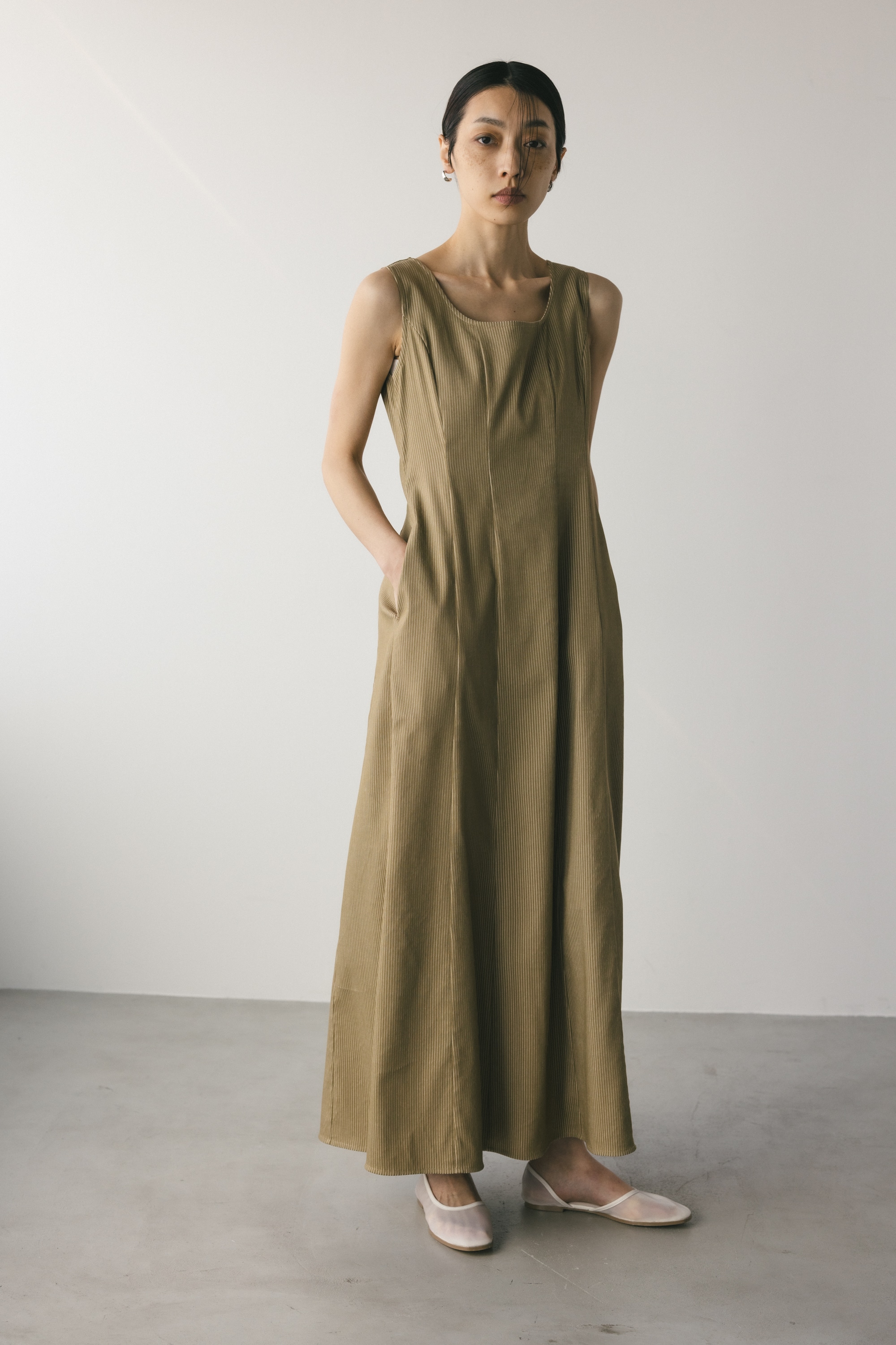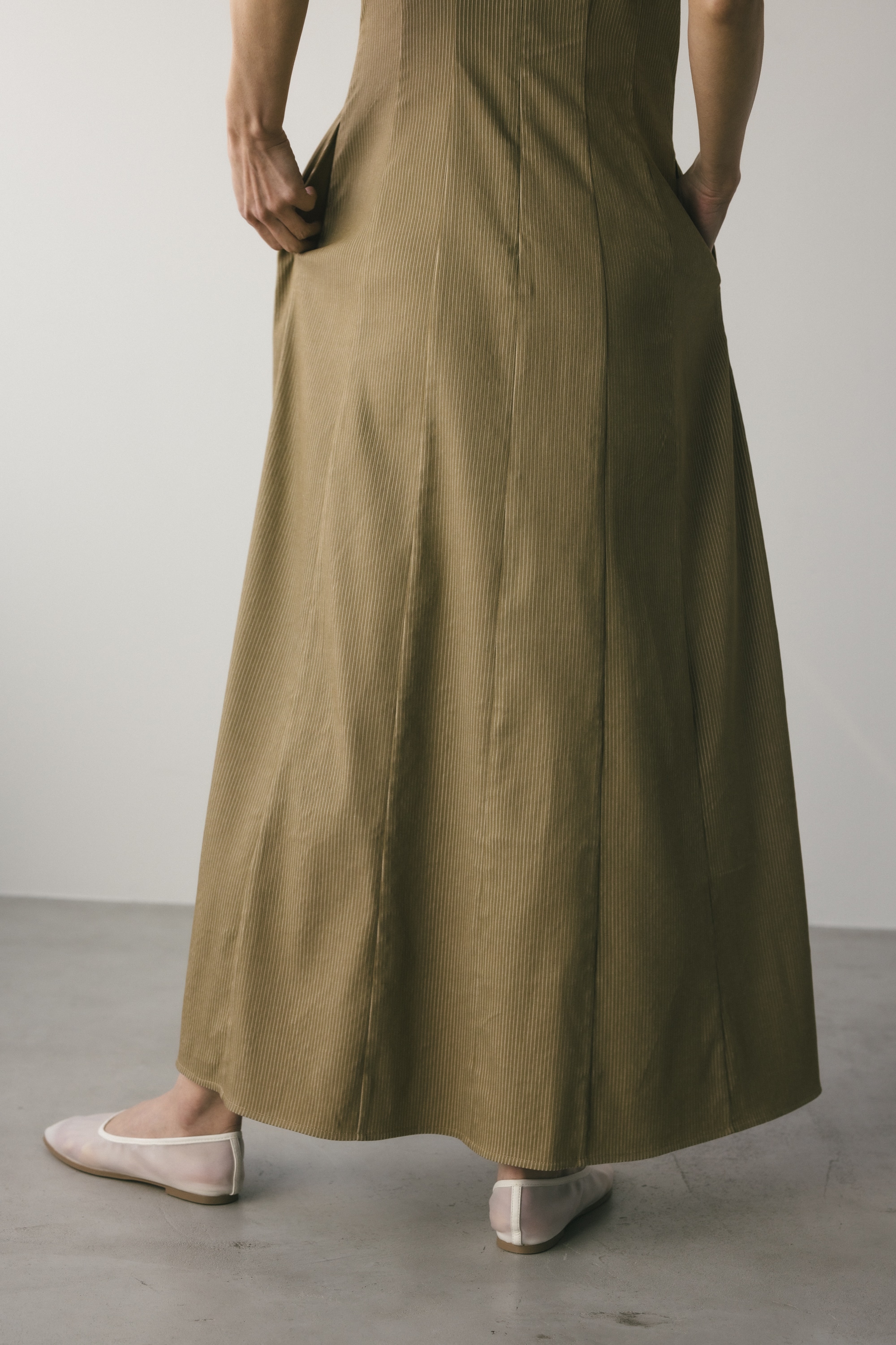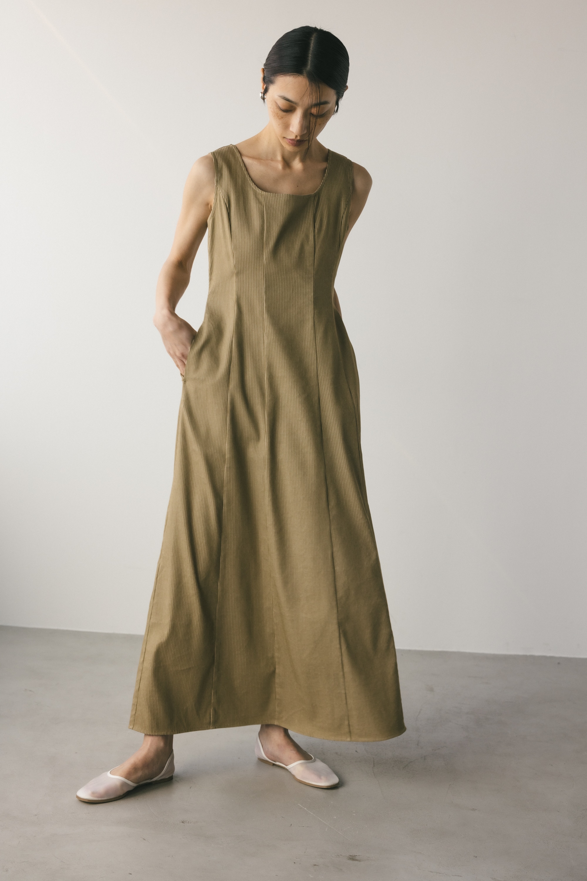 上品なラウンドネックと11パネルパターンで美しいシルエットを作ります。