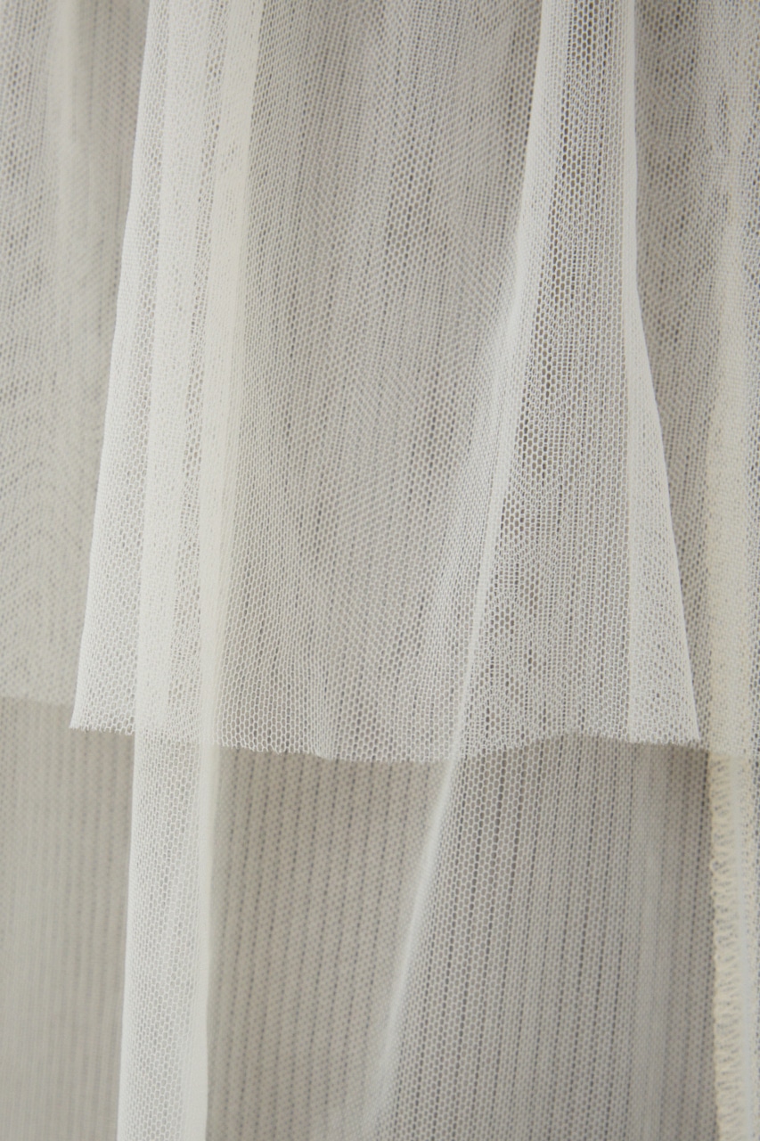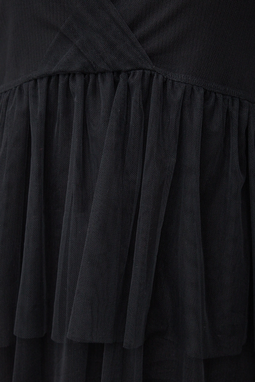 胸元とペプラムのデザイン、たっぷりとした着丈で、チュールを大人っぽく着こなすことができる一枚です。