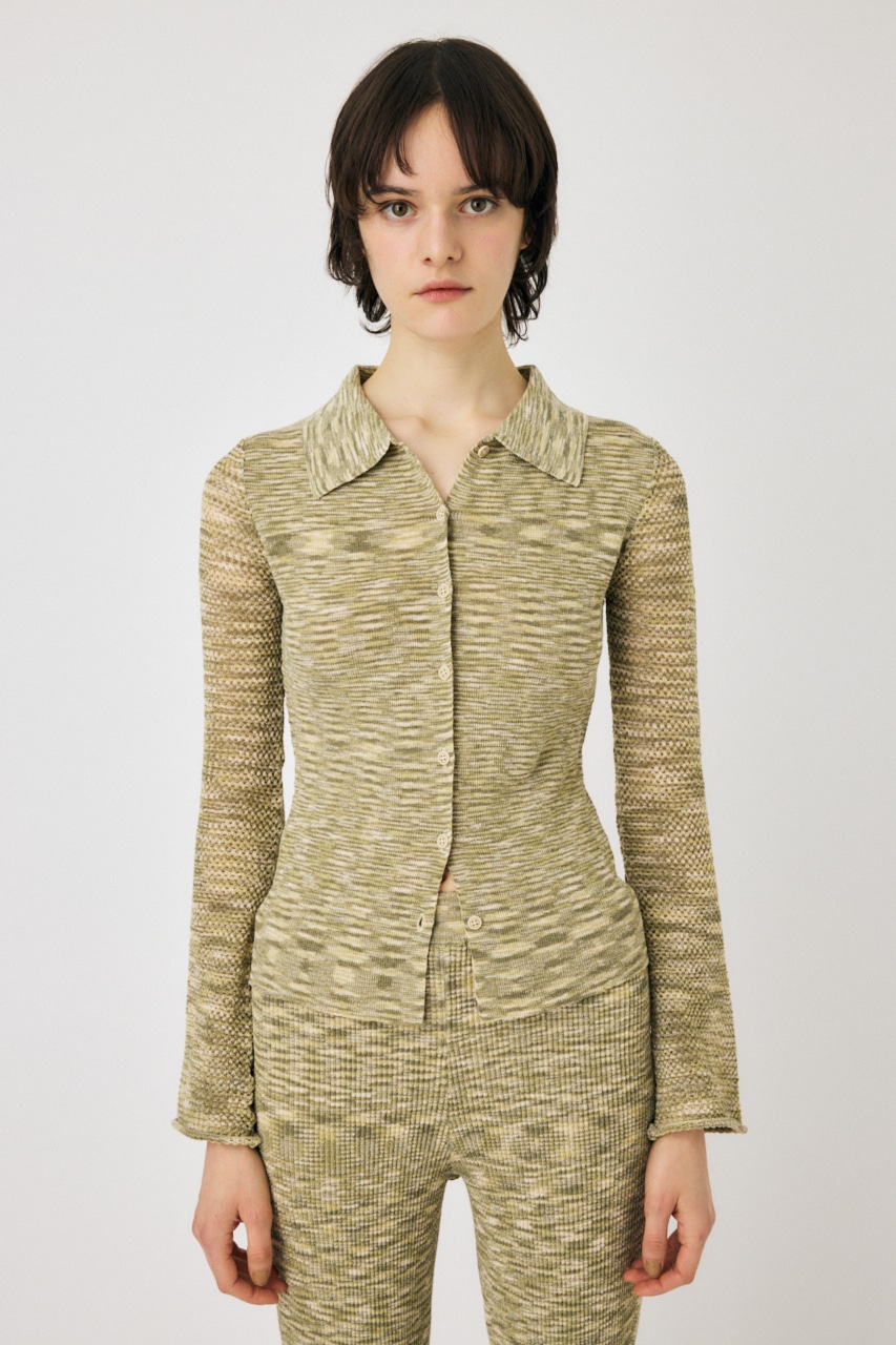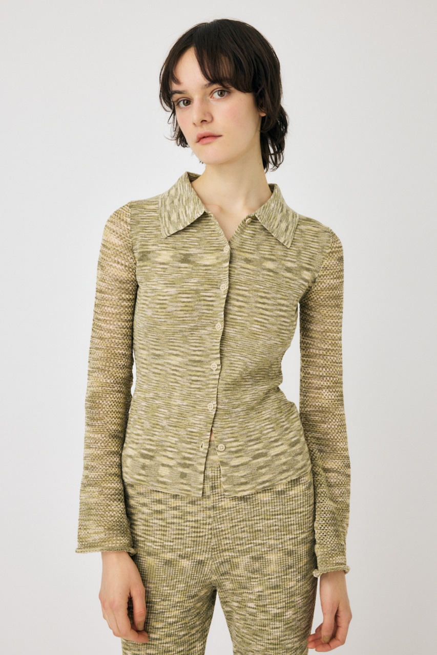 グラデーション糸を使用したマルチカラーの表情がかわいいニットシャツトップス。