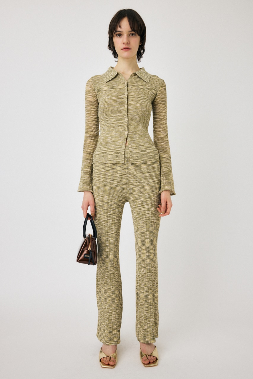 ボディはリブ編みで程よいフィット感があり、袖はメッシュ編みにして透け感を出しています。