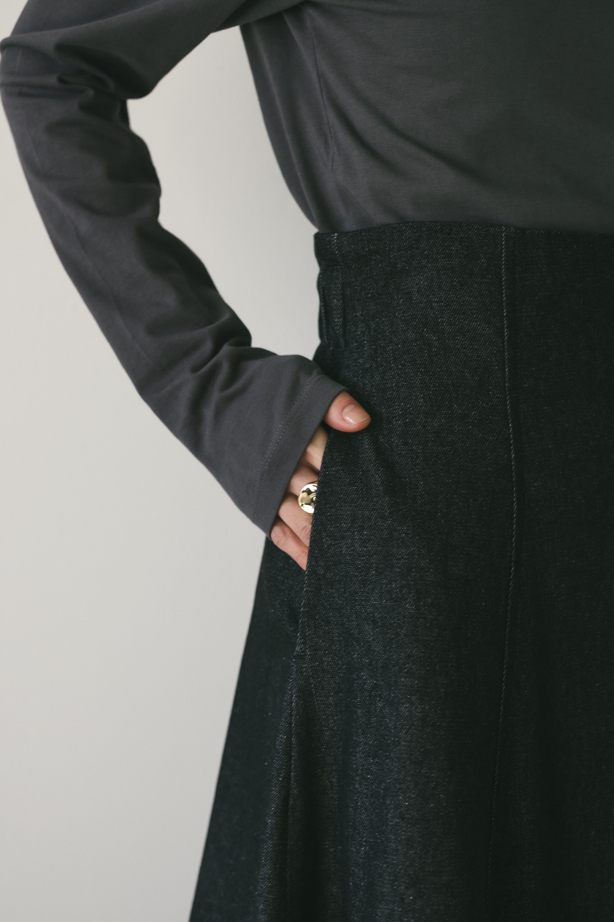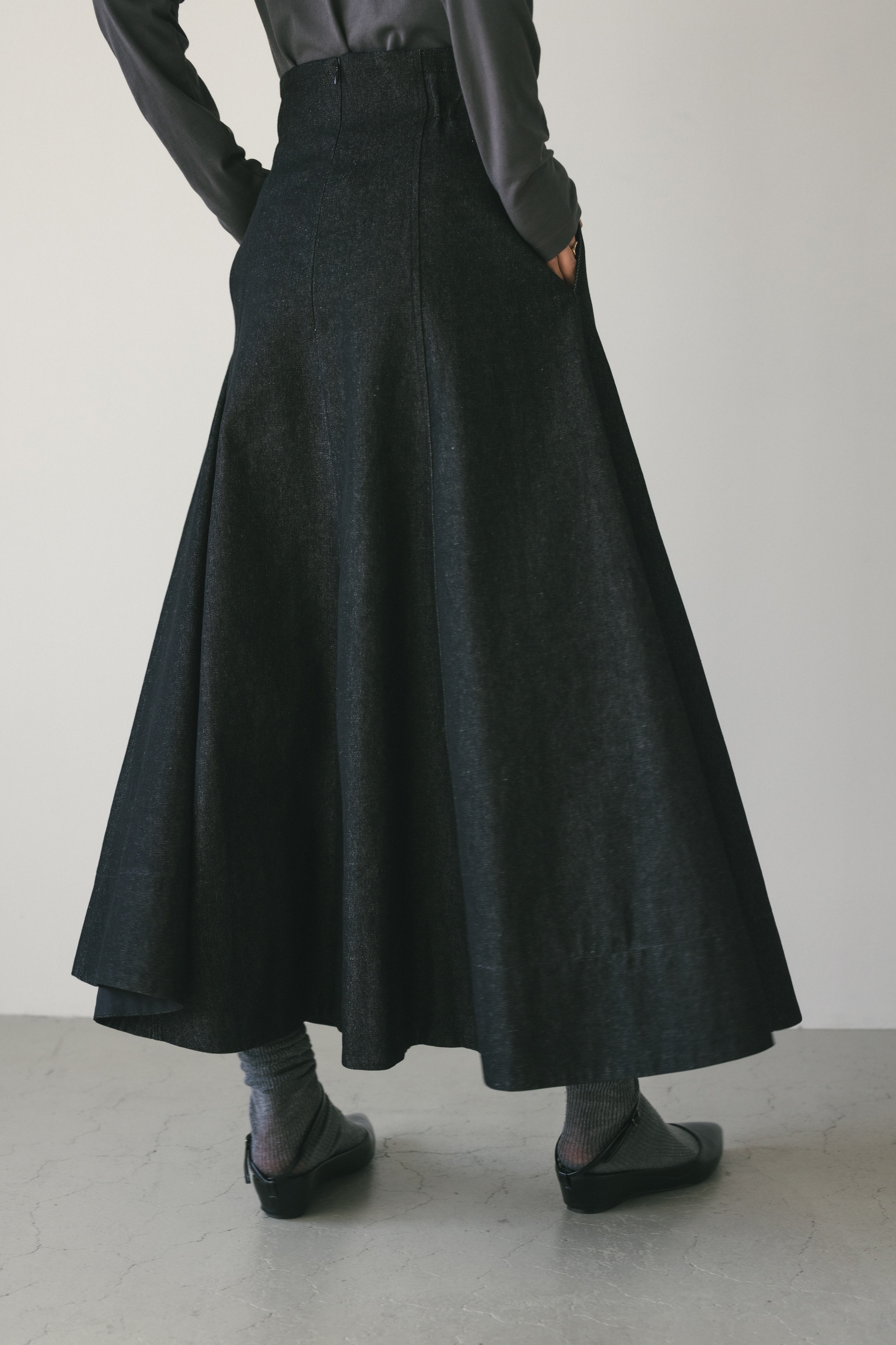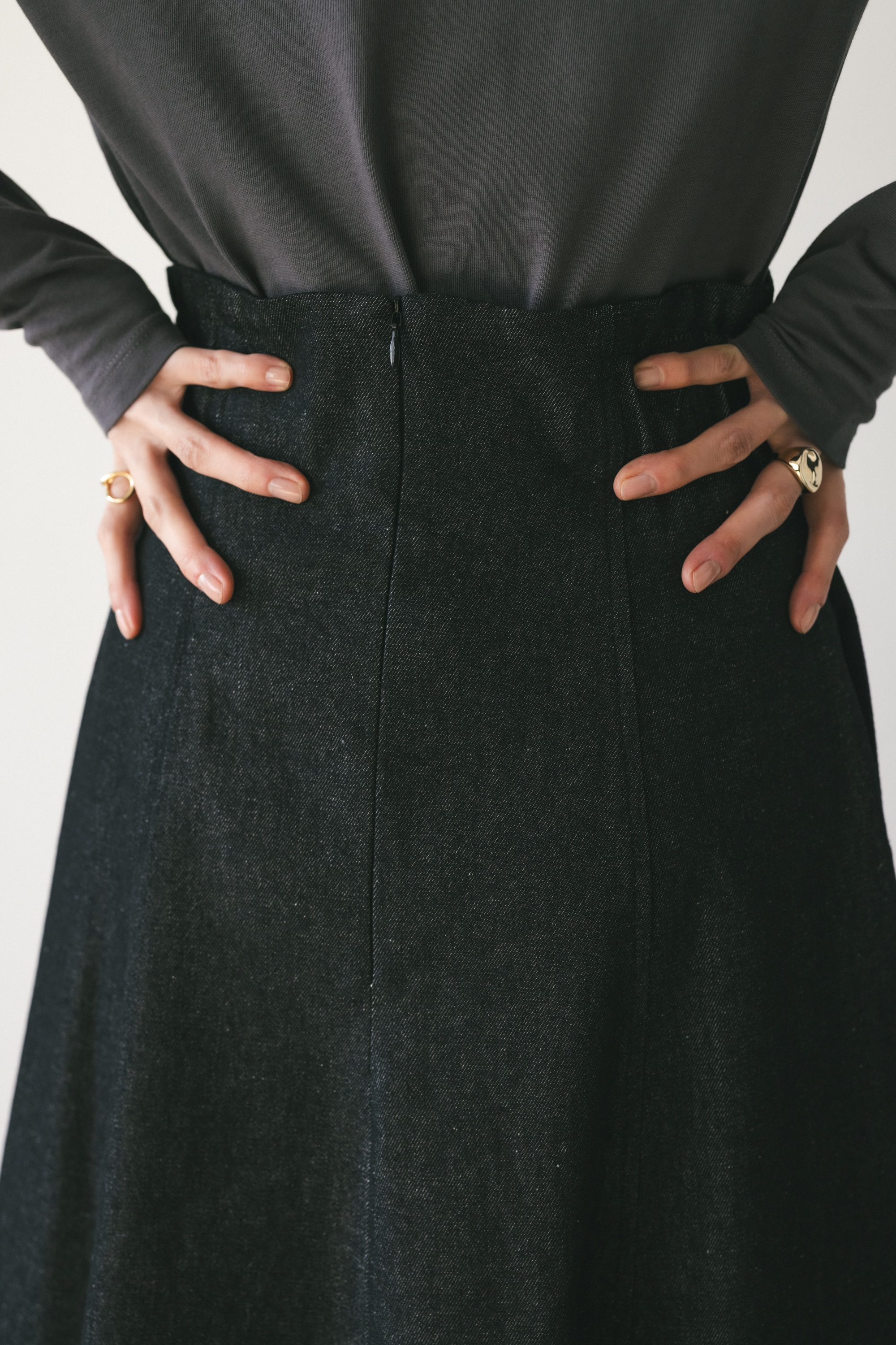 程よい厚みとハリ感のあるデニム生地を使用した上品で華やかなフレアスカート。