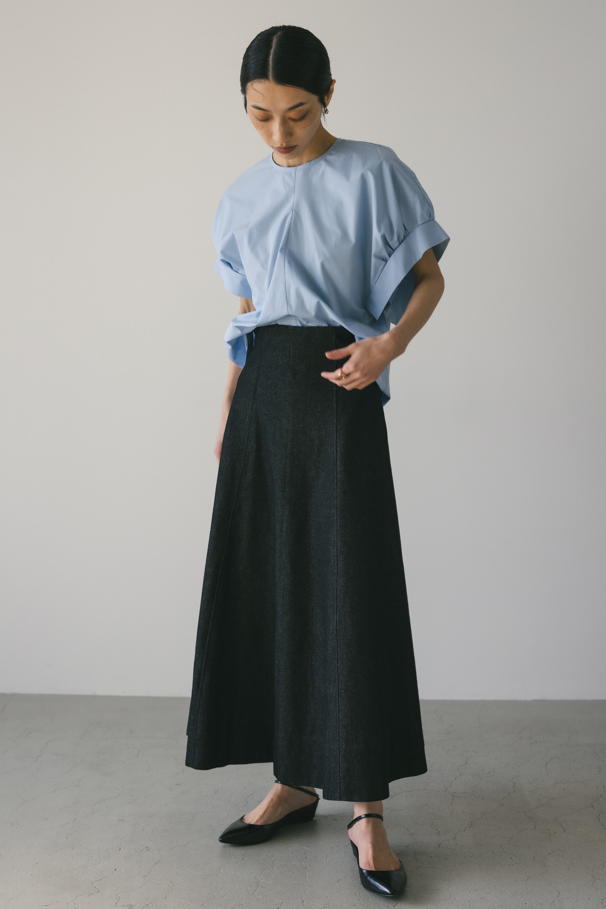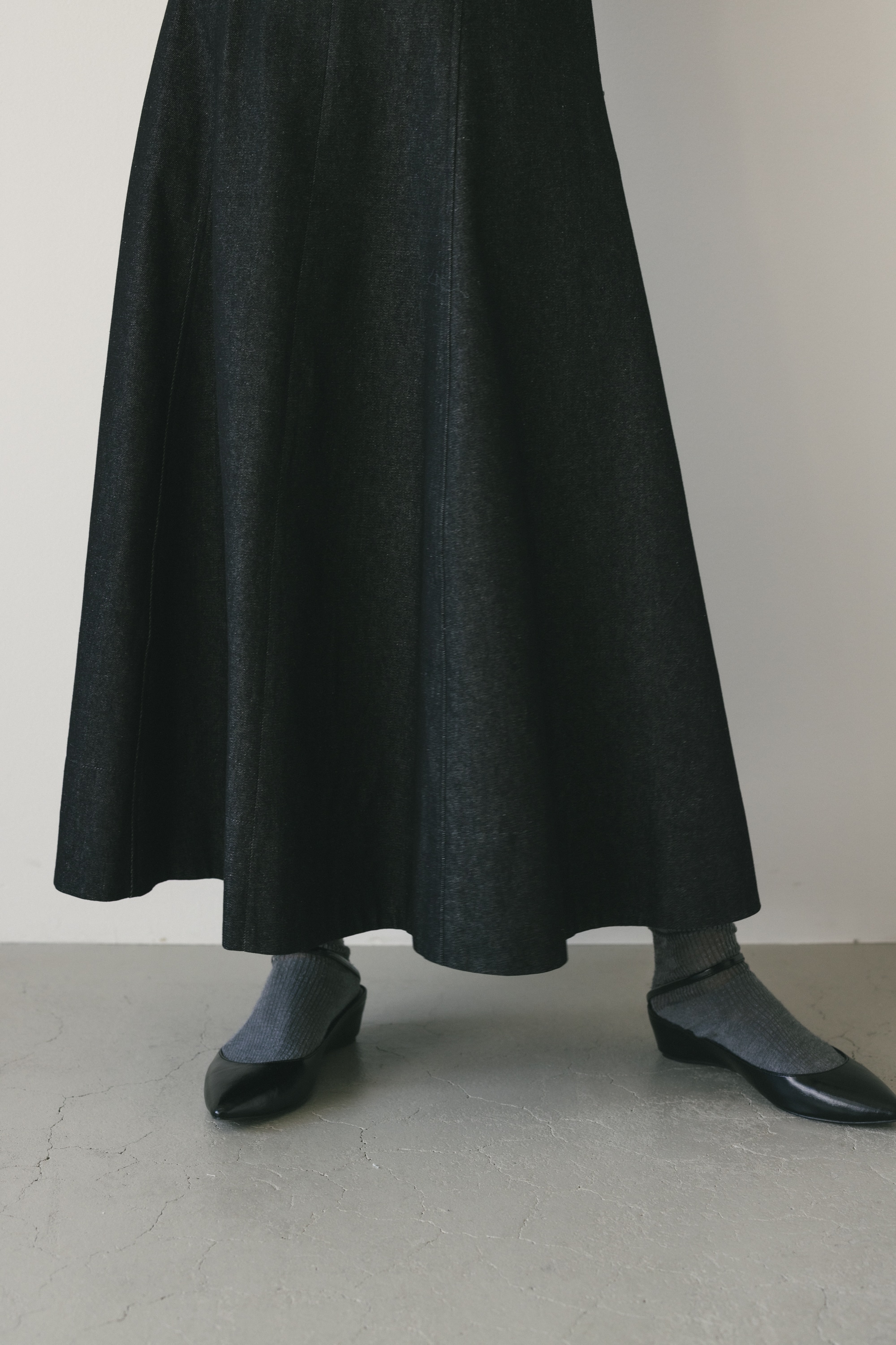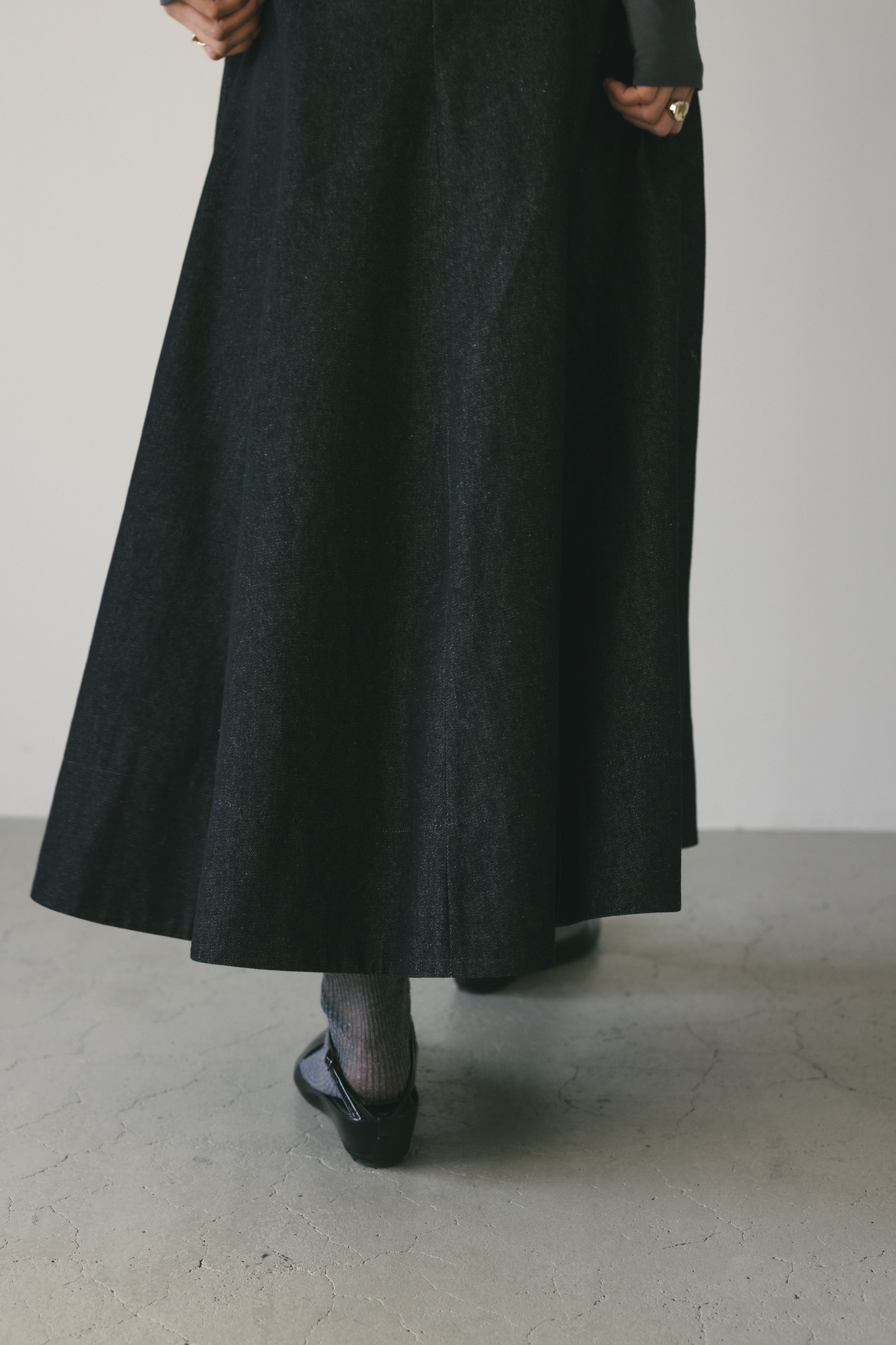 程よい厚みとハリ感のあるデニム生地を使用した上品で華やかなフレアスカート。