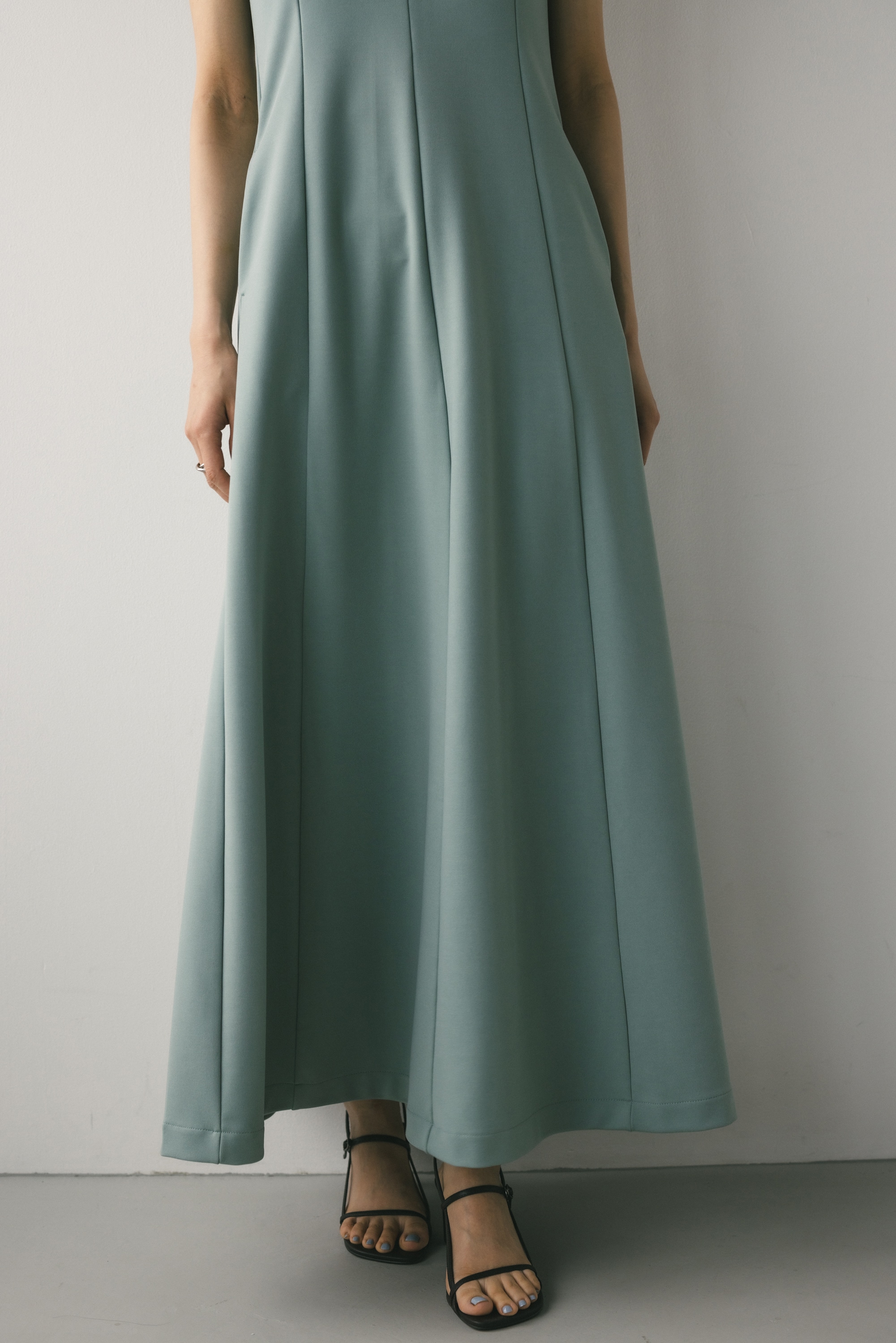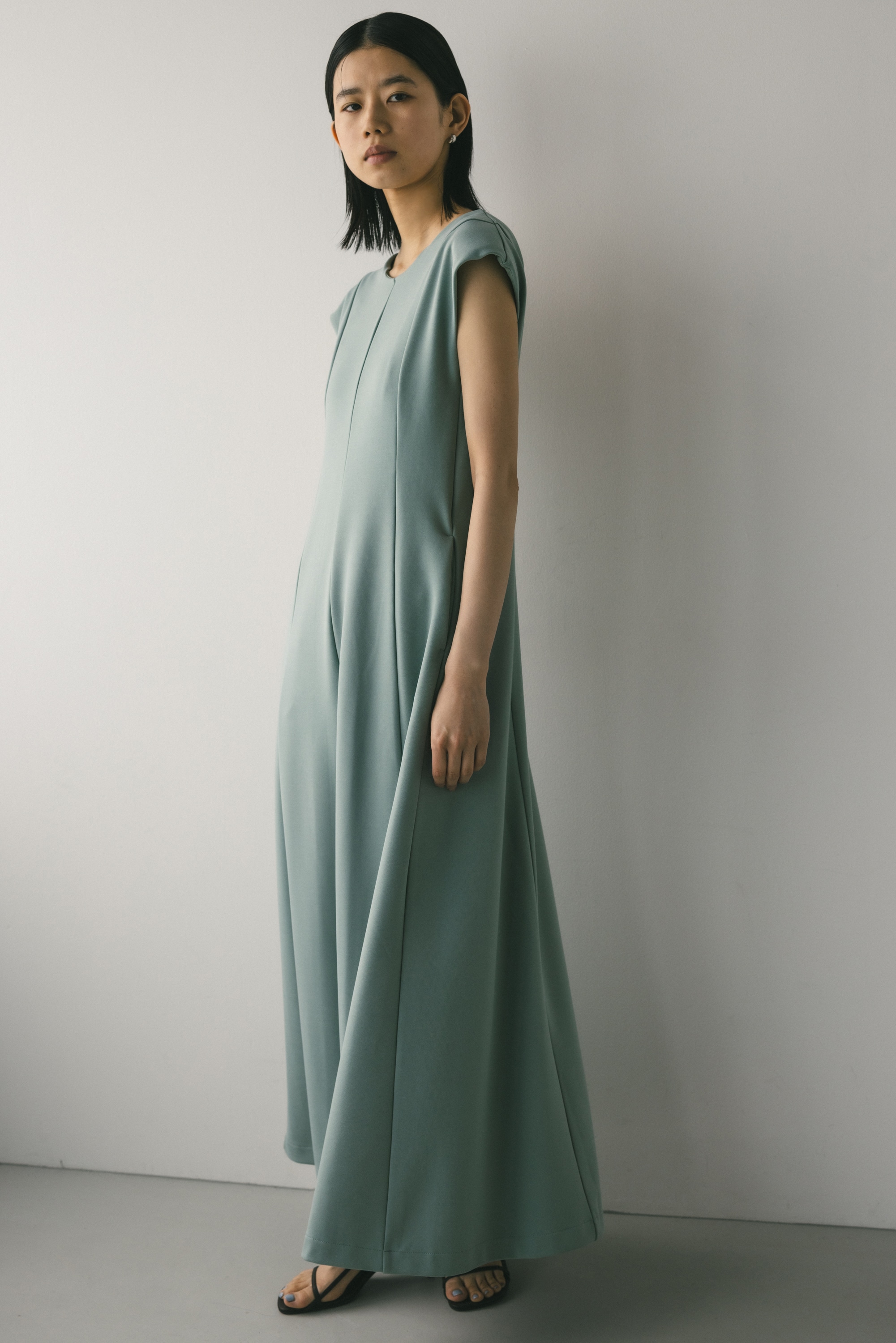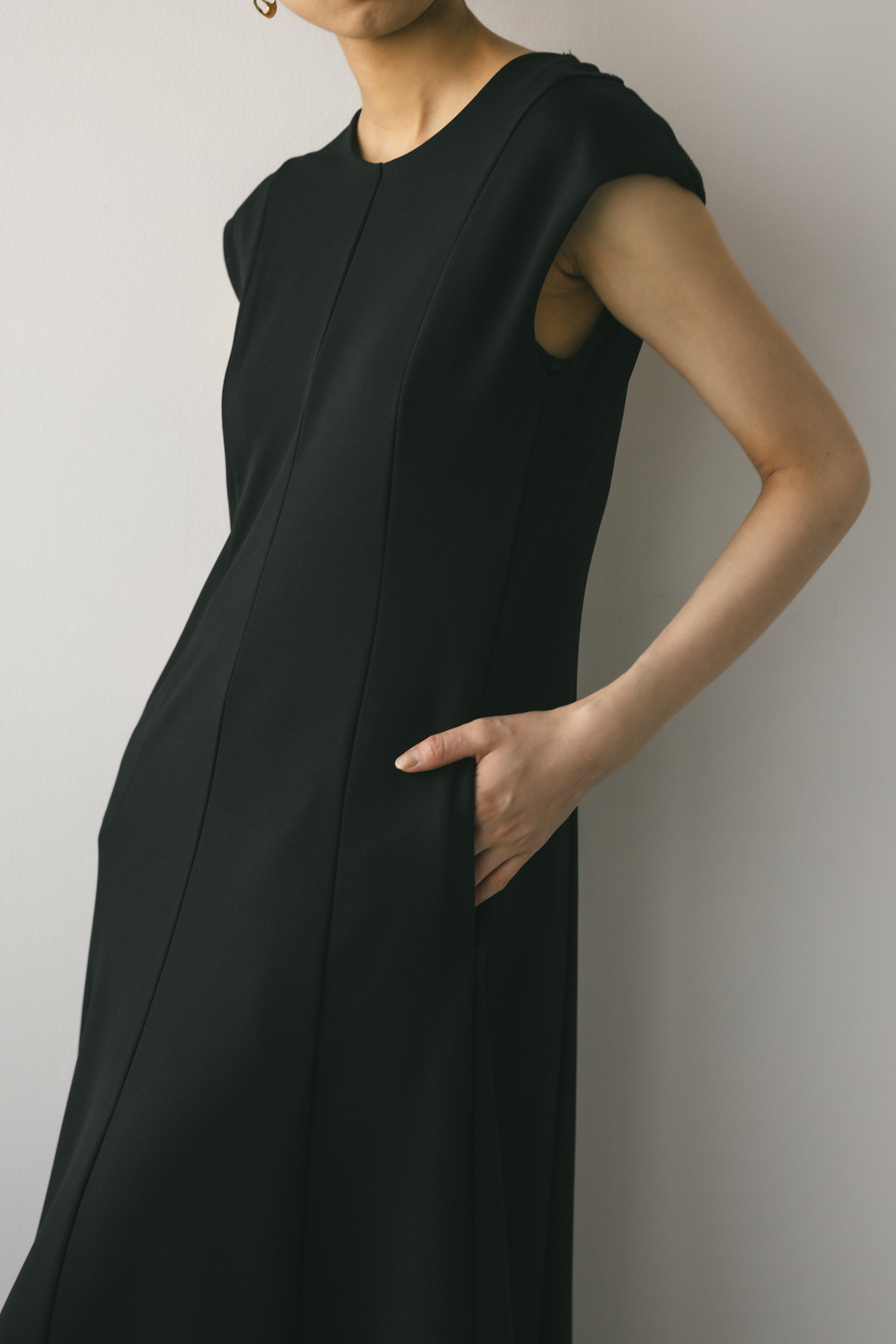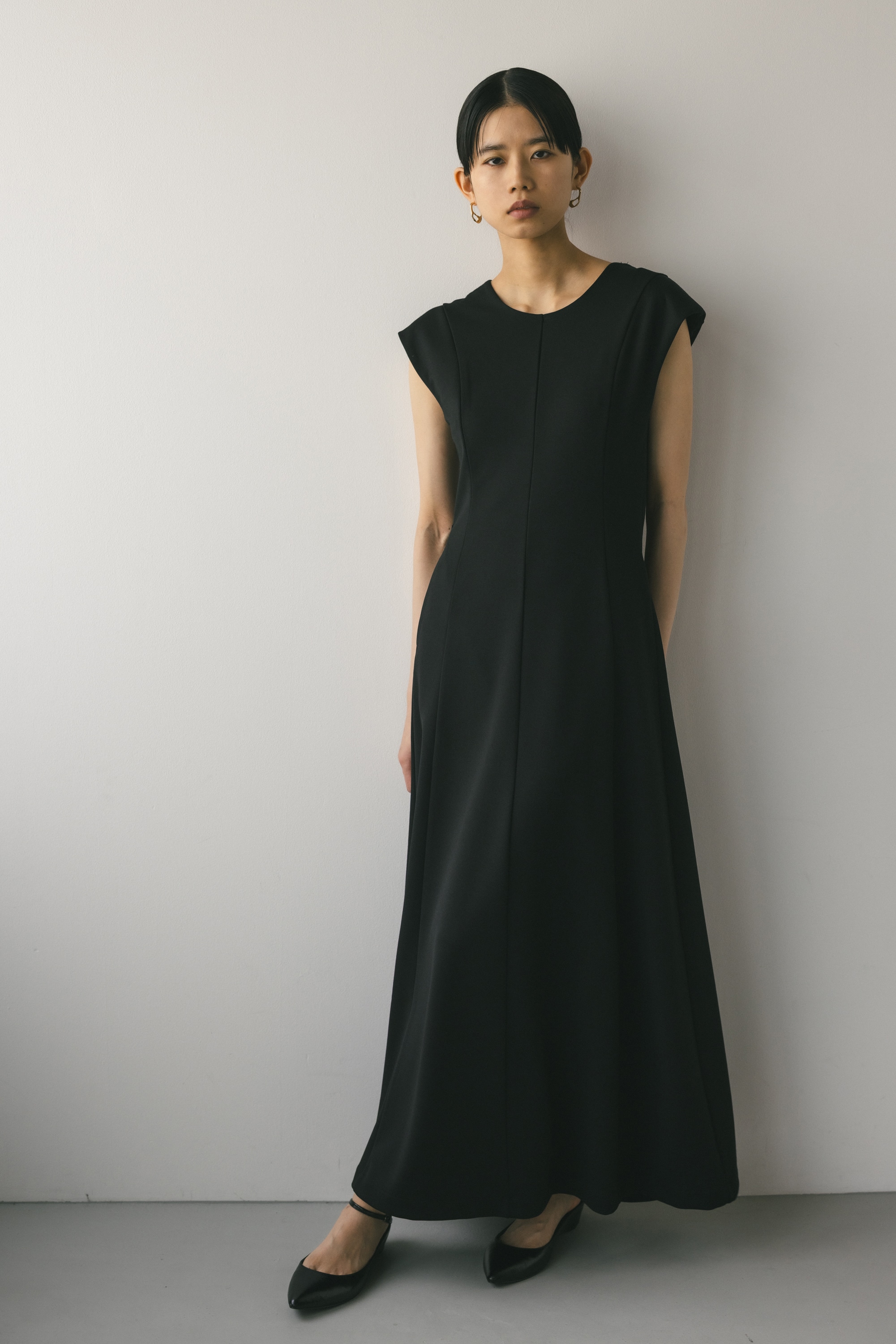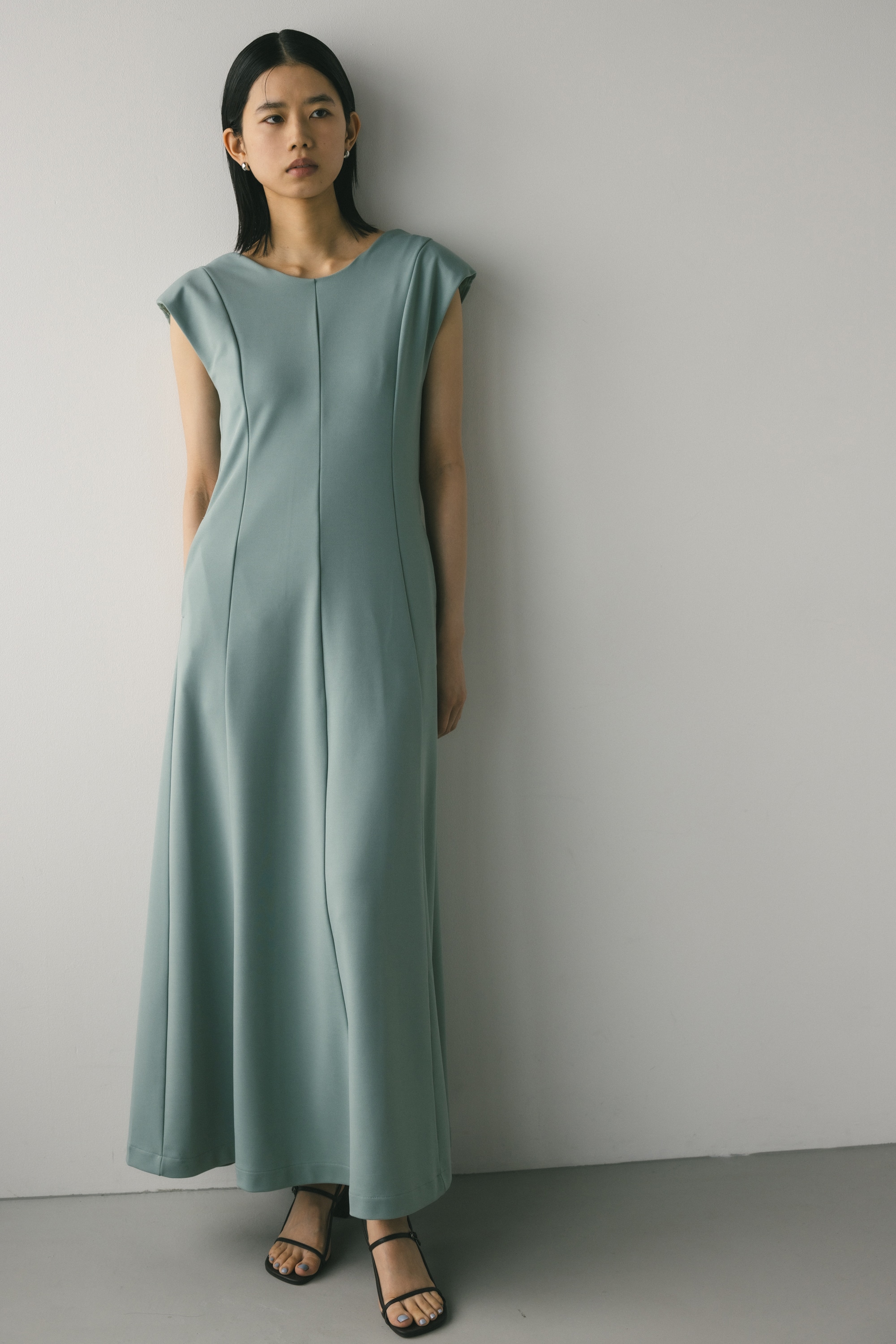 高い位置で絞ったウエストとパネルパターンがスタイルアップに導きます。
