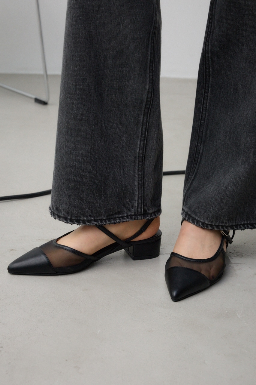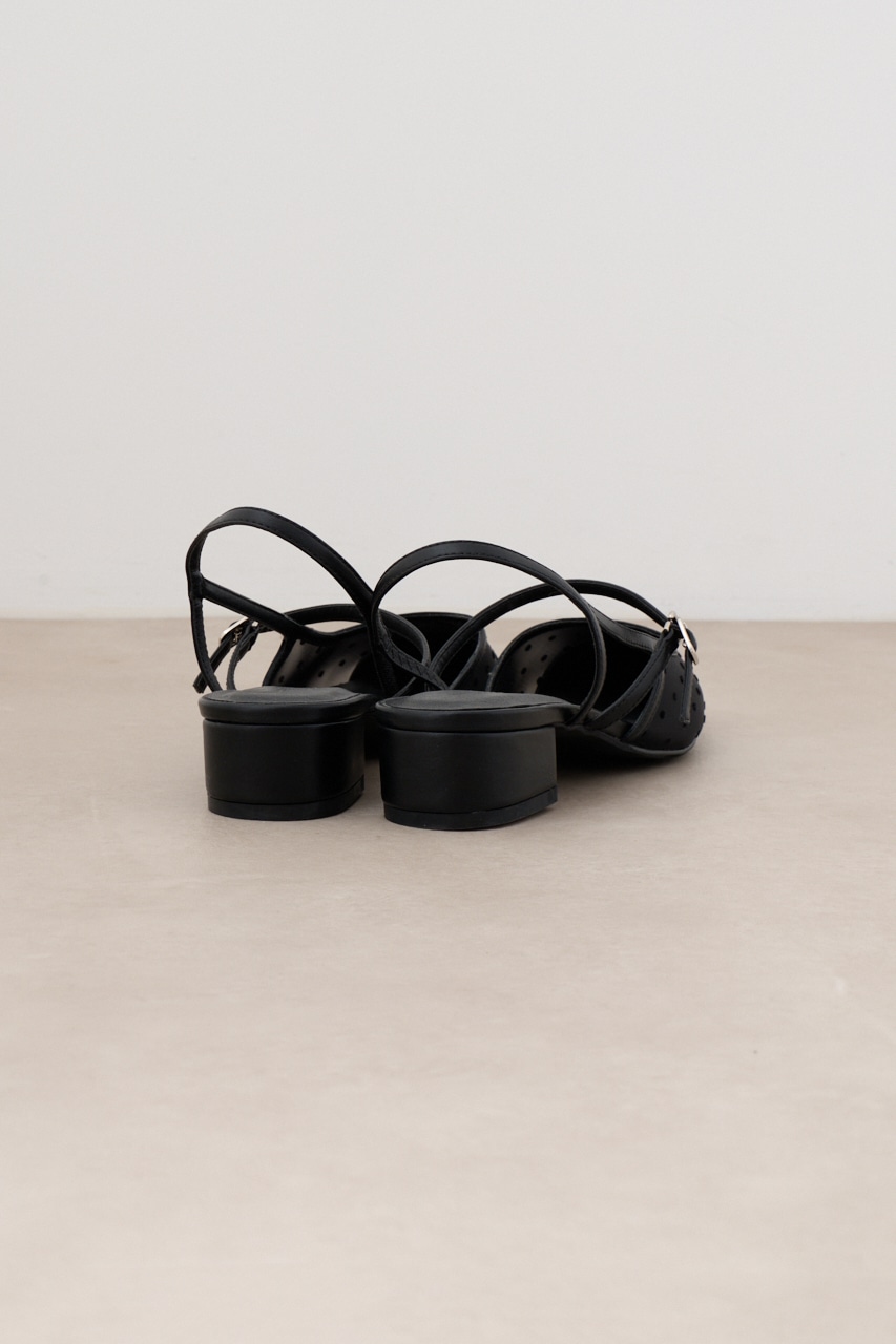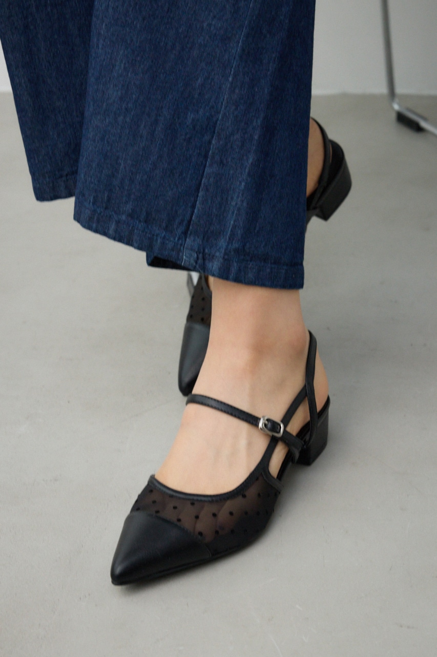 AZULらしいクールなブラックのドット柄。ポインテッドデザインなので、スタイルアップも叶います。