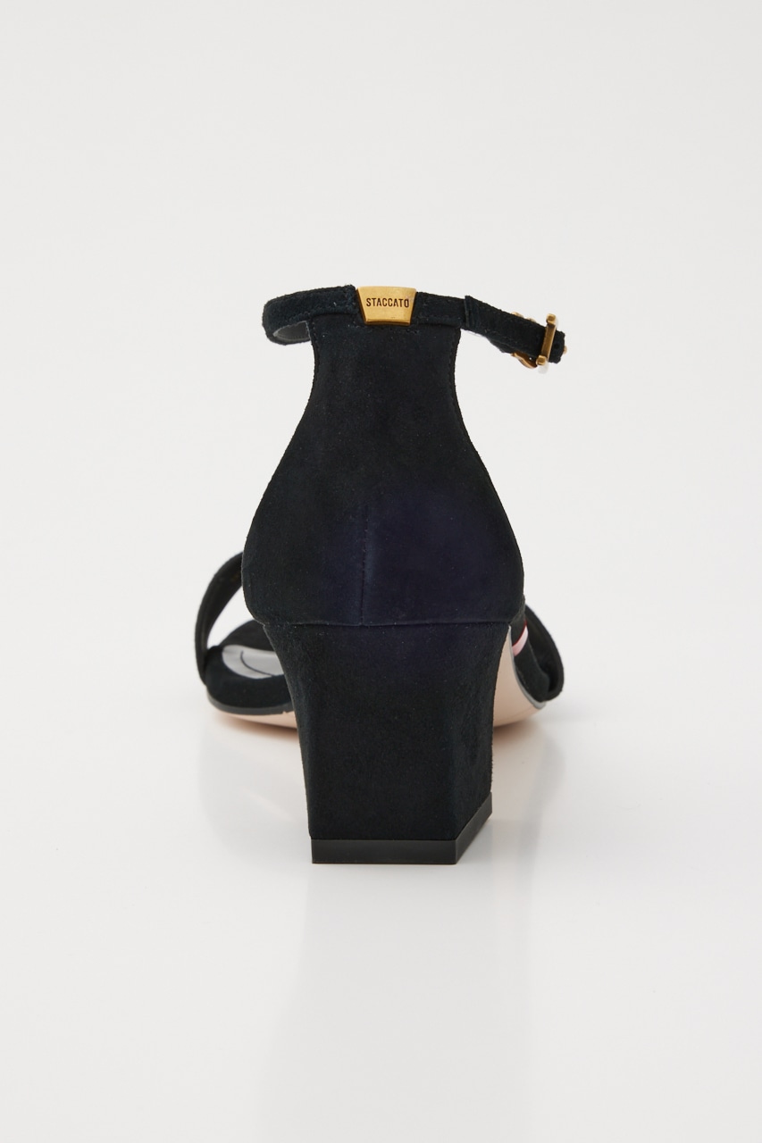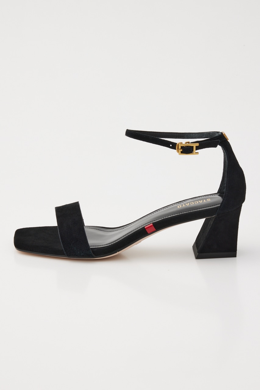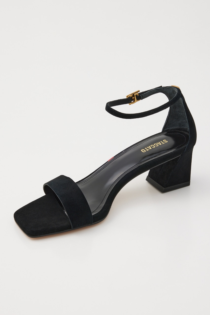 定番のアンクルストラップサンダルながら、脚を綺麗にみせてくれる華奢なストラップに安定感のあるフレアヒールがポイント。上品に履けるスクエアフォルムも大人きれい目に一役。春先から秋口まで履いていただける毛足の短いスエード素材が上品かつ柔らかな印象にもみせてくれます。