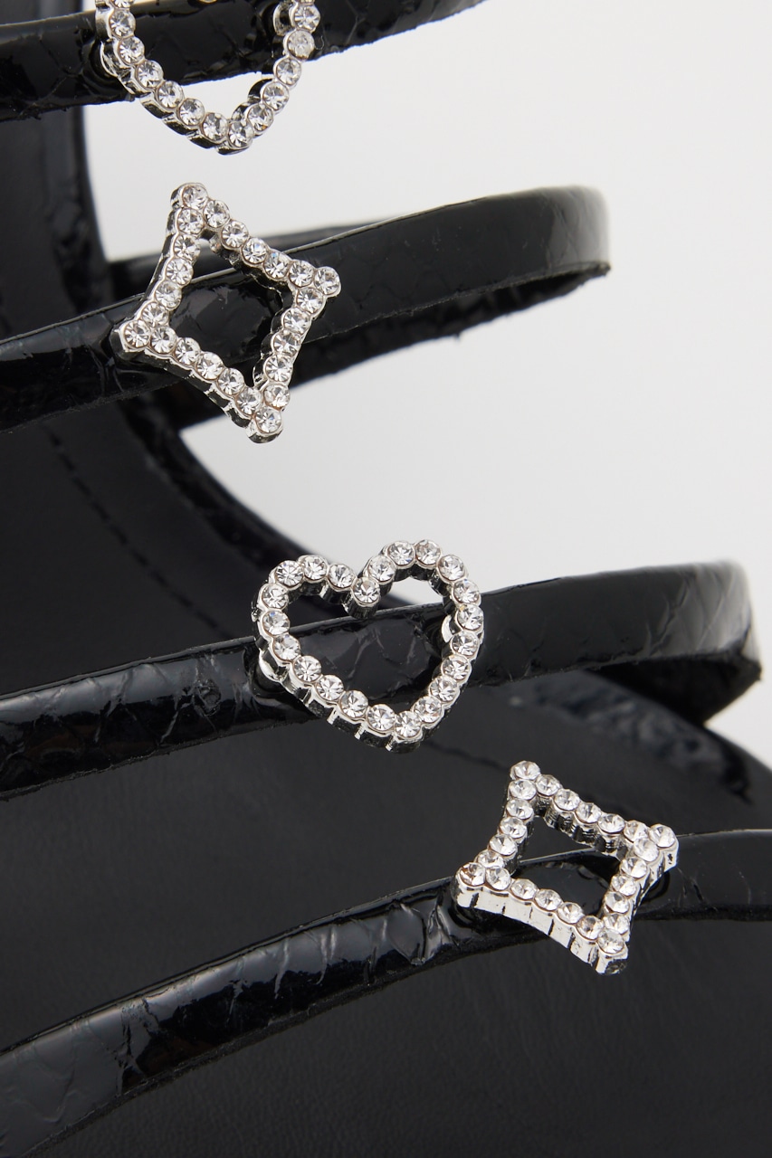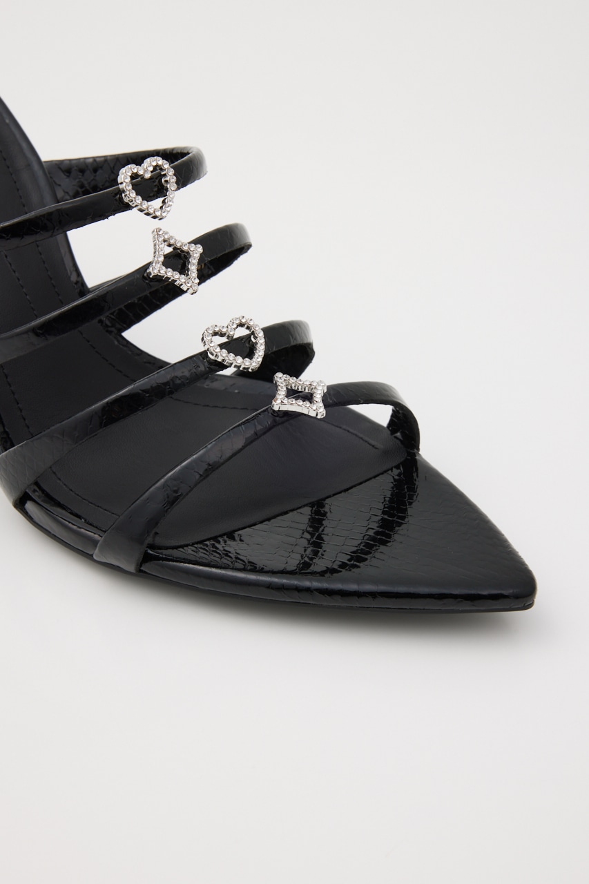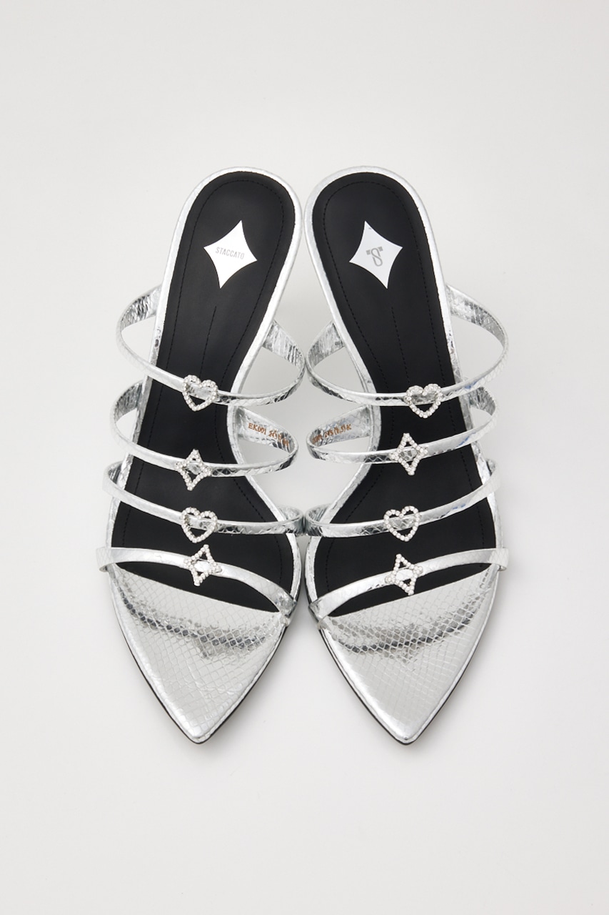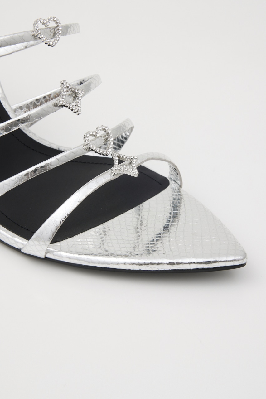 心ときめくキュートなチャームが足元を華麗にみせてれるピンヒールサンダル。シャープなポインテッドトゥは鋭利なつま先がさらにクールでスタイリッシュ。さらにSTACCATOらしい遊び心あるハート・ダイヤ形のアクセサリーのエッセンスがオリジナリティ満載。いつものコーディネートをワンランクアップしてくれます。