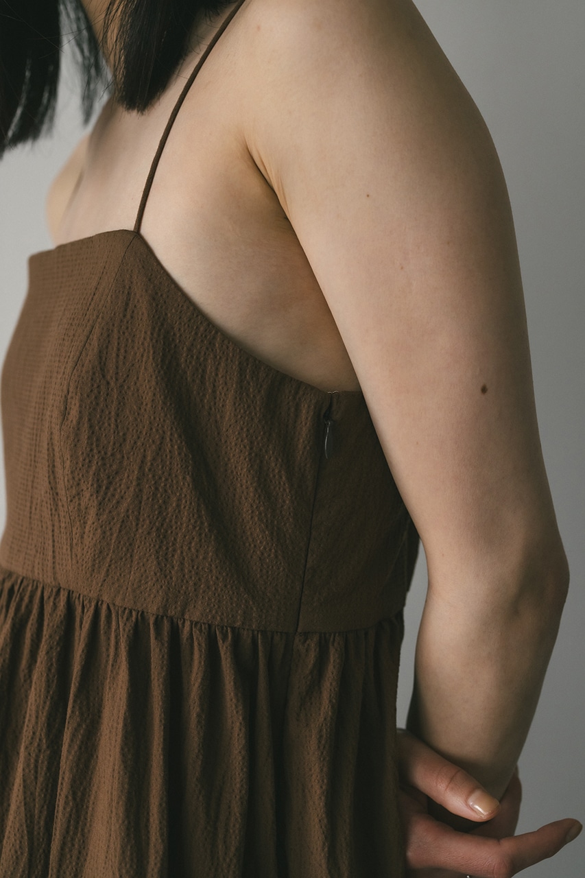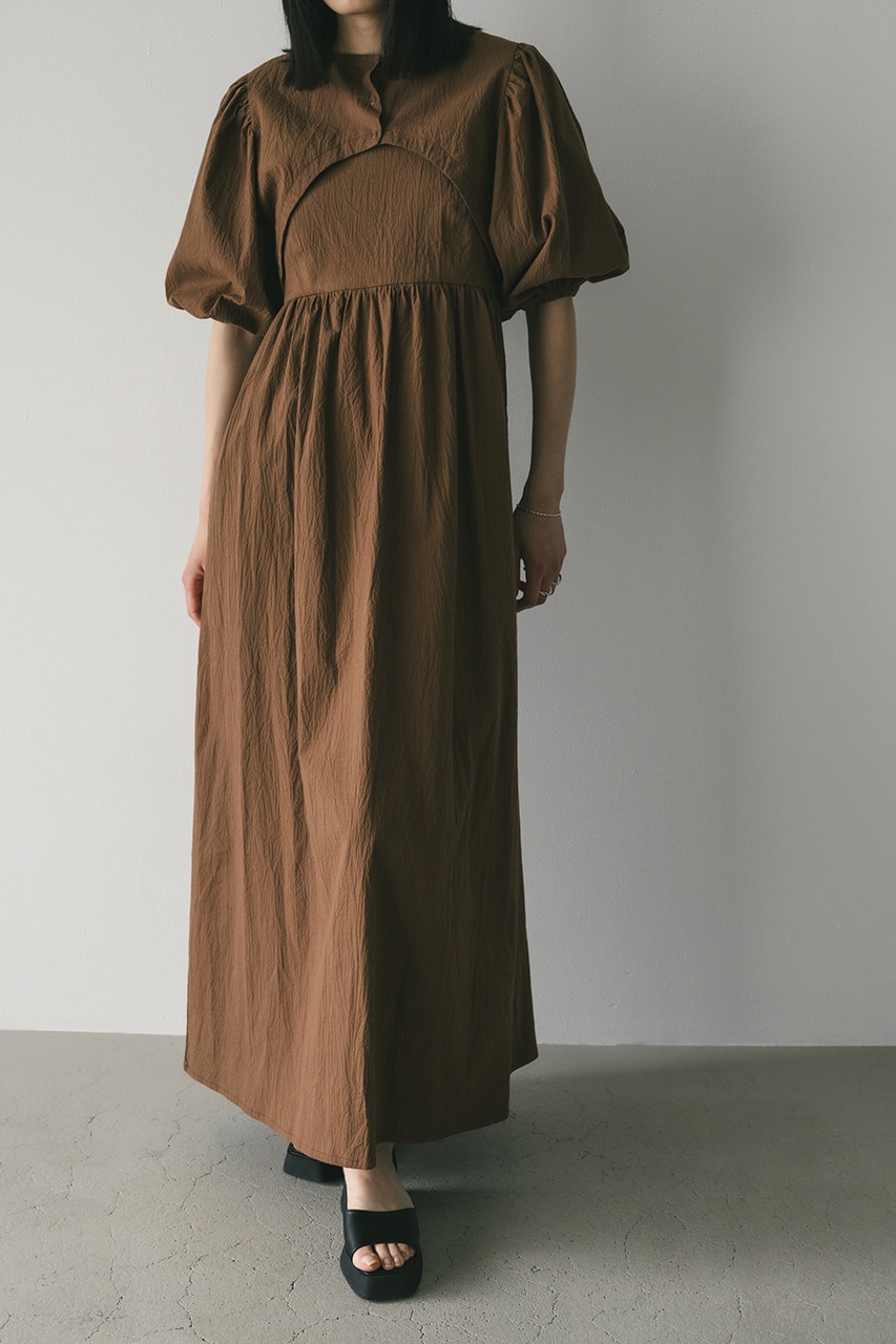 華奢な肩紐が可愛いベアギャザーワンピースと前後2WAYで着用できるボレロがセットになったワンピース。