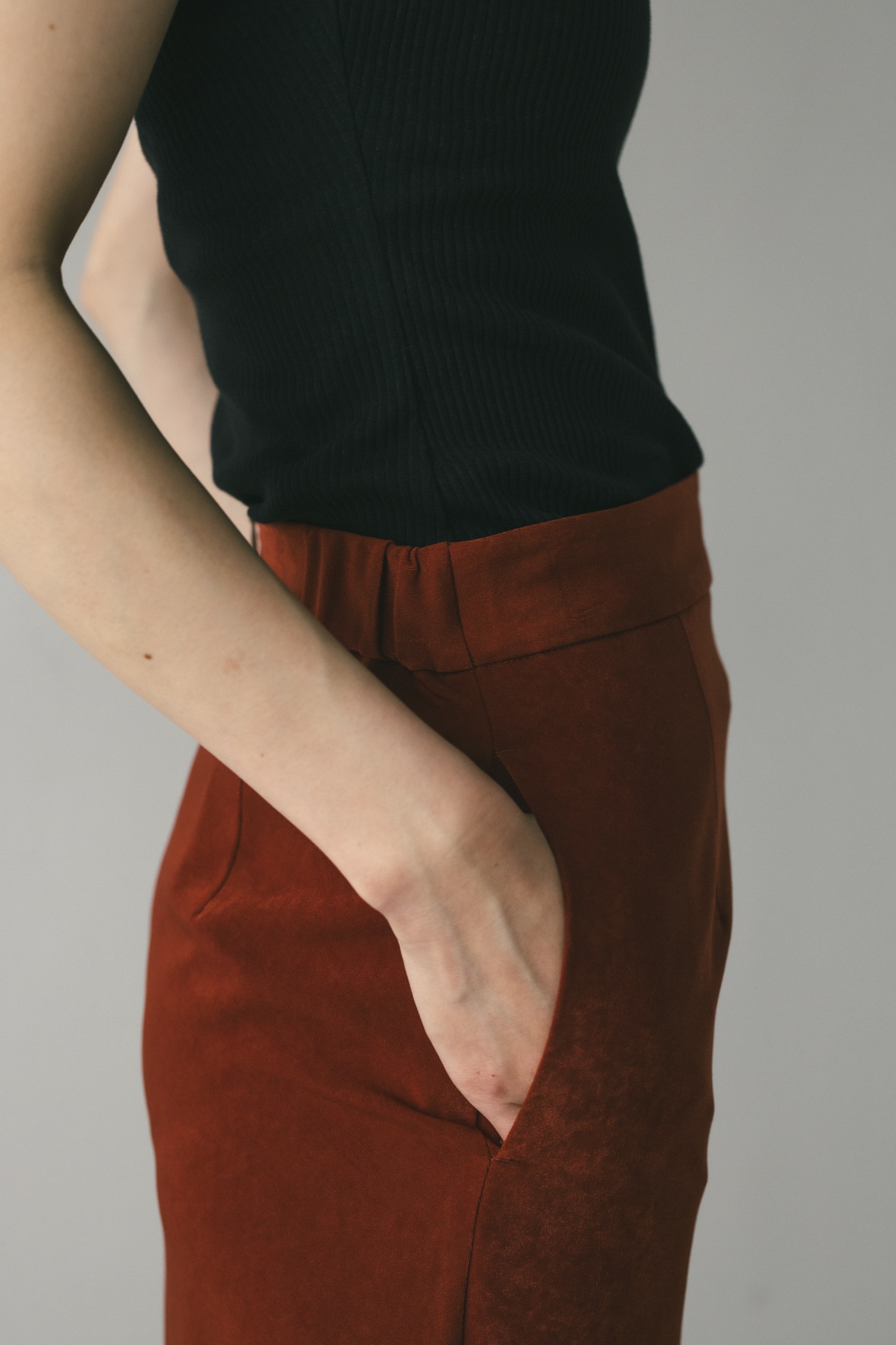 サイドゴム仕様で上品ながらもリラックスして着用していただけます。
