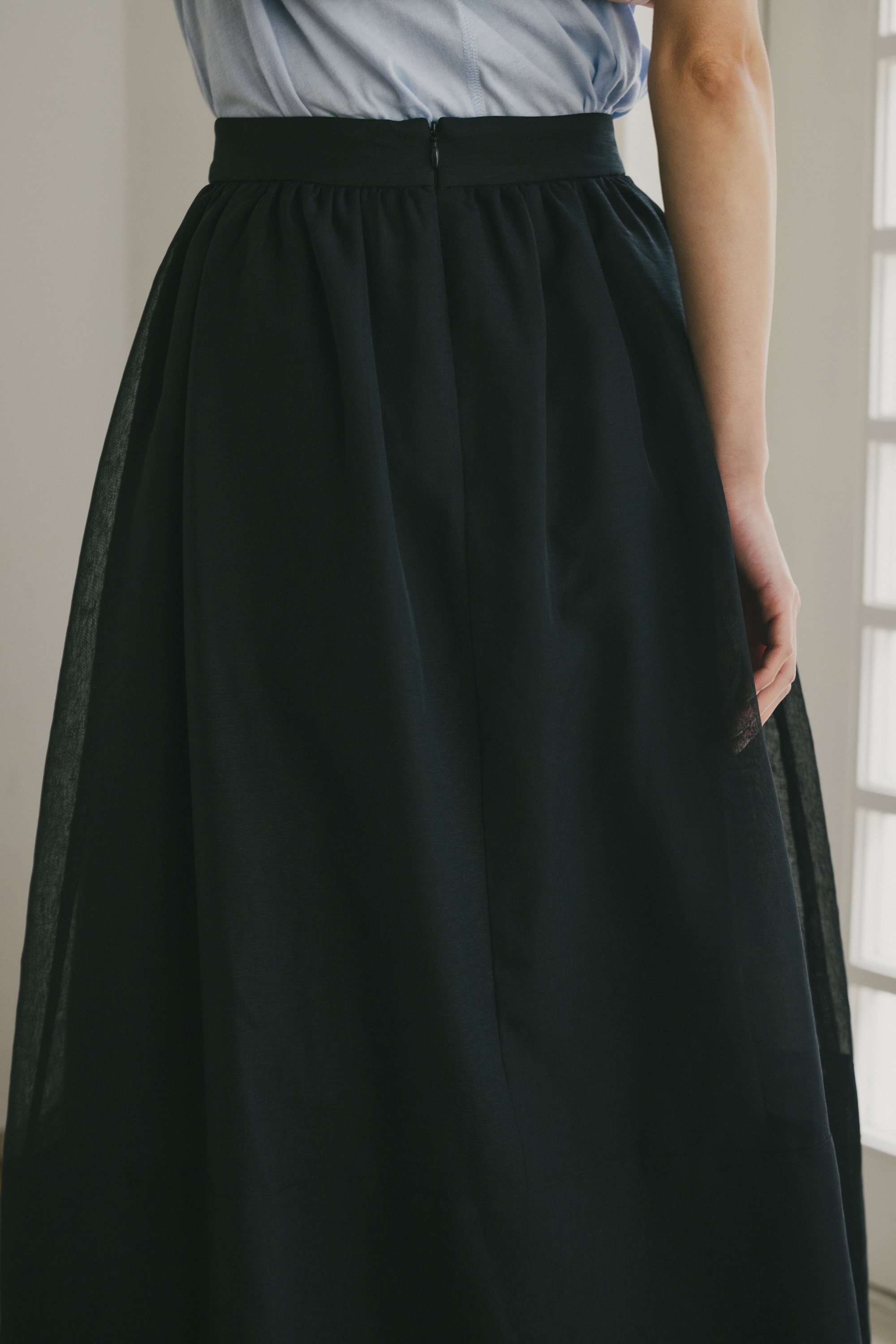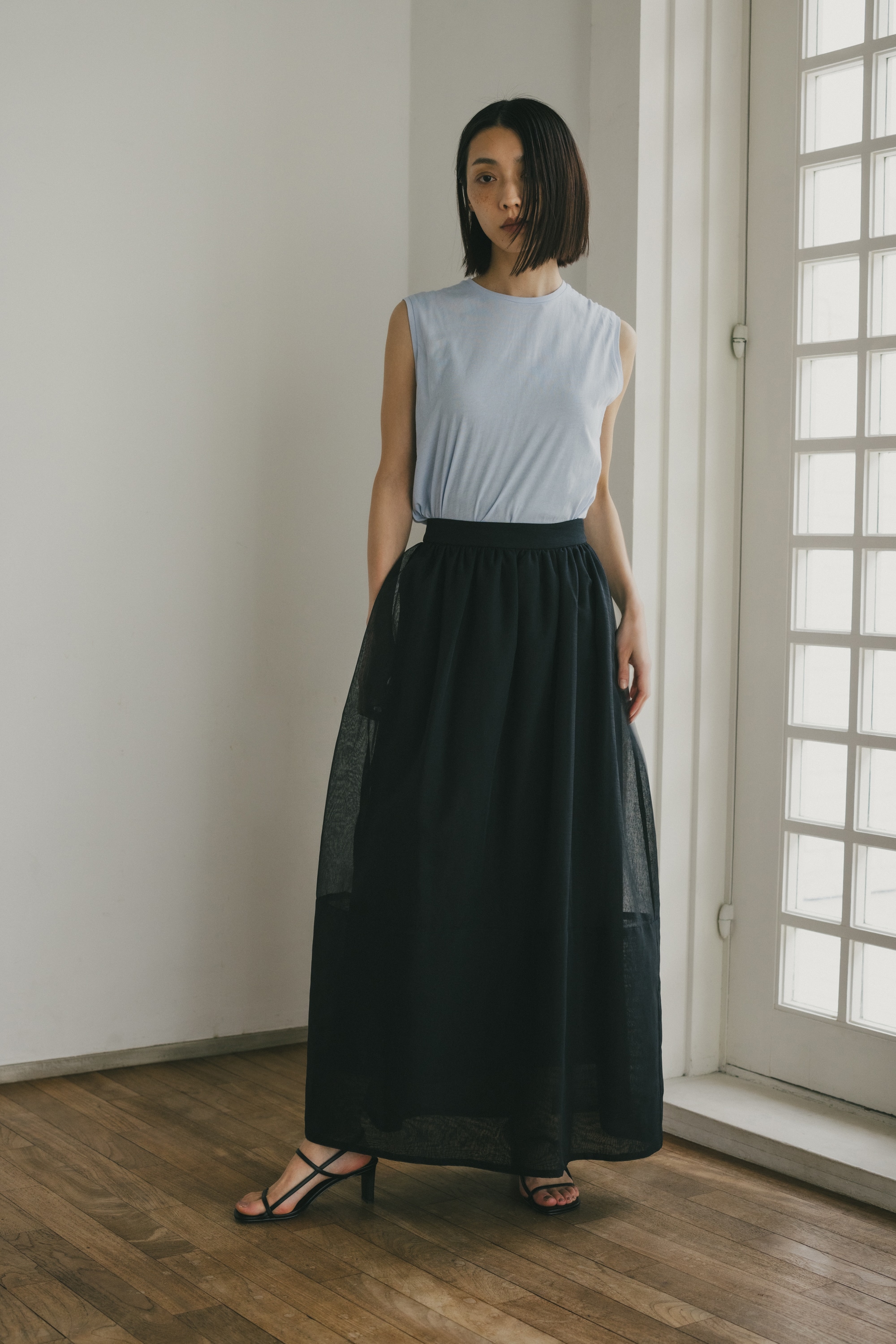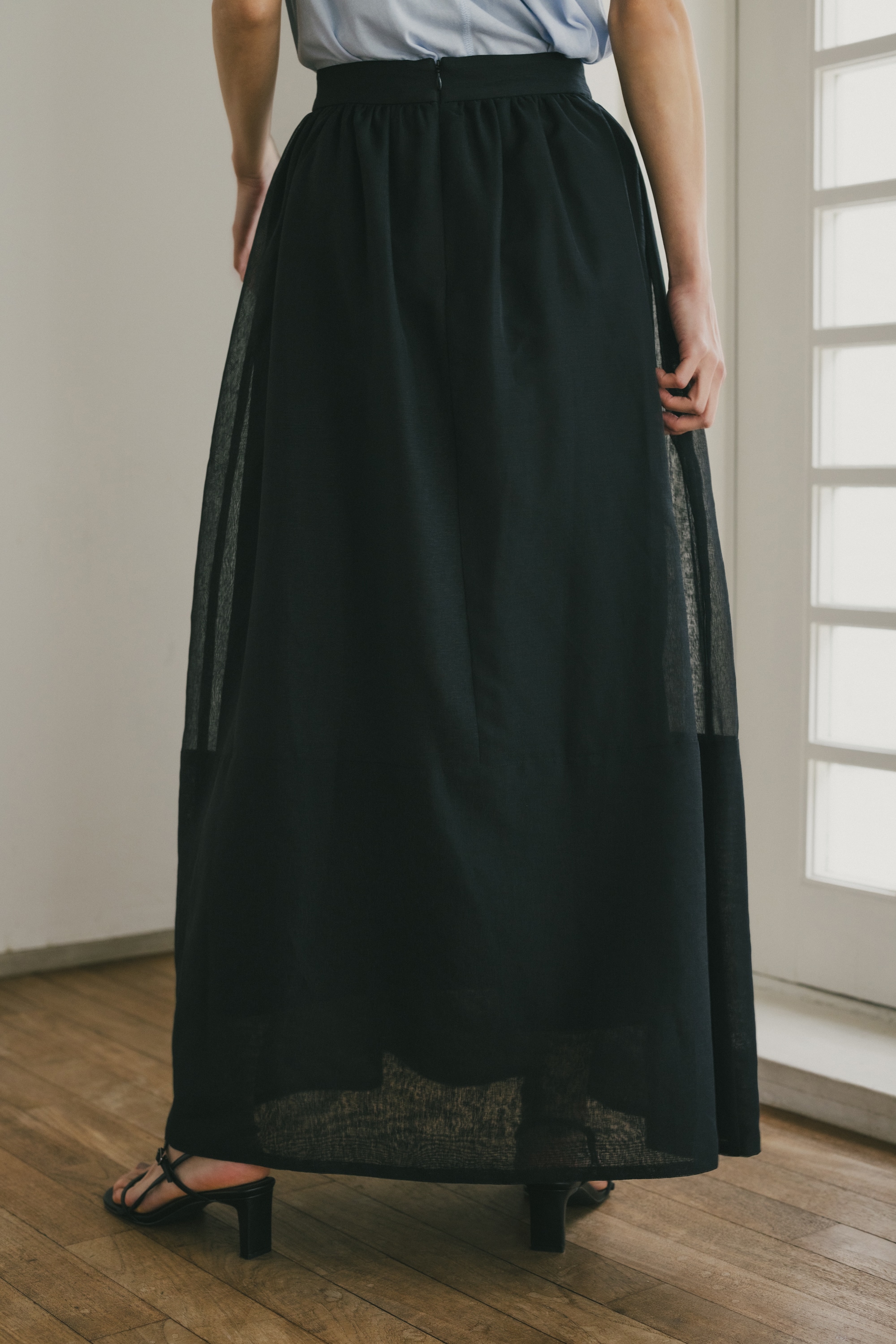 インナースカートの透け感が可愛い天然感のあるシアー素材のランタンスカート。