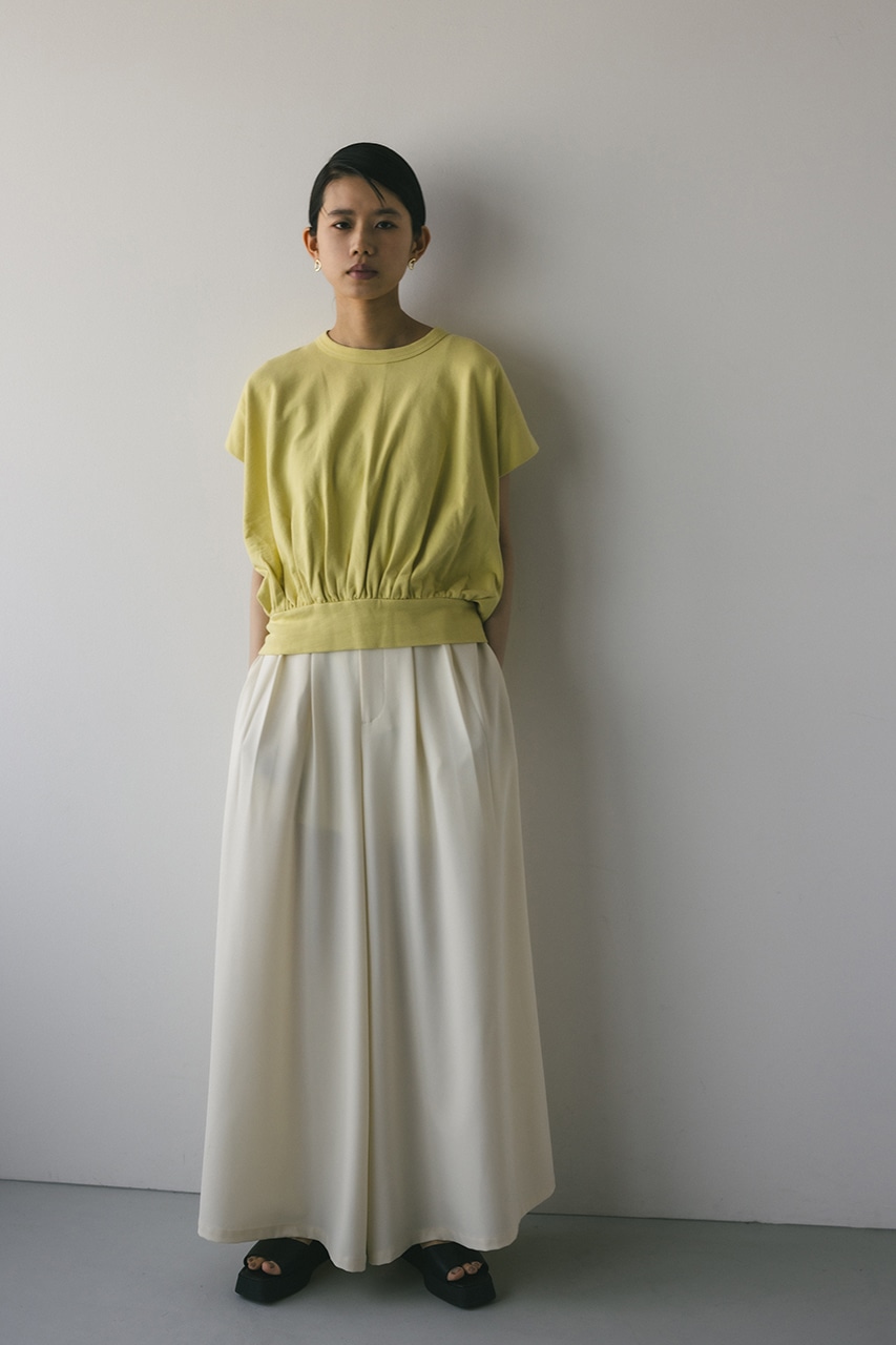 ゆったりとしたシルエットながら後ろに倒した肩はぎデザインで、肩回りをすっきり見せてくれるカットトップ。
