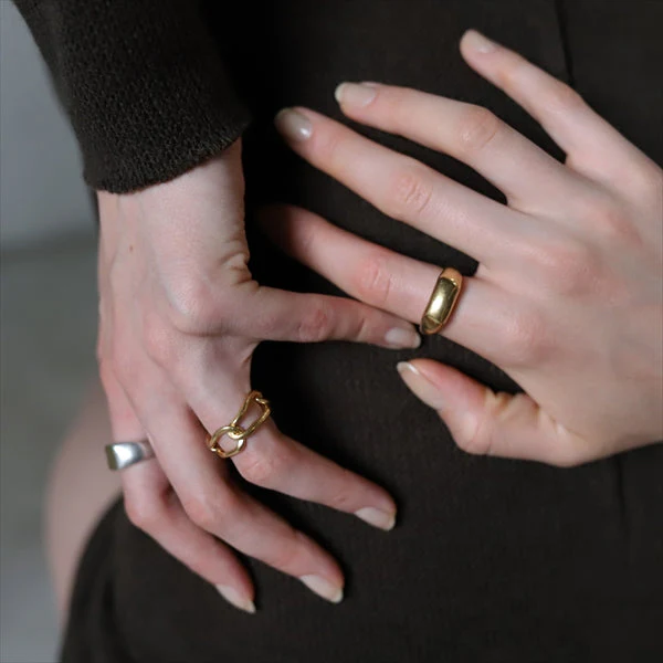 不要な箇所を削ぎ落し、肌当たりの良いチェーンリングを作ることで、スタイリングにスパイスを与えられるようなリングに仕上がりました。