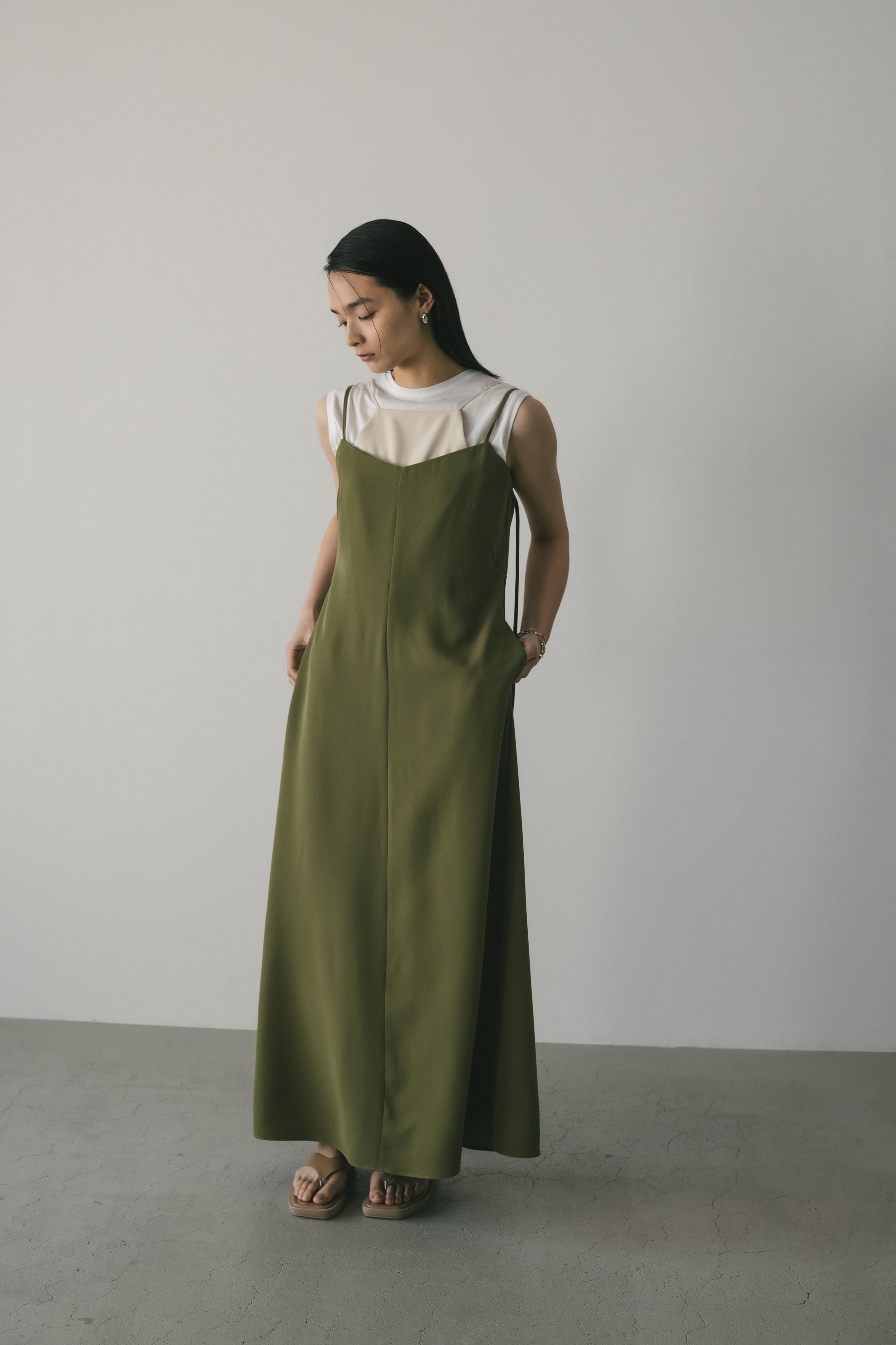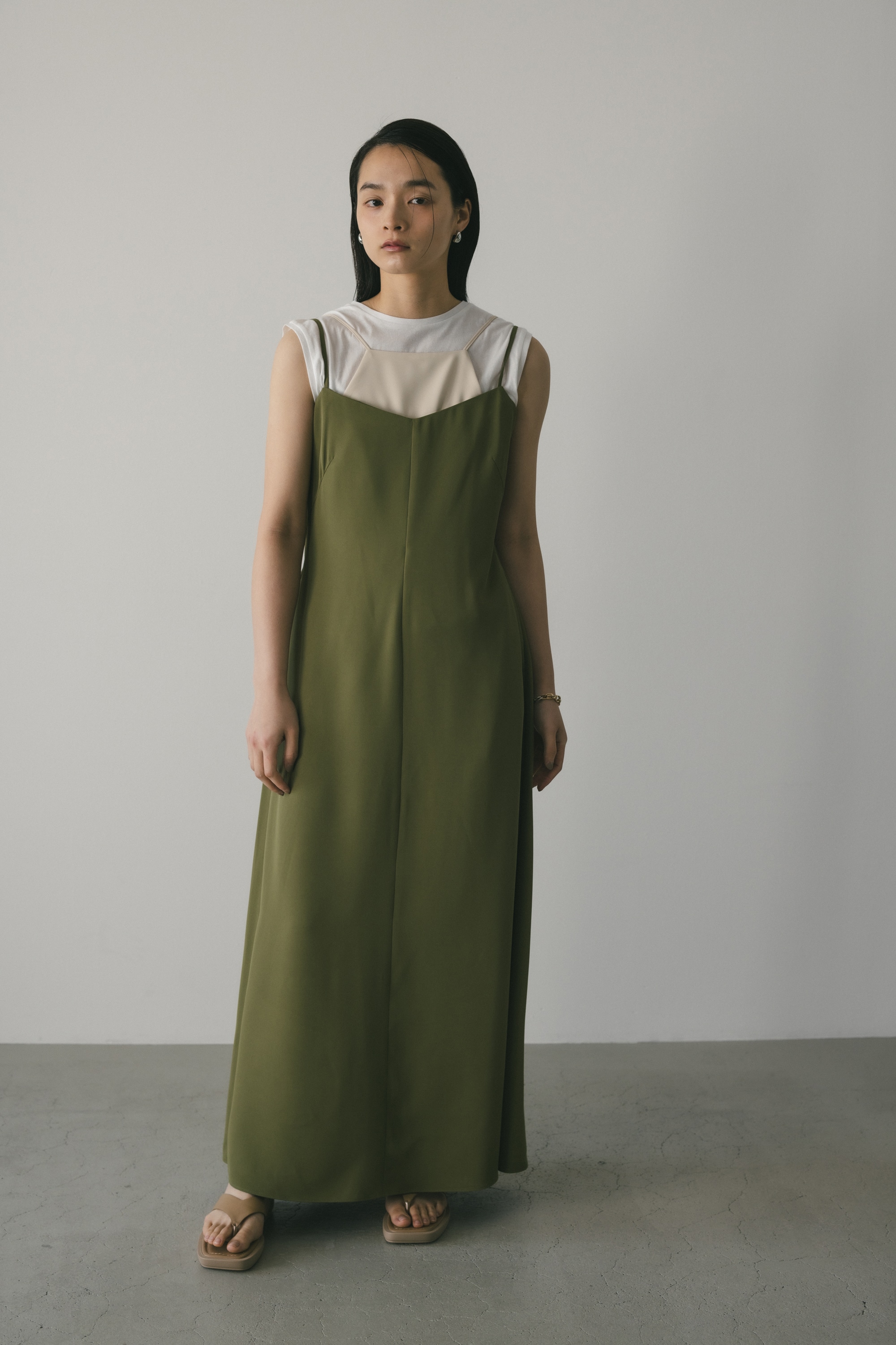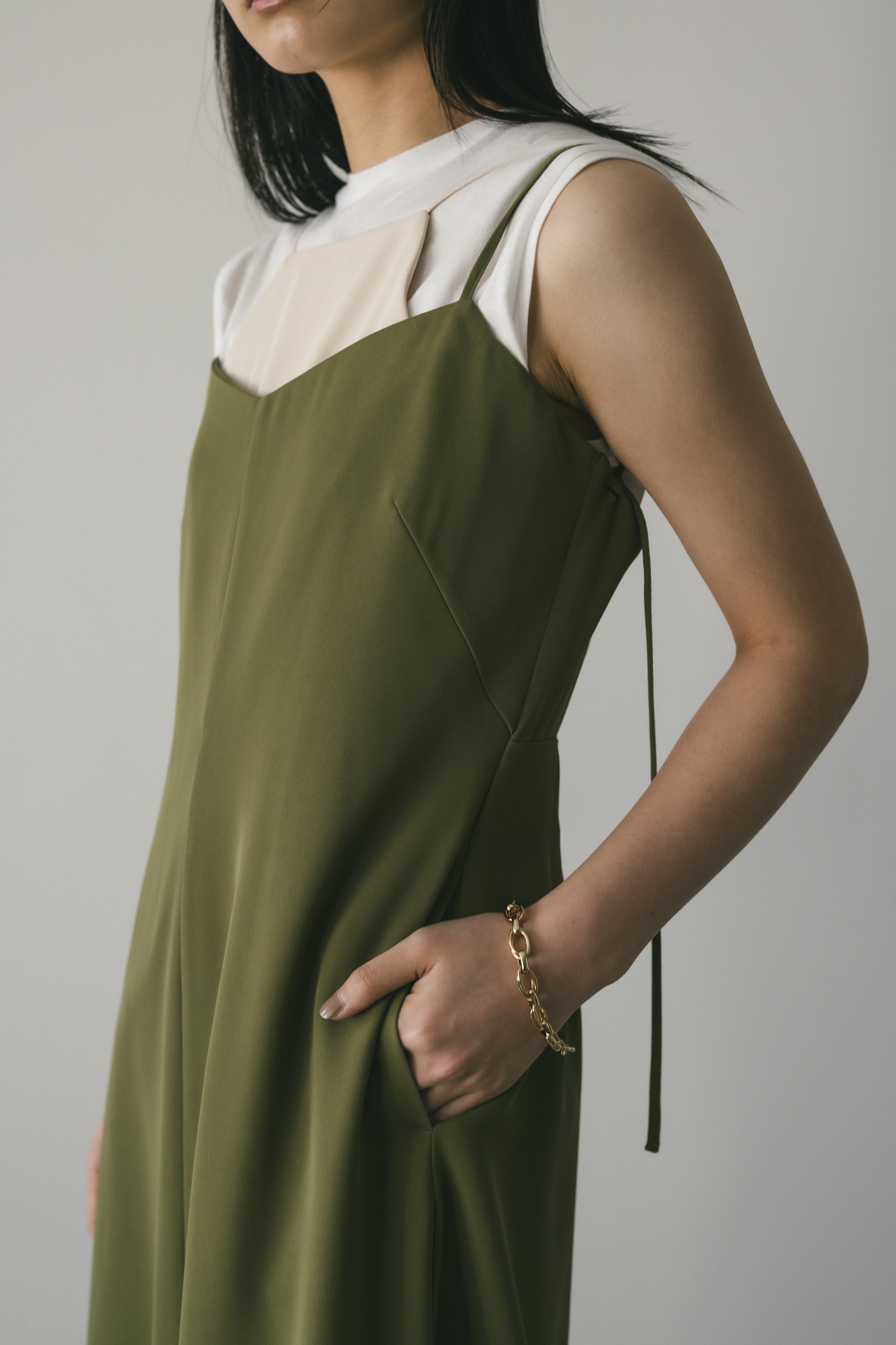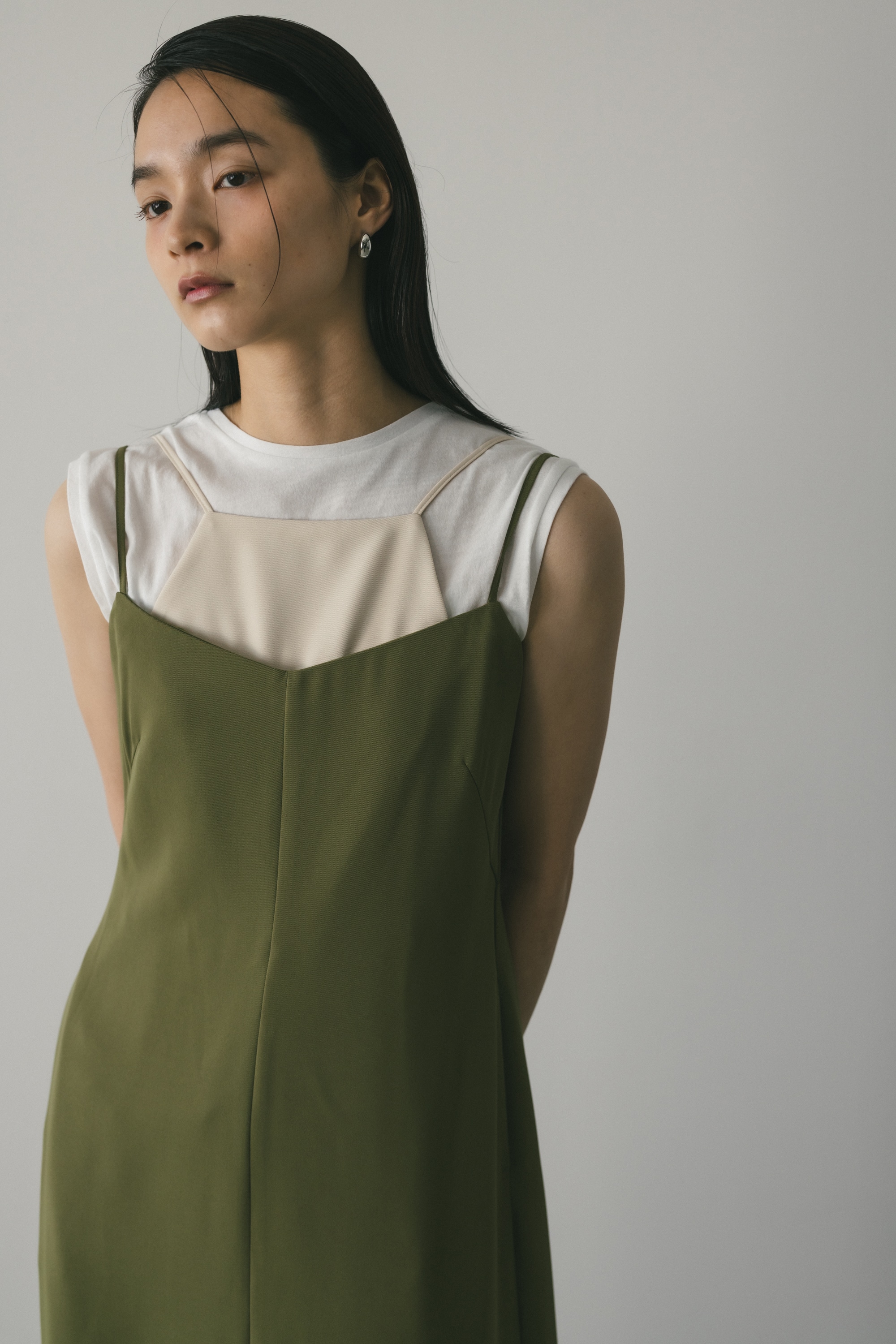 レイヤードしたようなデザインがポイントの配色が特徴的なキャミワンピース。
