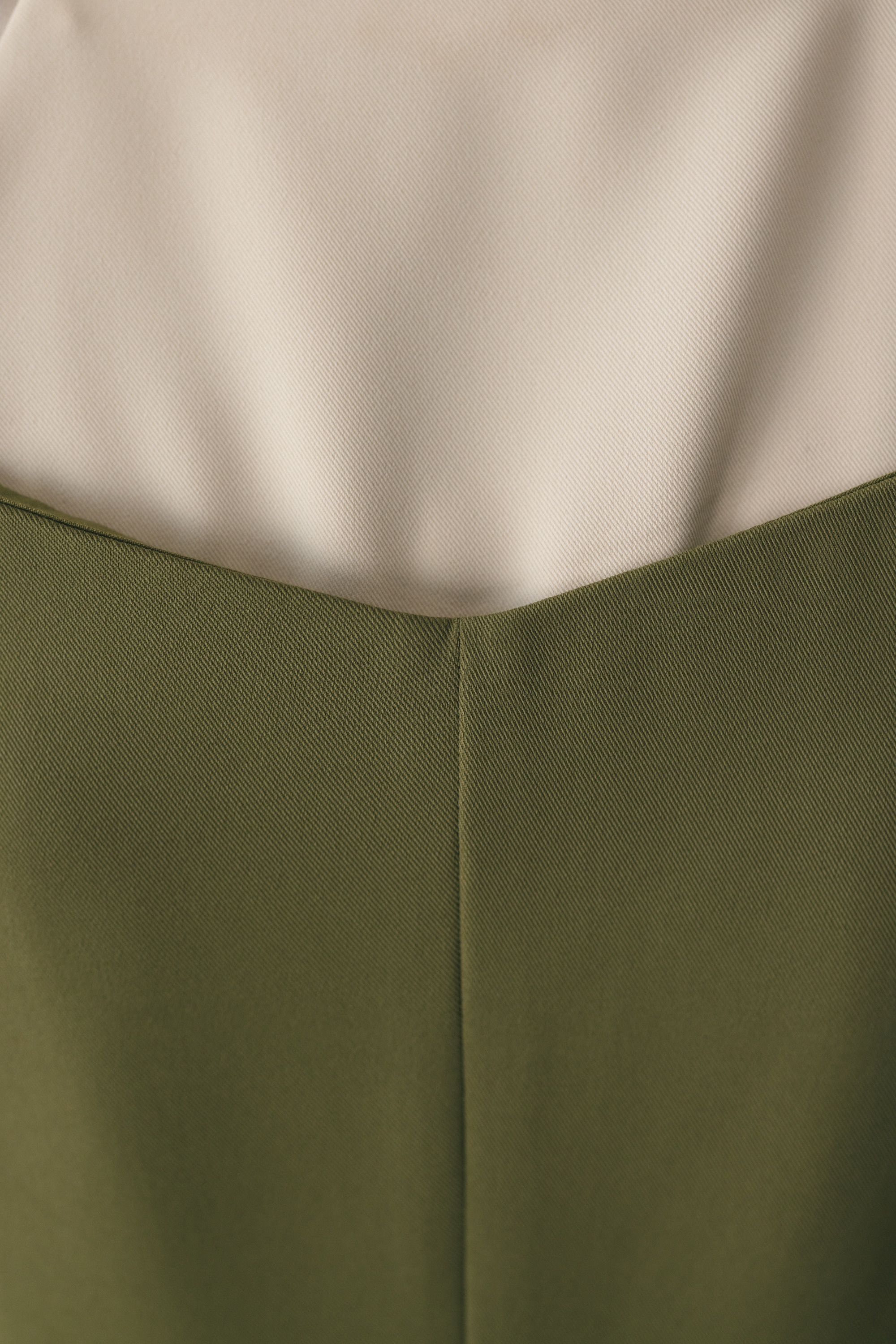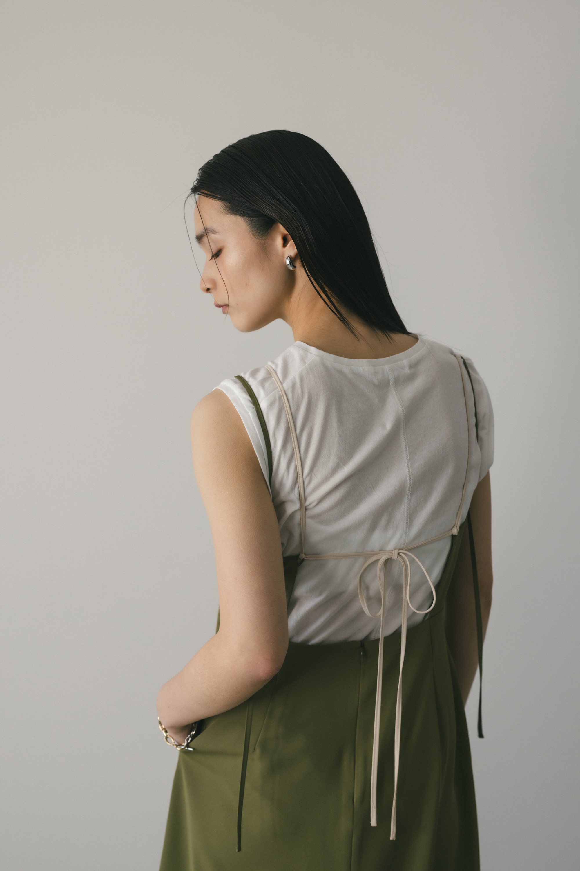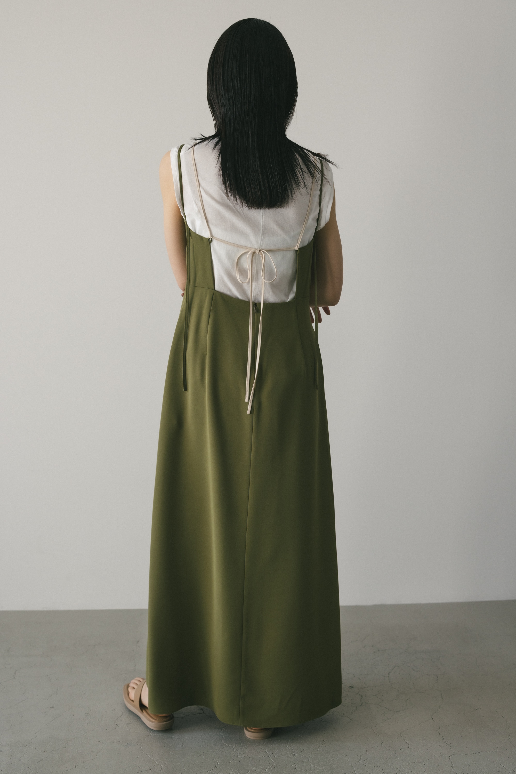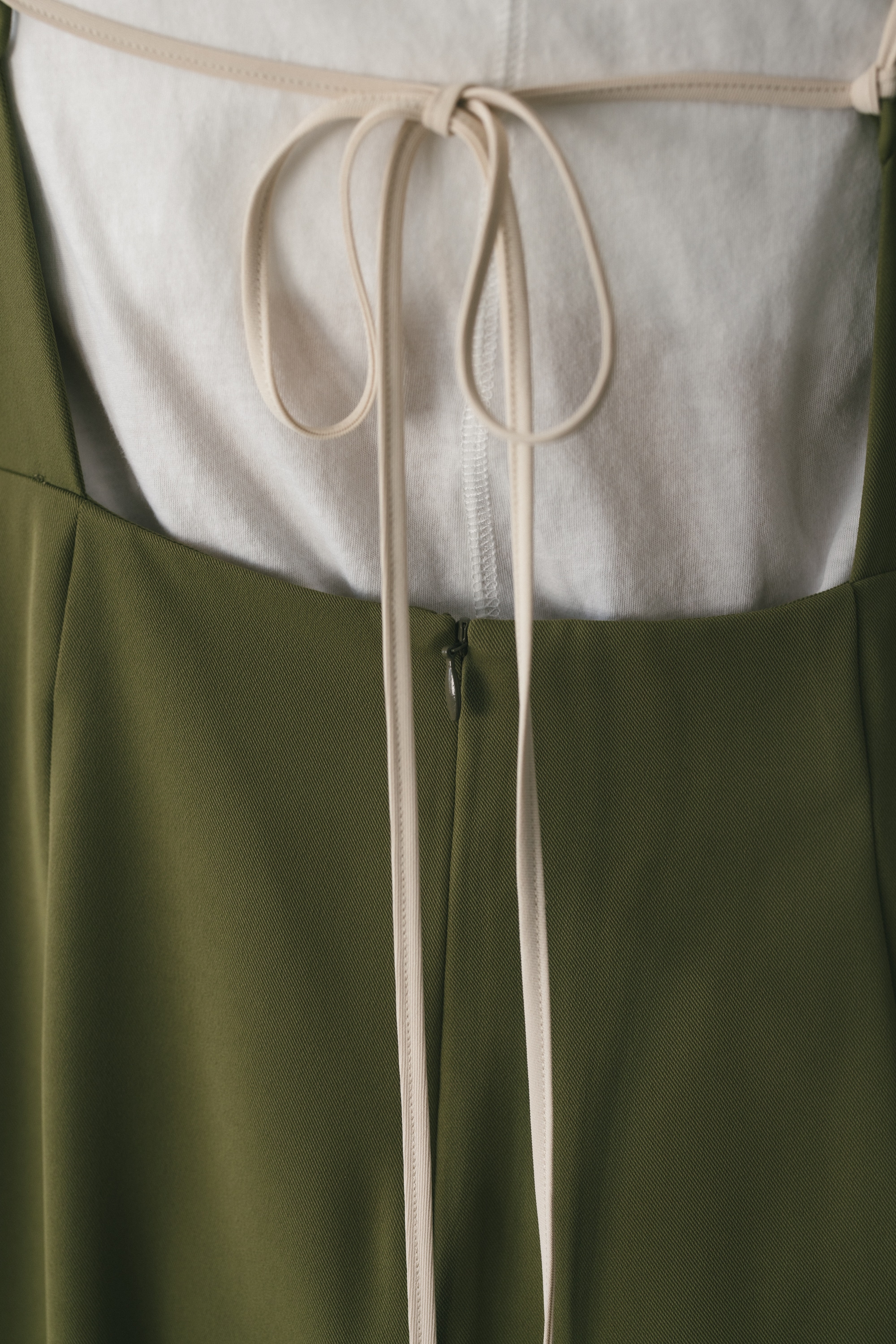 レイヤードしたようなデザインがポイントの配色が特徴的なキャミワンピース。