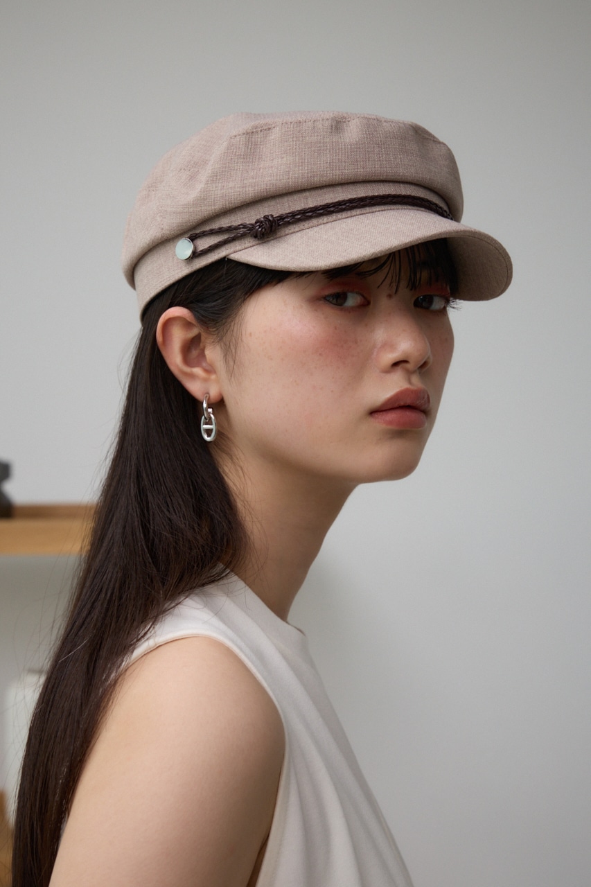 ■商品(デザイン)ポイント : 合皮の編み込みロープのアクセントが効いたキャスケットです。