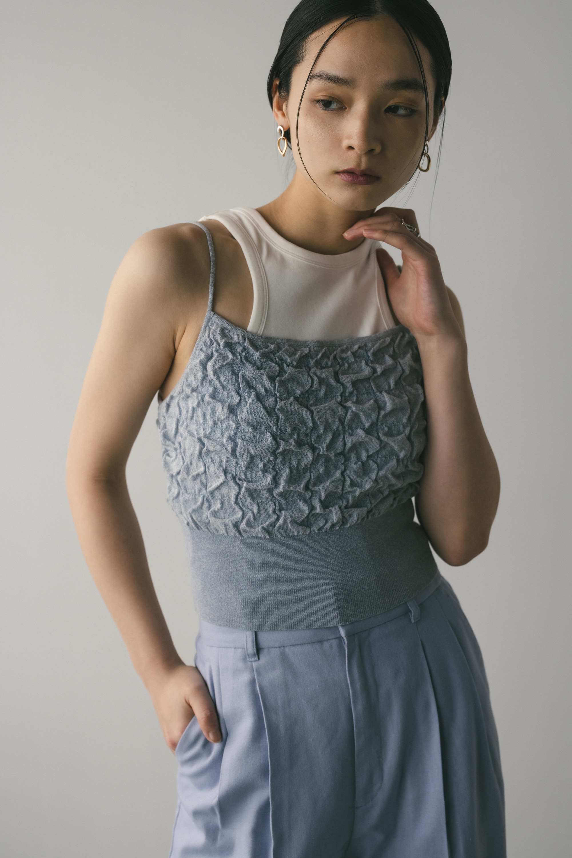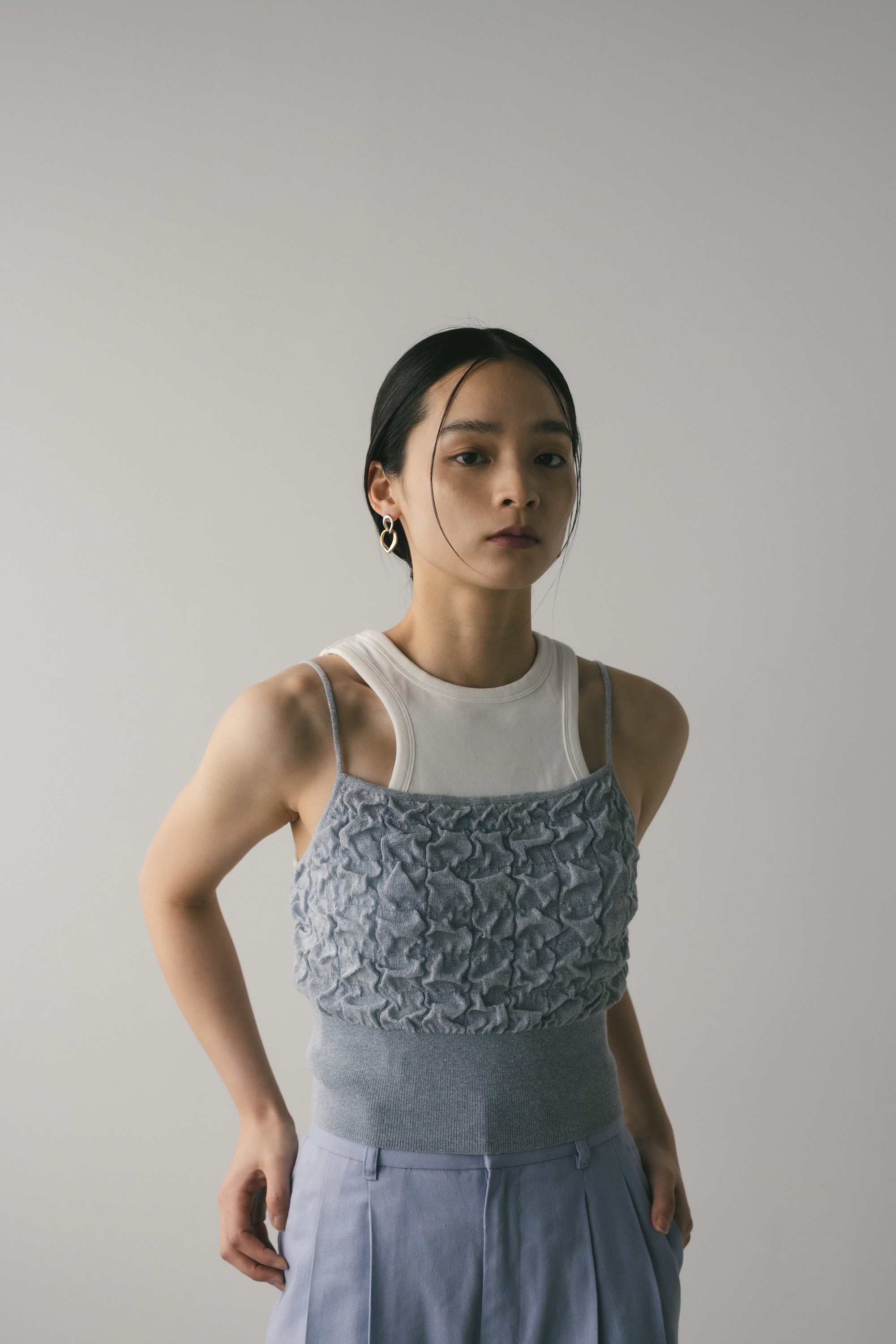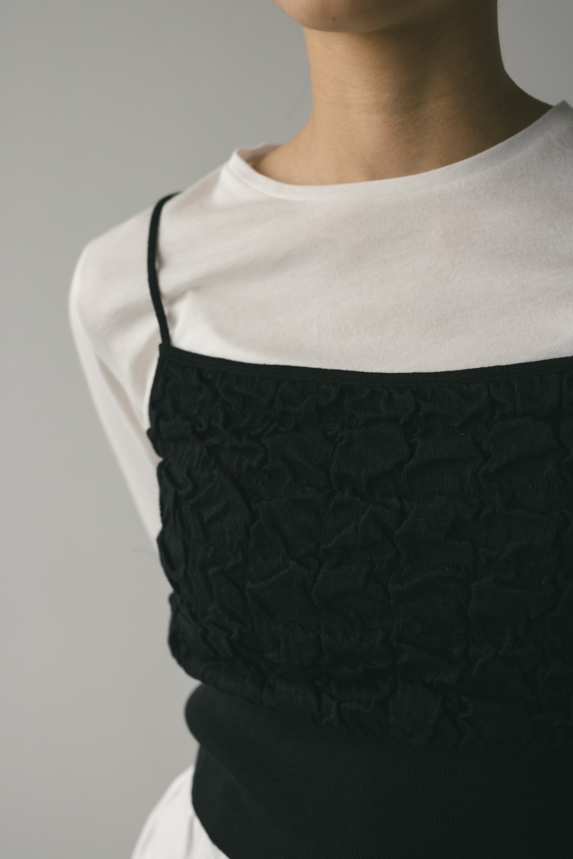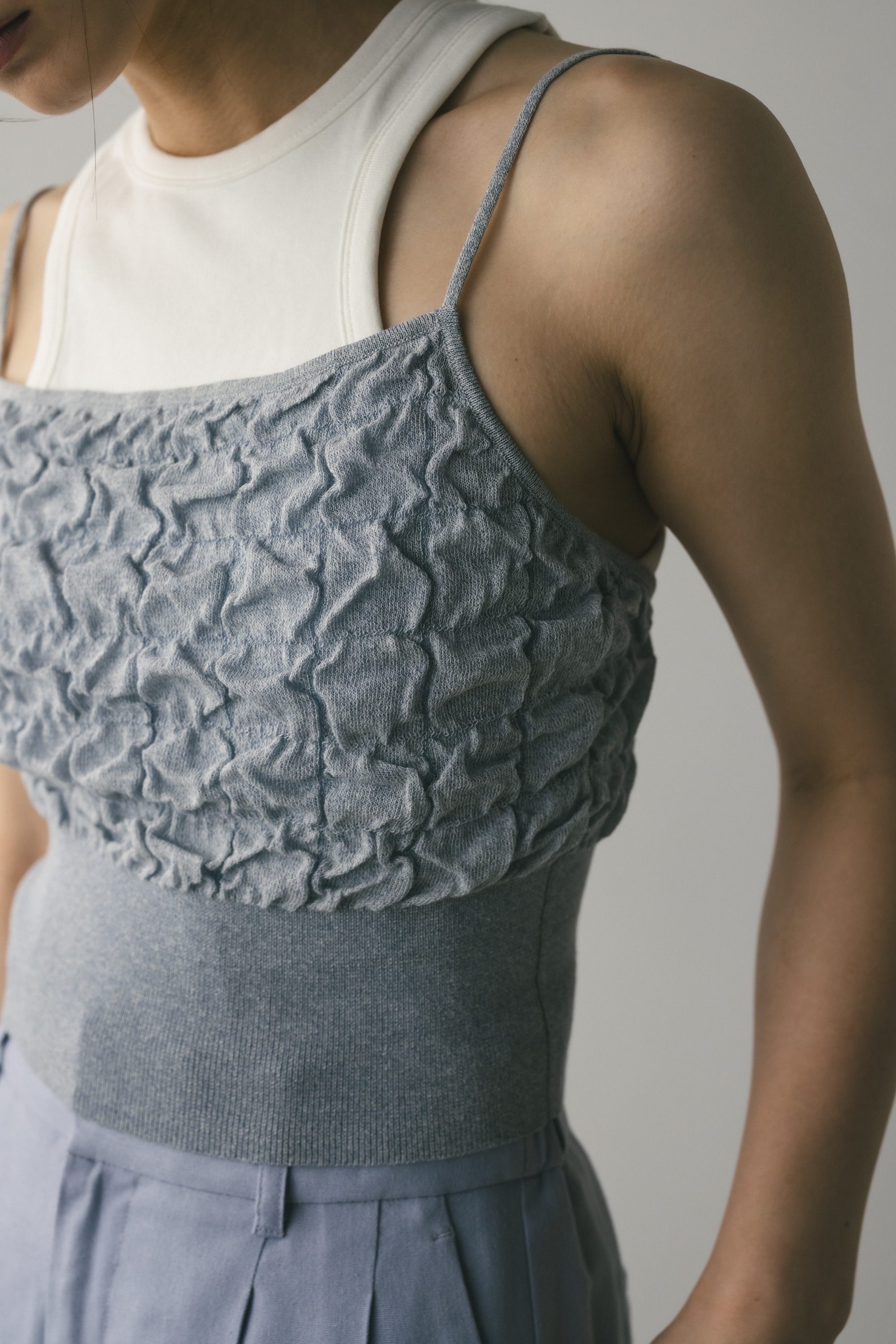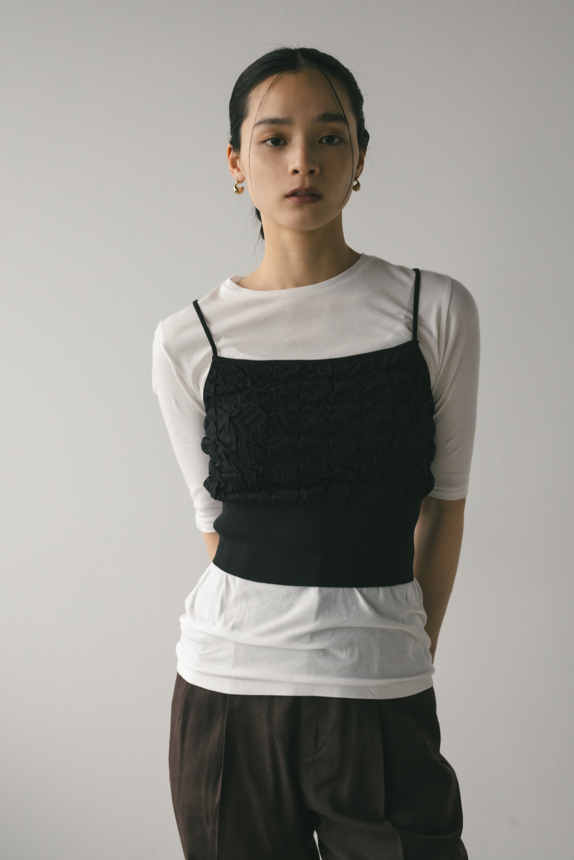 ニットのストレッチで着用しやすく、レイヤードしての着用がおすすめです。