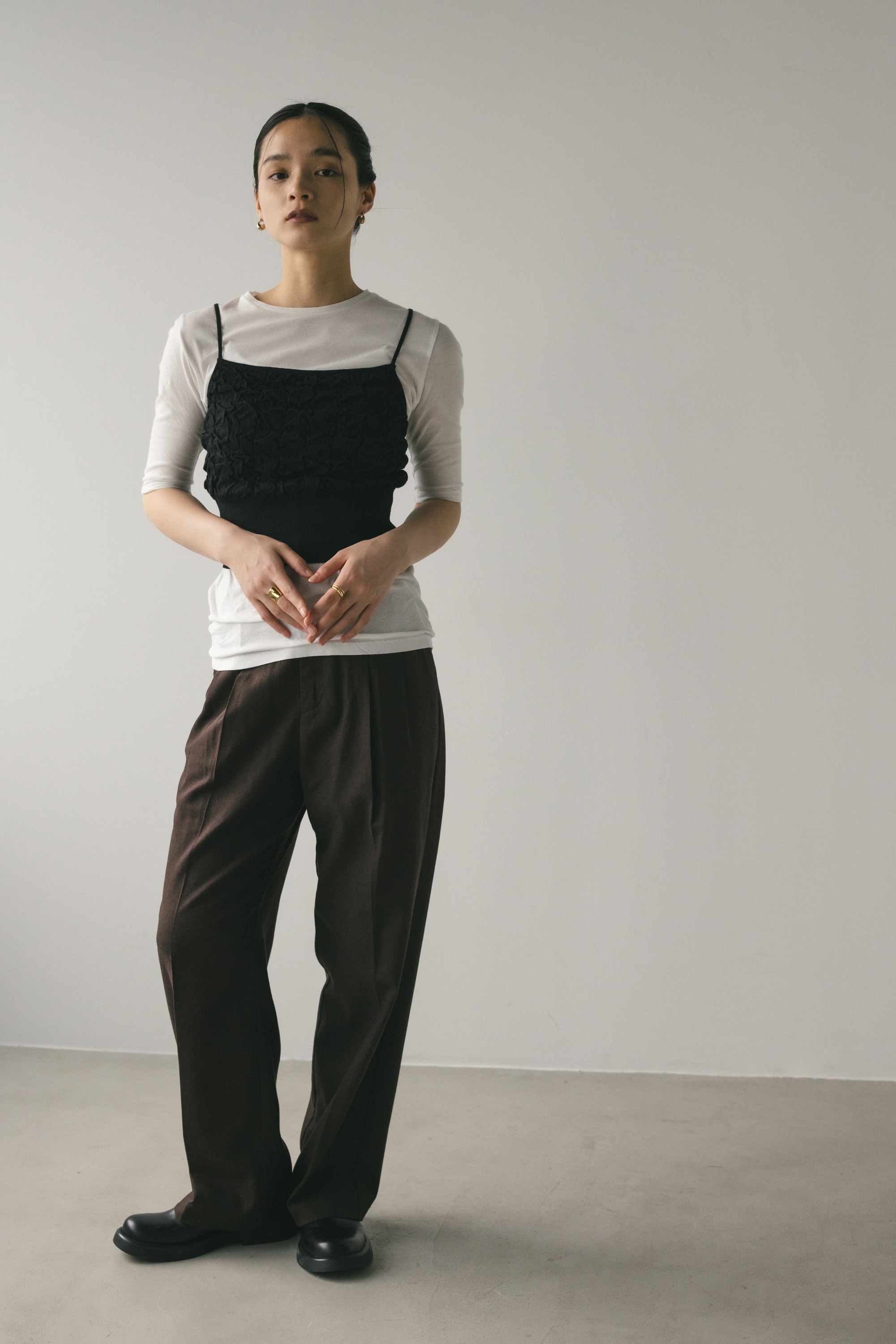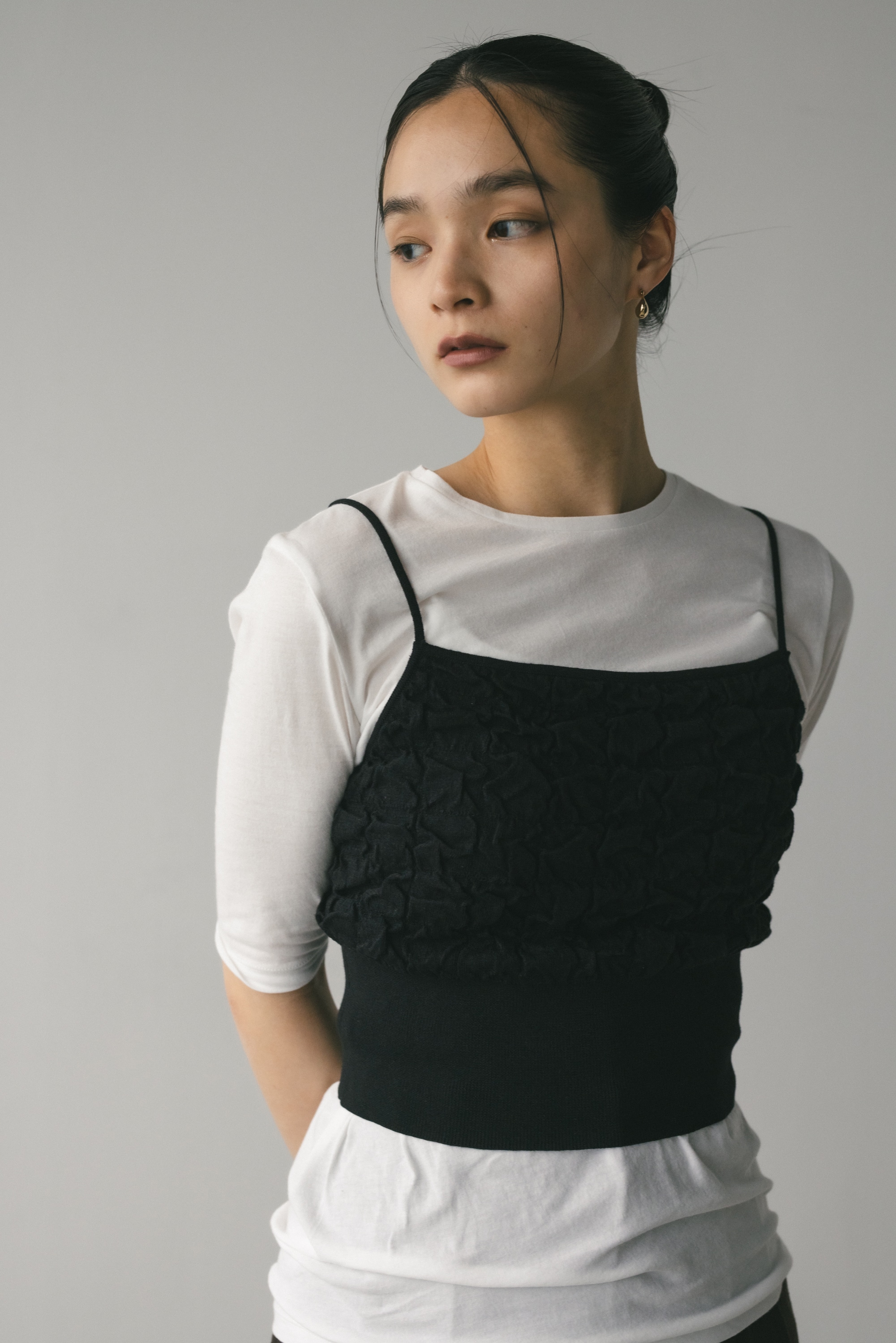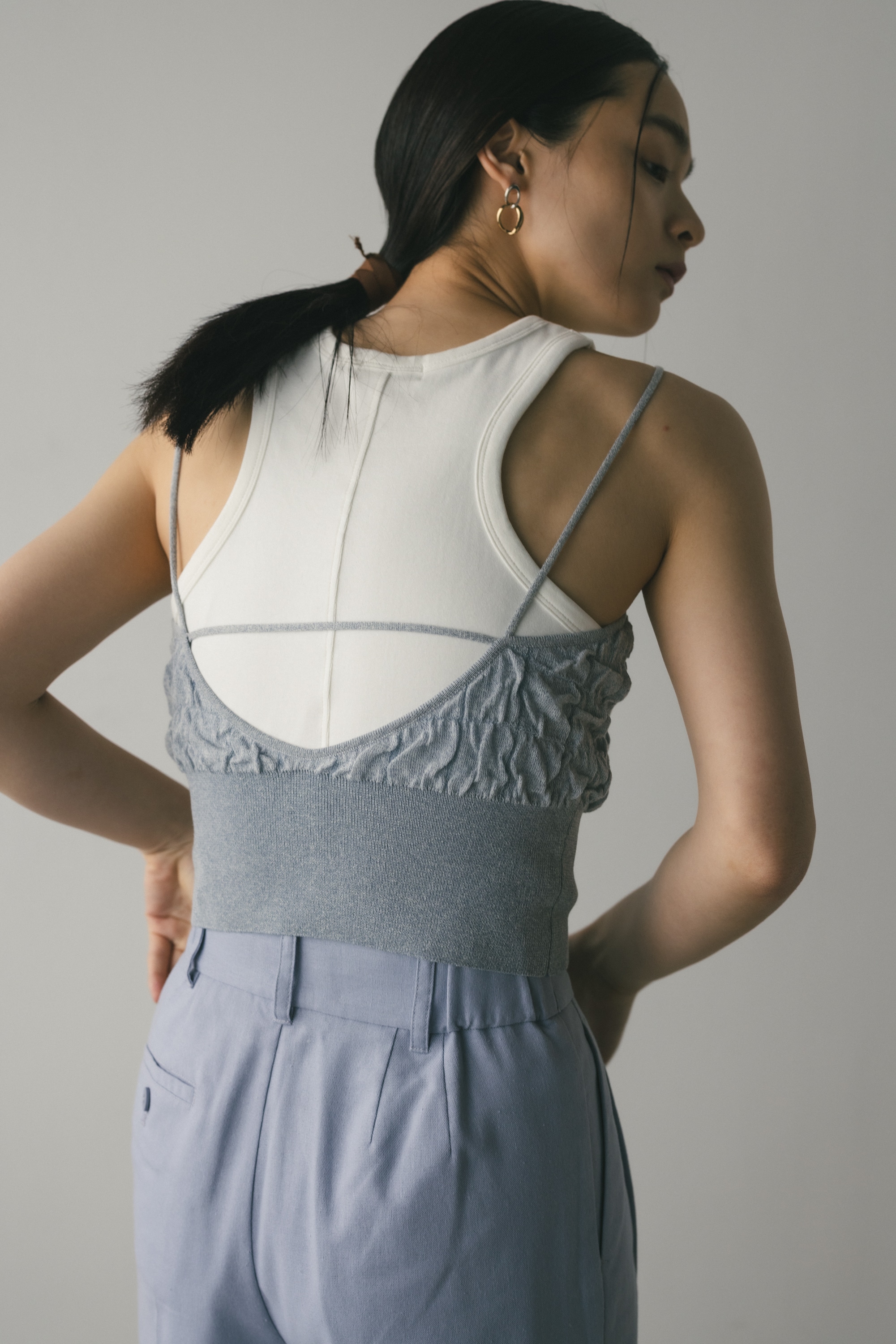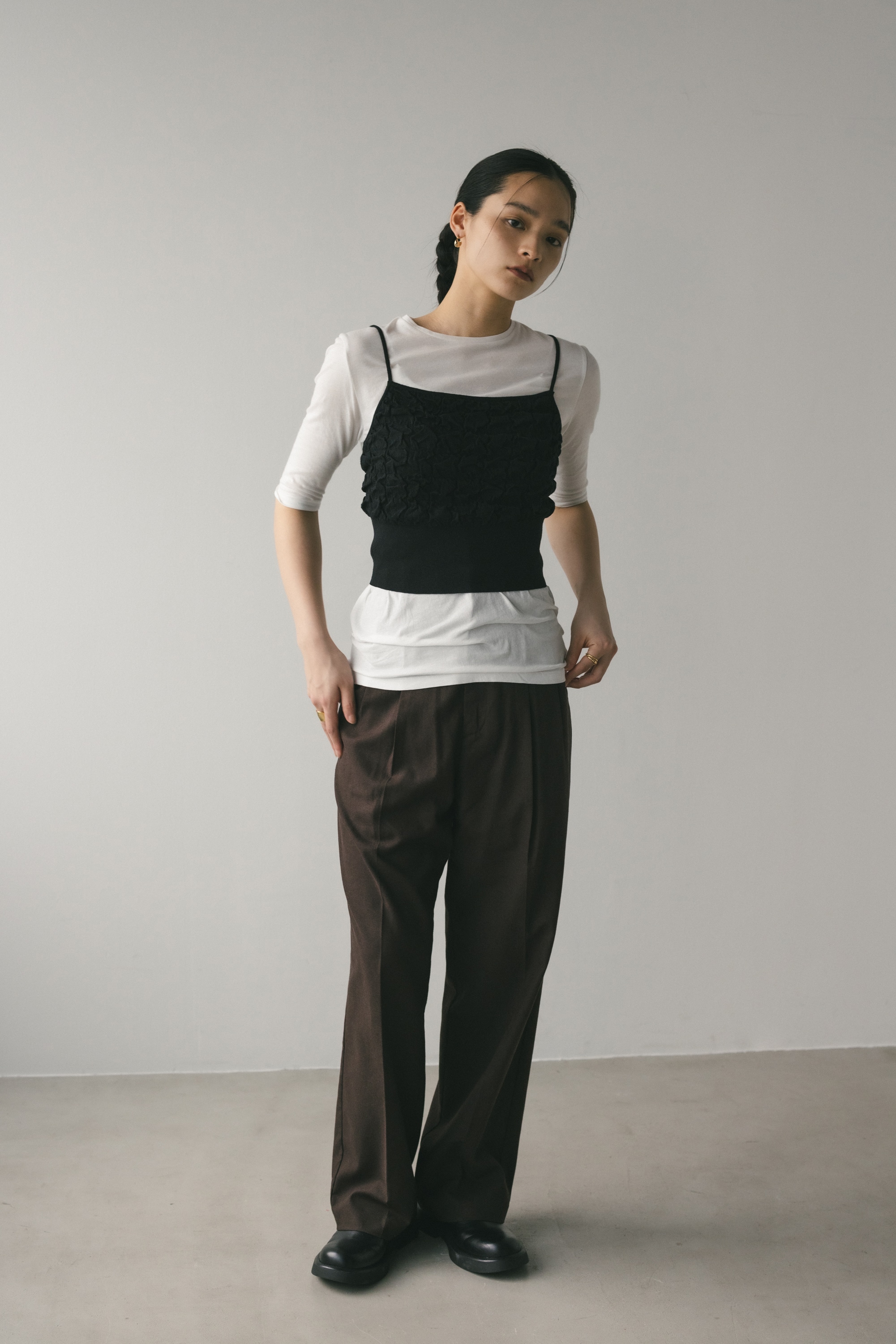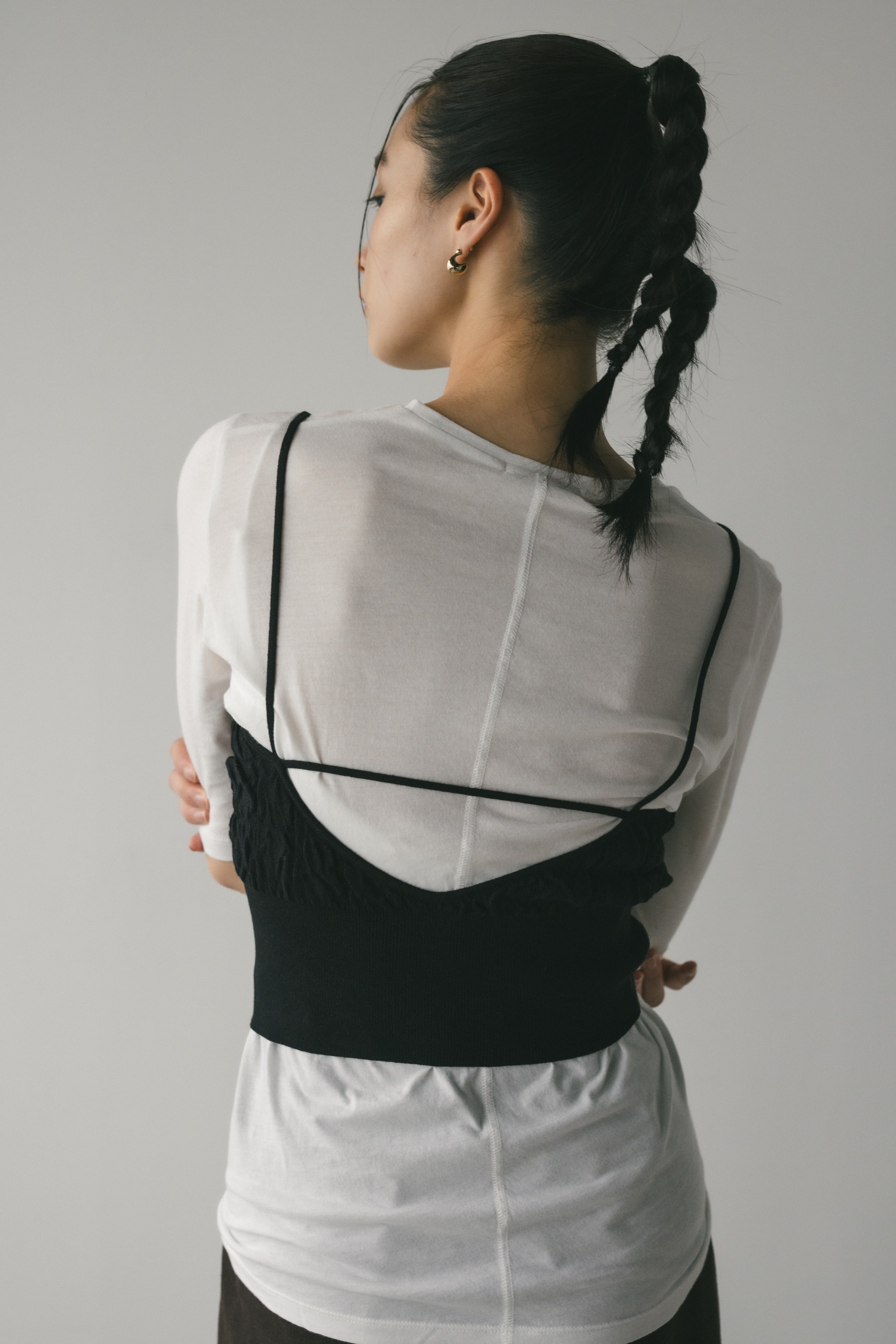 ニットのストレッチで着用しやすく、レイヤードしての着用がおすすめです。