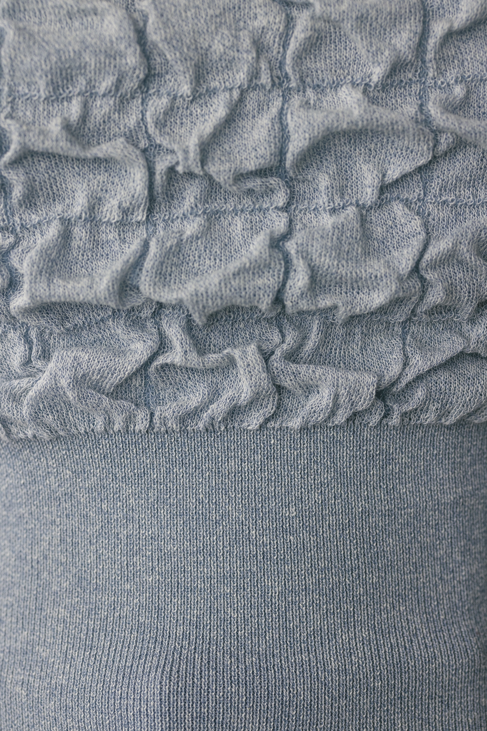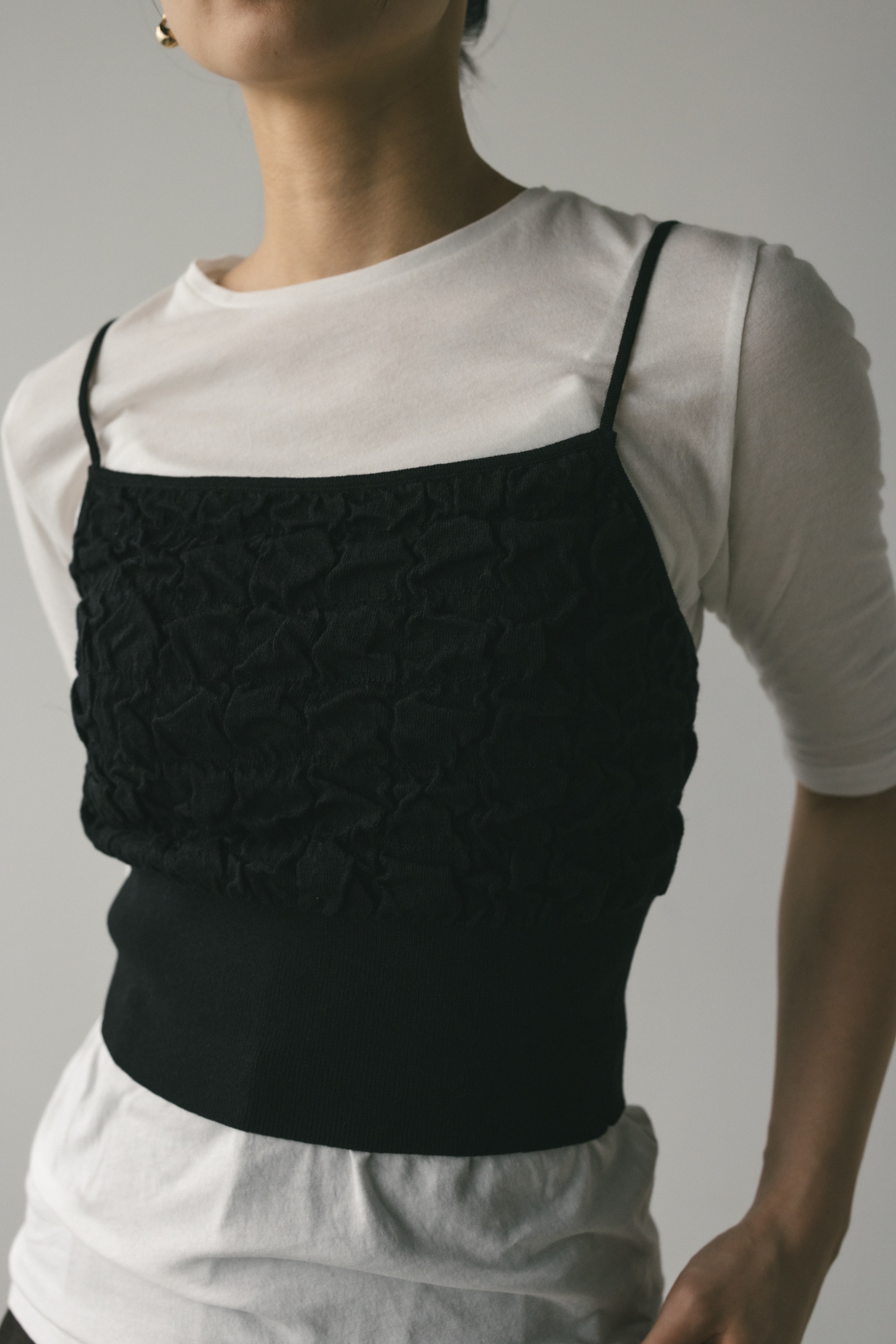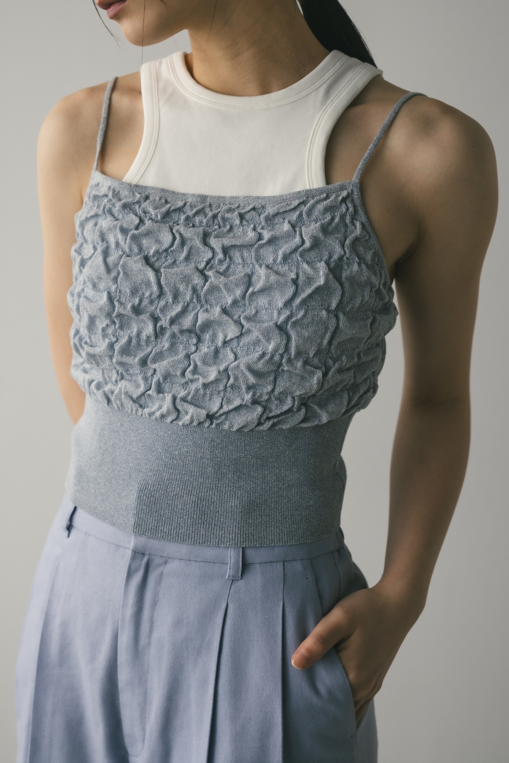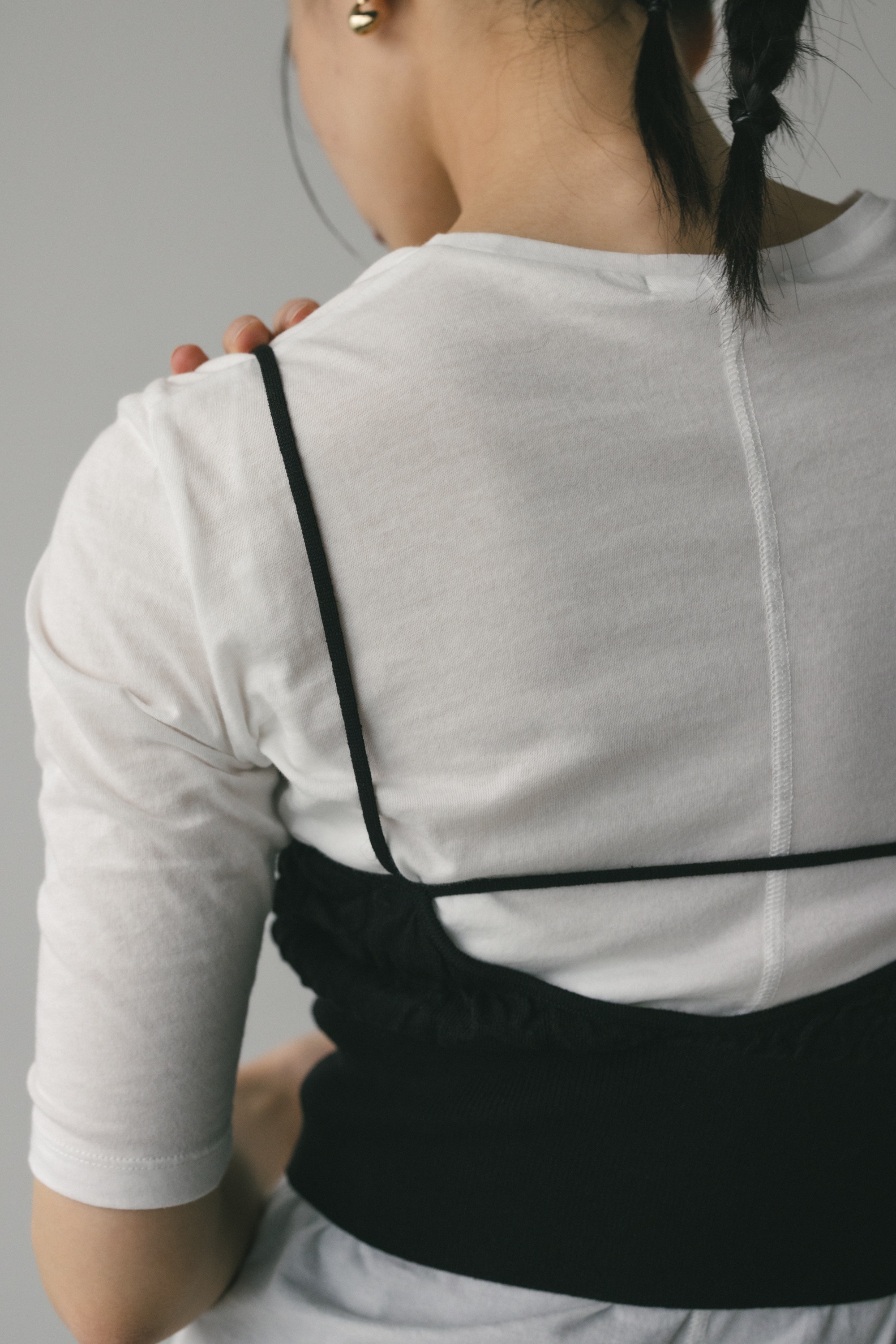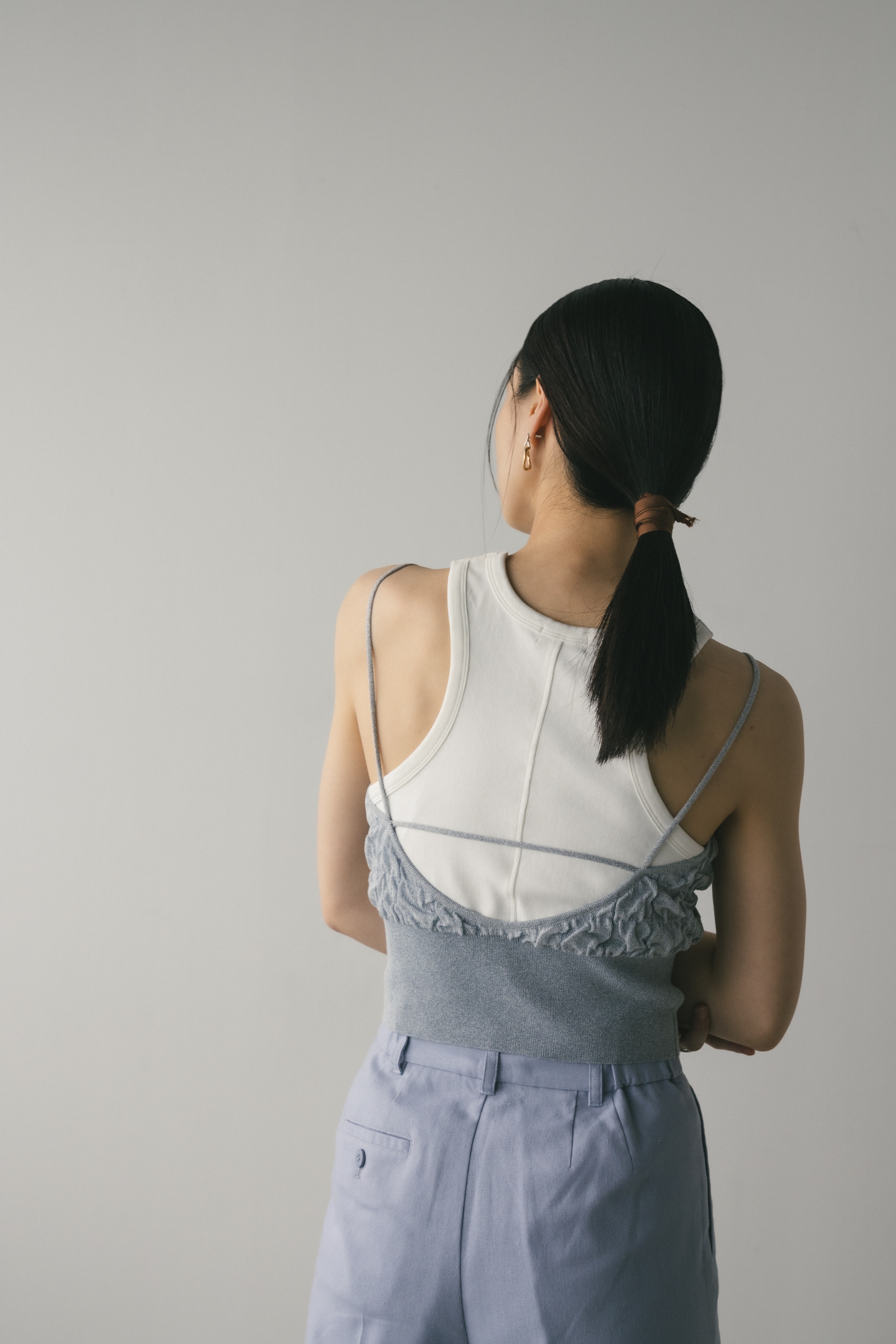 ニットのストレッチで着用しやすく、レイヤードしての着用がおすすめです。