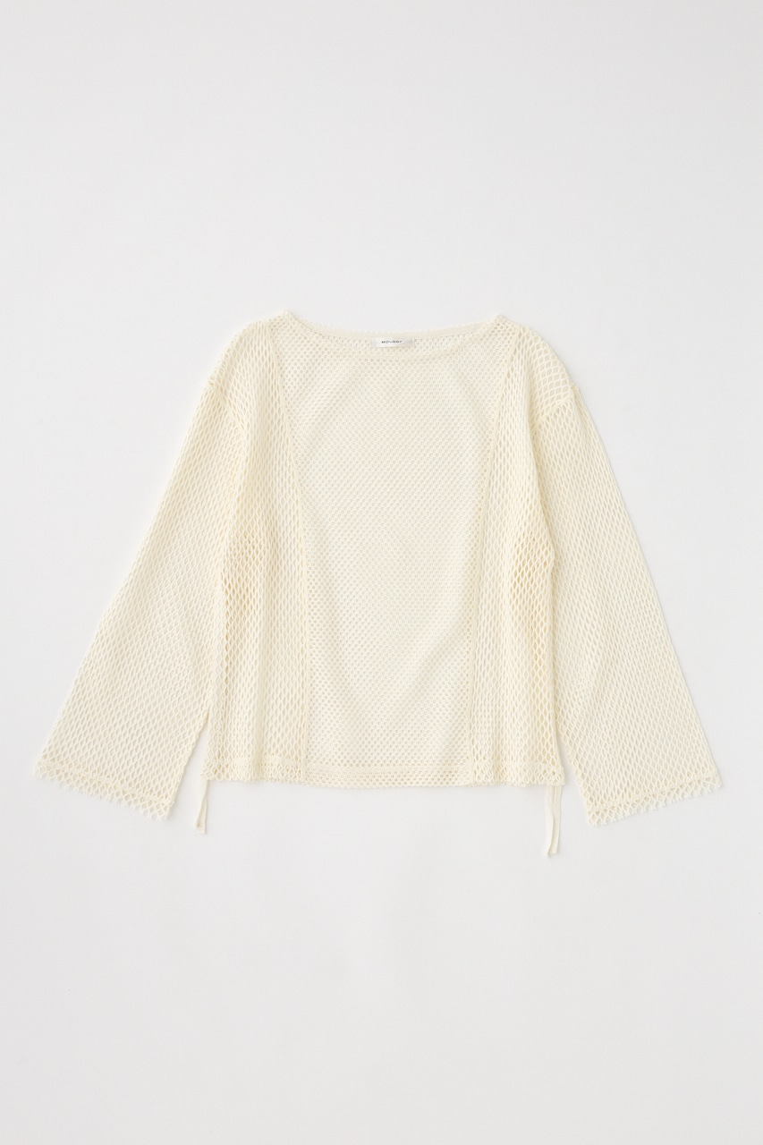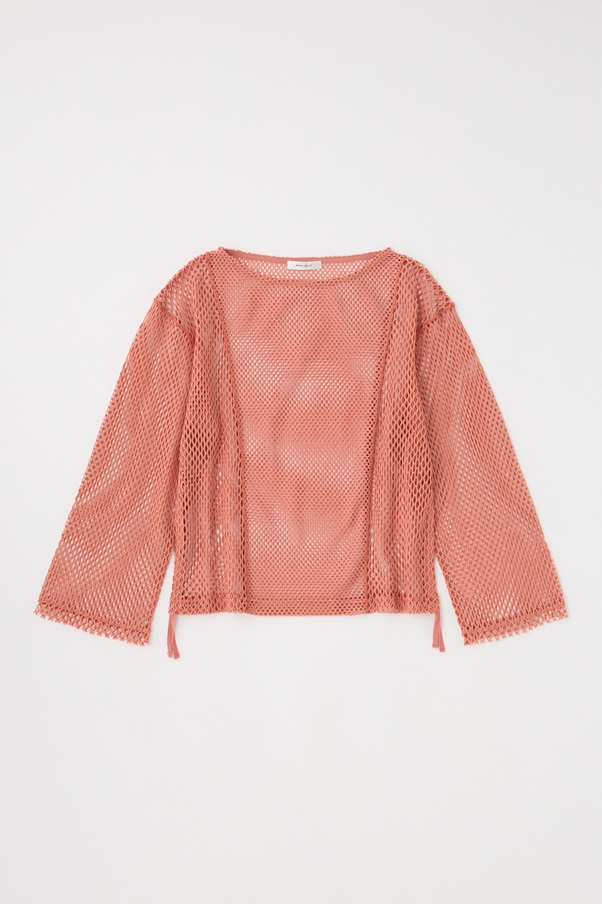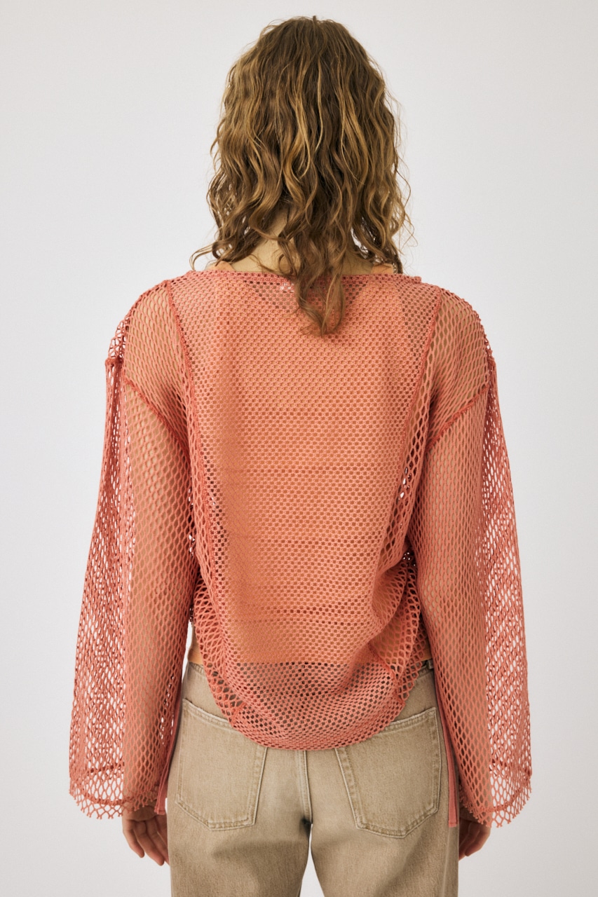 異なるメッシュ生地を組み合わせたレイヤードスタイルを楽しめるトップス。