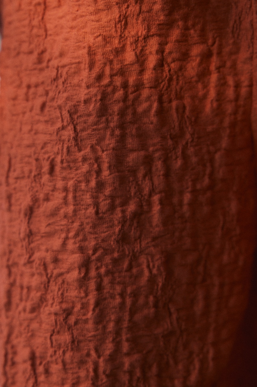 ポリウレタンの弾性と縮みを活かした特殊なシワ感が特長です。