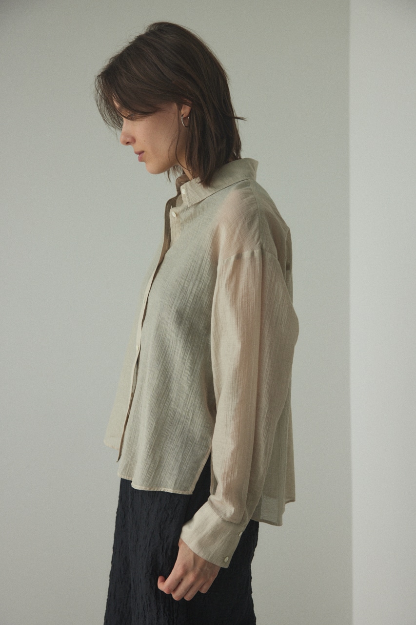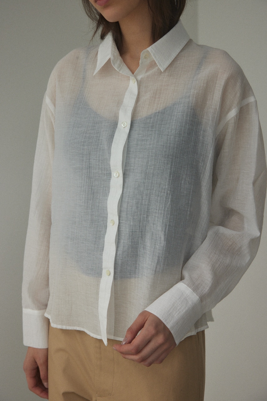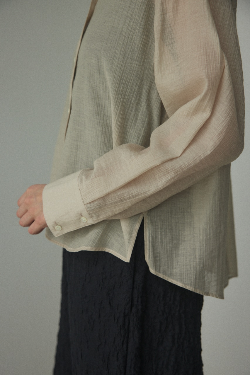ややしわ感もあり、軽やかで透け感のあるシャツ。