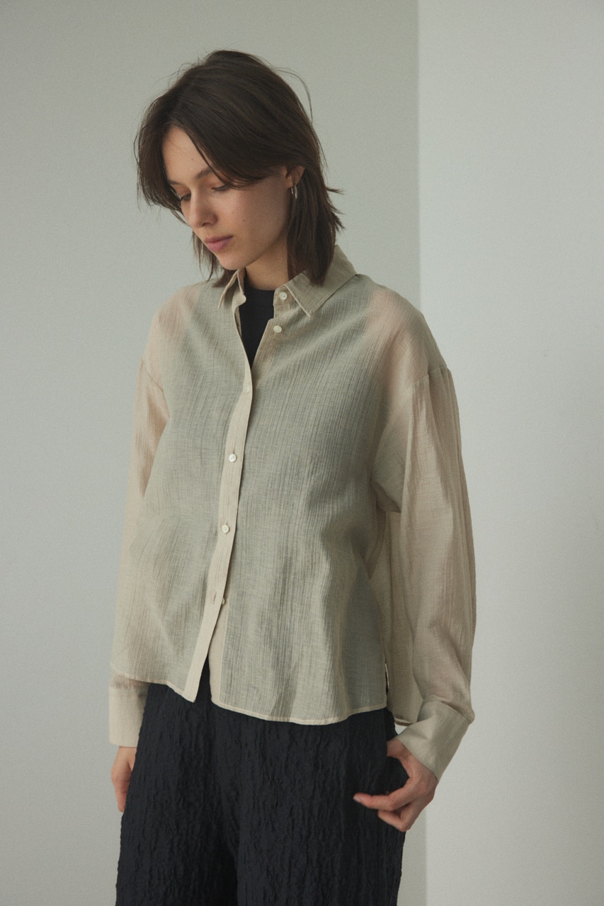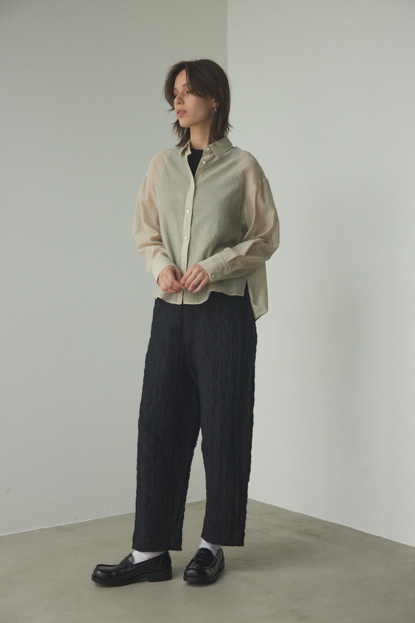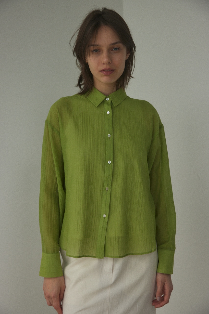 ややしわ感もあり、軽やかで透け感のあるシャツ。