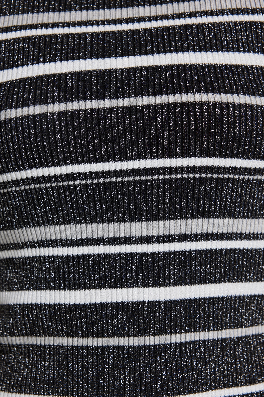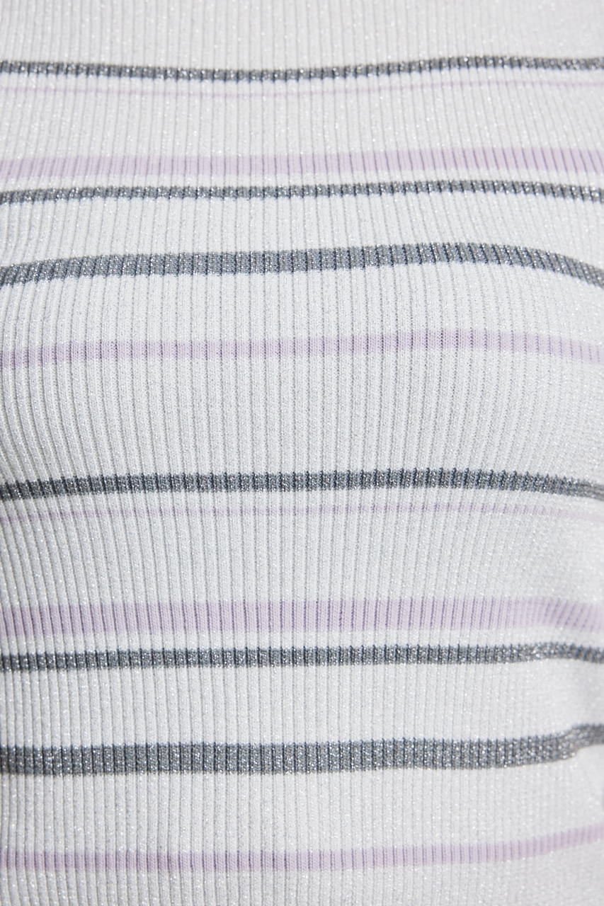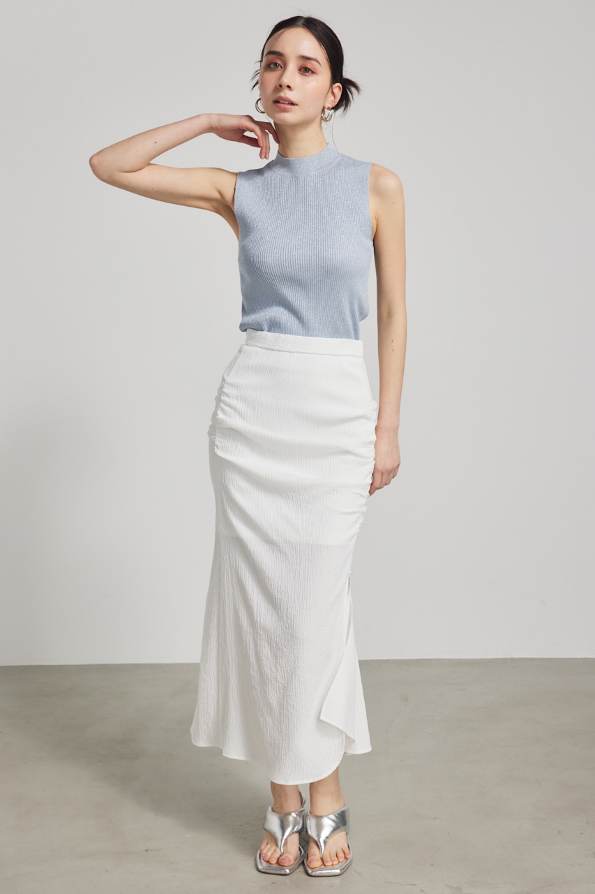 トレンド素材のシャイニー素材をシンプルで着まわしの利くknitTOPSでコンパクトに。