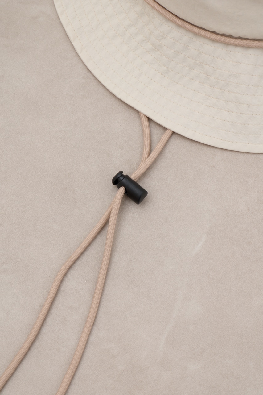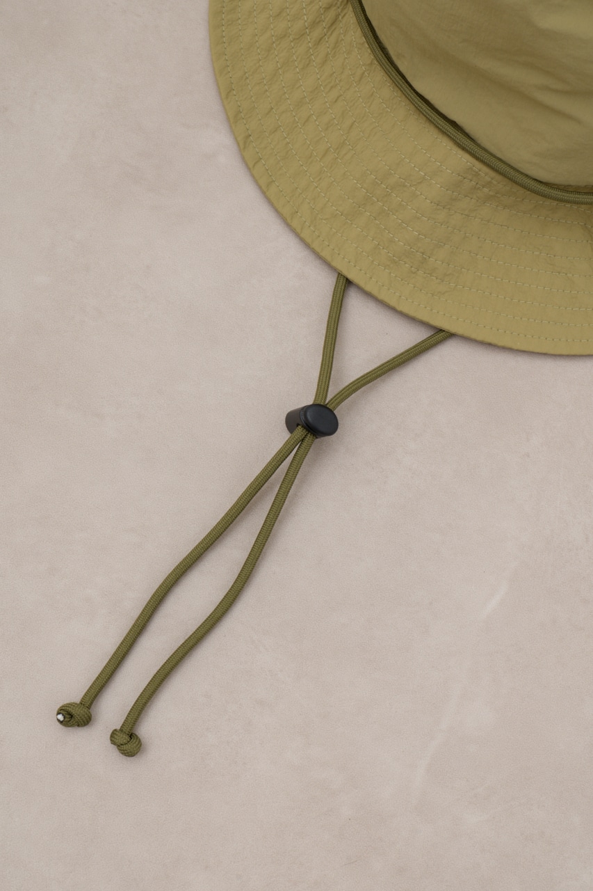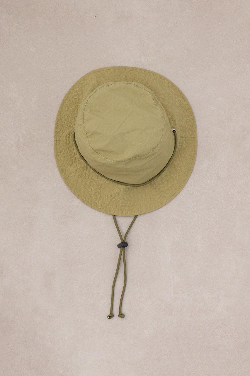■商品(デザイン)ポイント: アウトドアにもデイリー使いにもぴったりな撥水素材のサファリハットです。