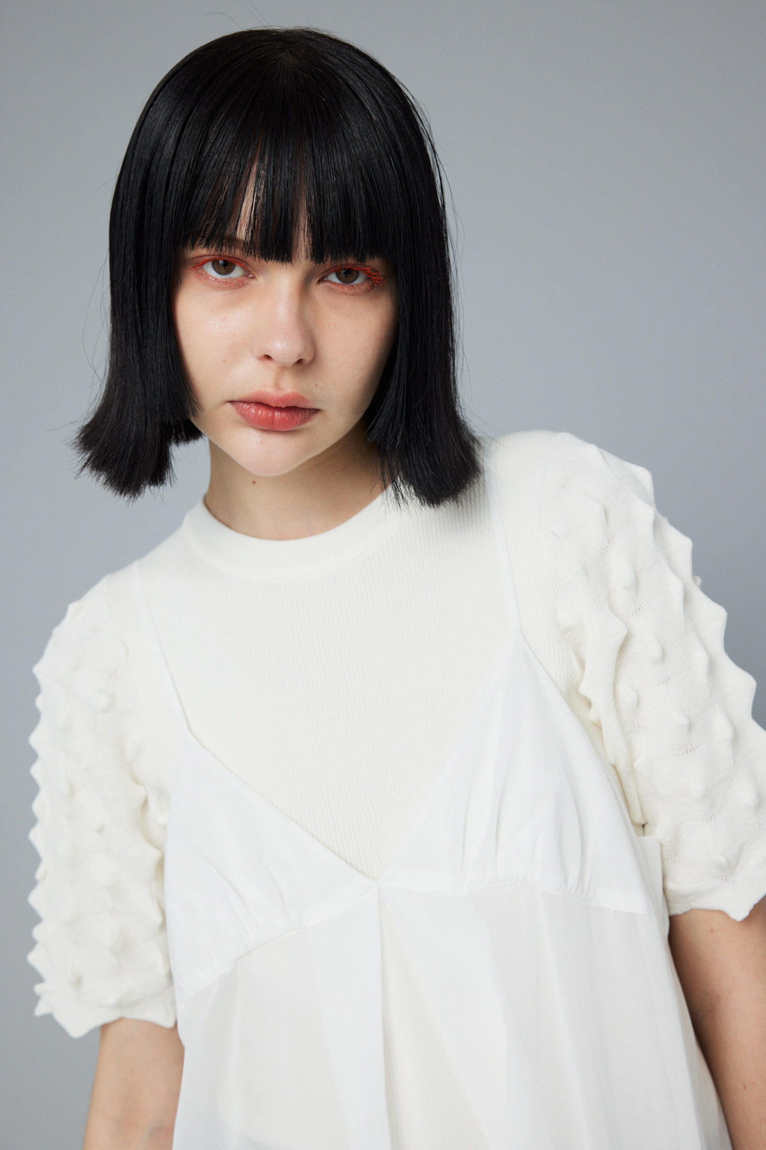 シアー素材の透け感を生かしたアイテムで、ヘリンドットサイが得意とするレイヤードスタイルを夏場も楽しめる一枚。