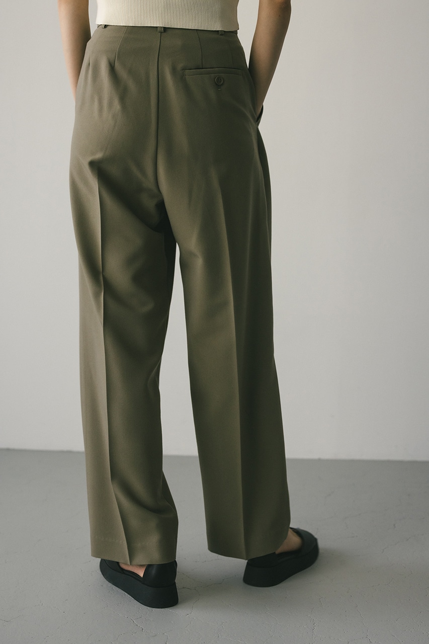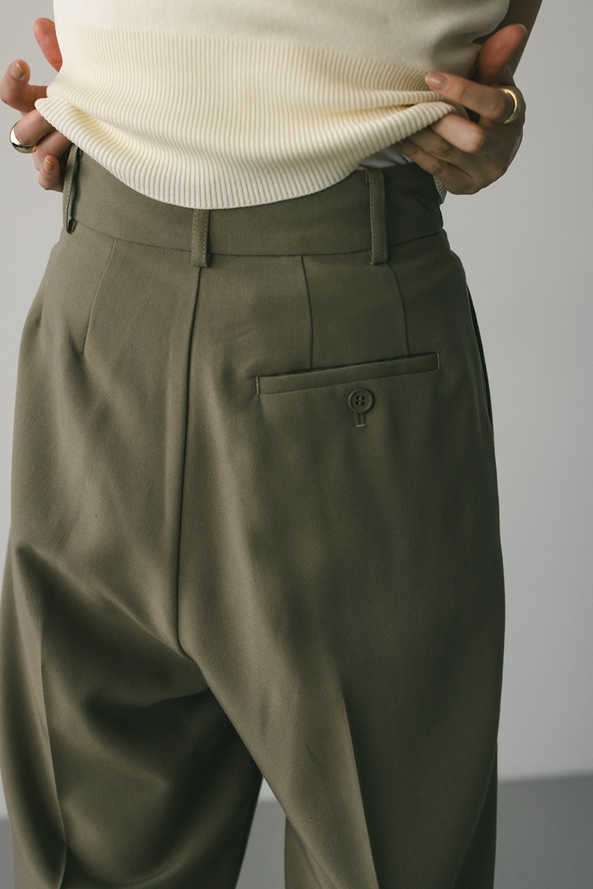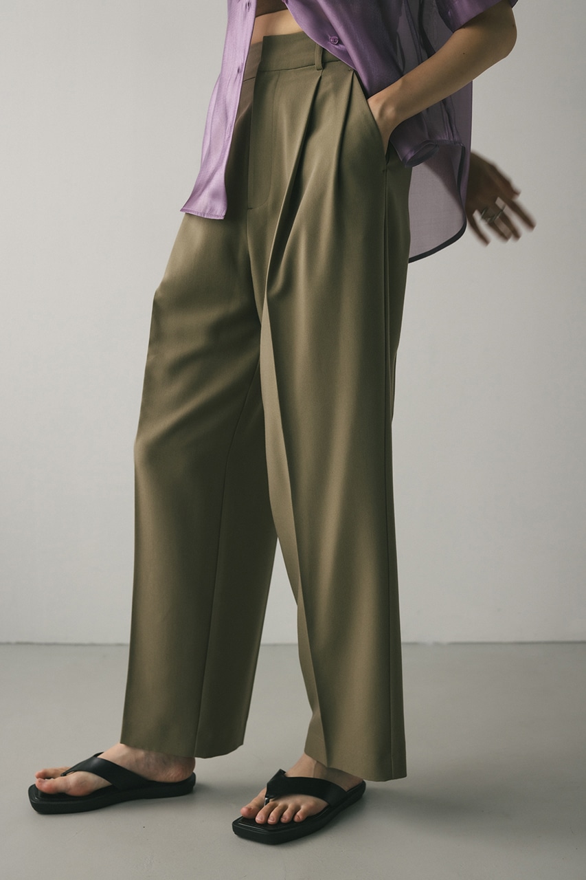 深く入れた2本のタックとセンタープレスが美しいシルエットをつくり、上品なマニッシュモードスタイルを完成させます。