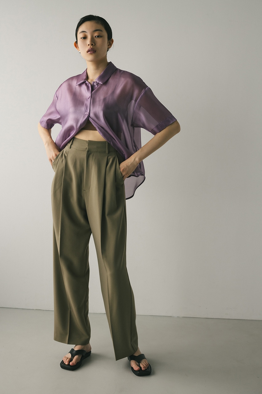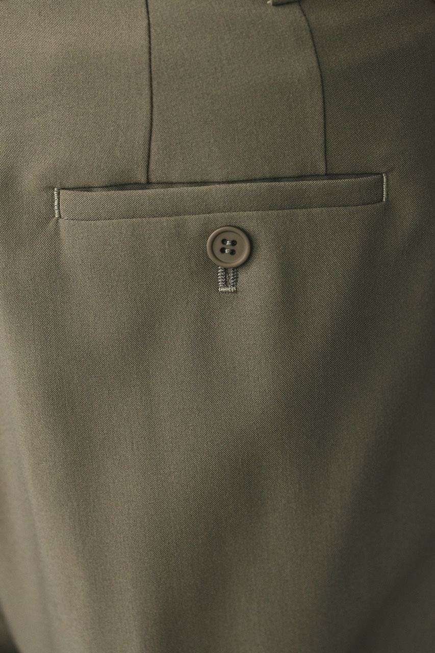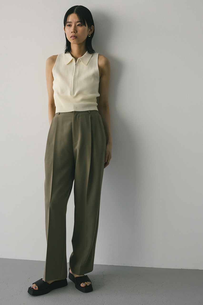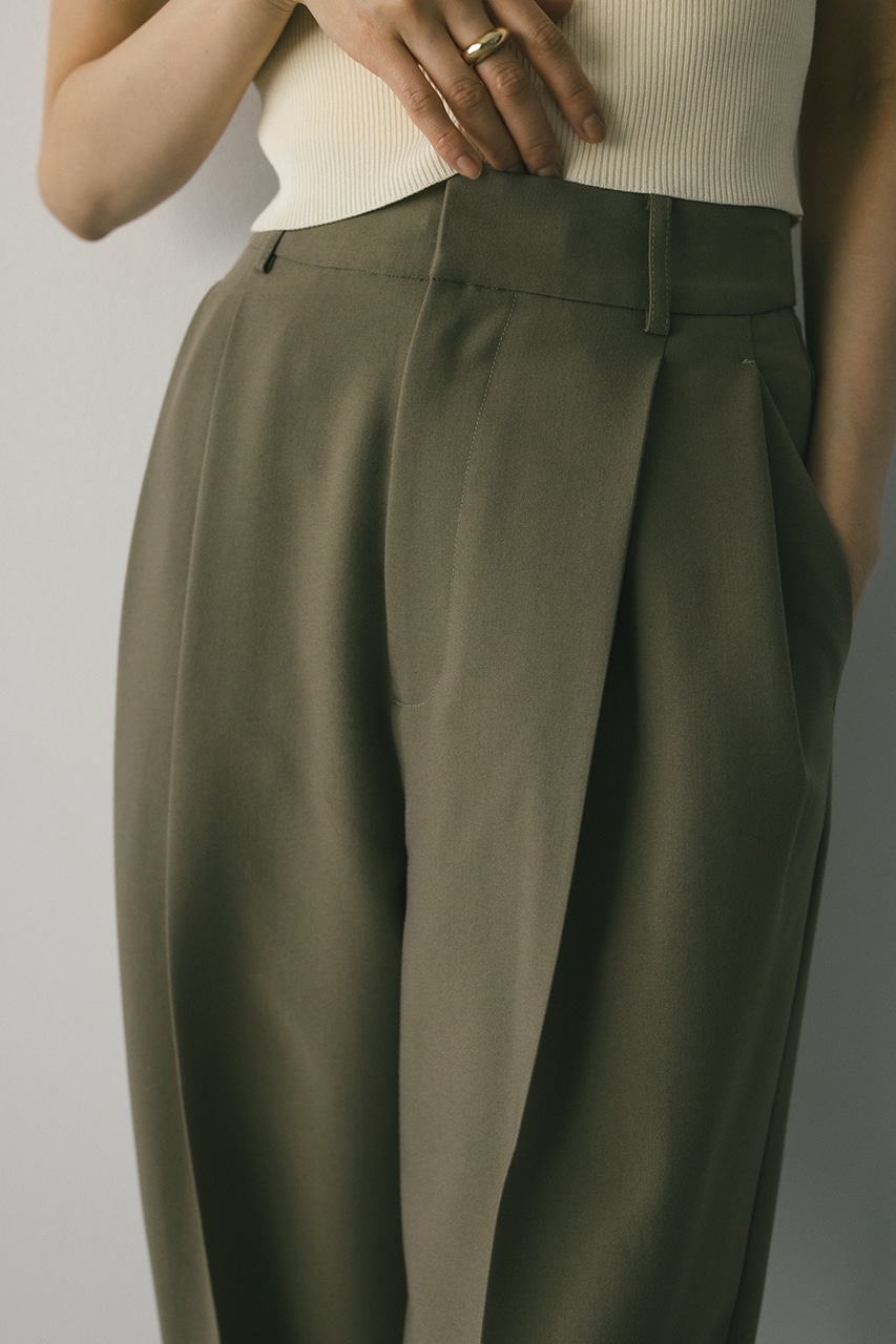 深く入れた2本のタックとセンタープレスが美しいシルエットをつくり、上品なマニッシュモードスタイルを完成させます。