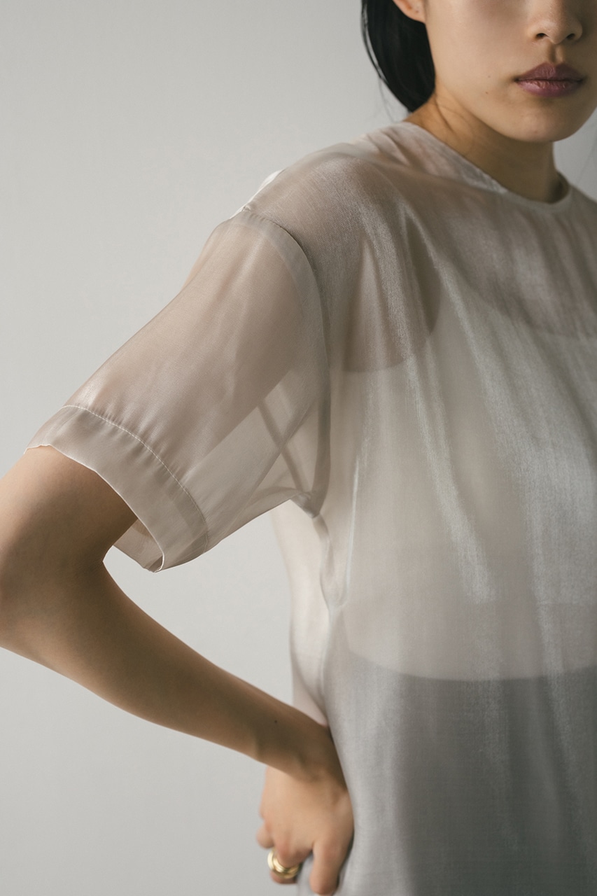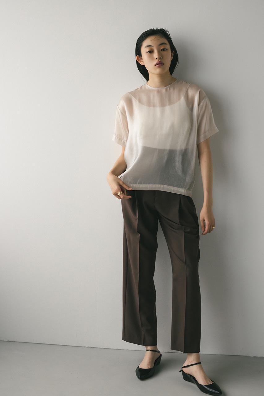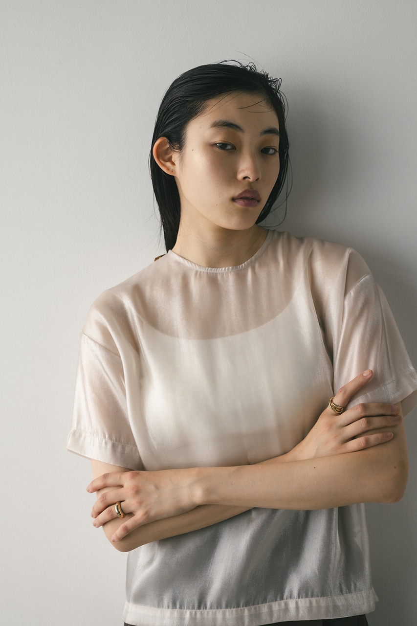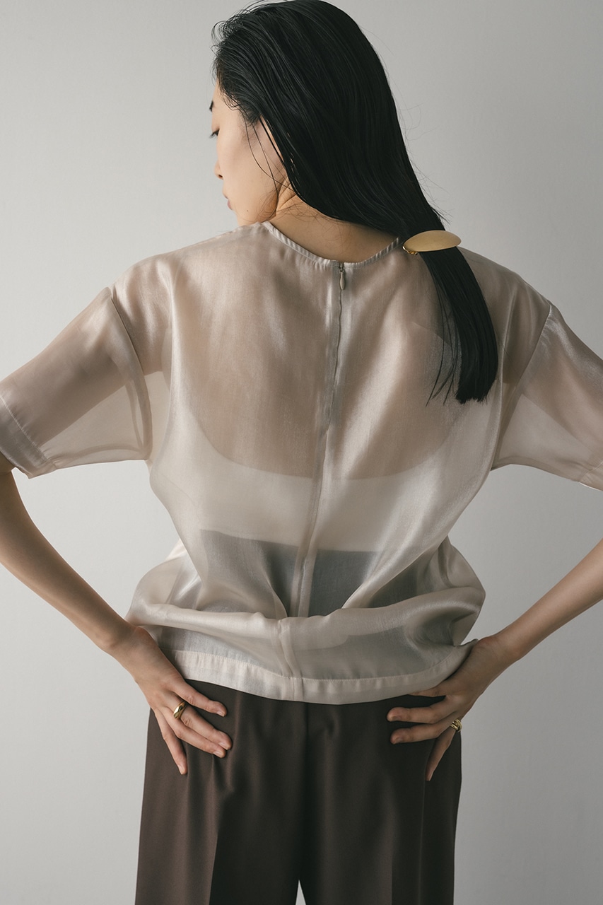インナーを透けさせての着用でこなれ感のあるスタイリングが完成する一枚です。