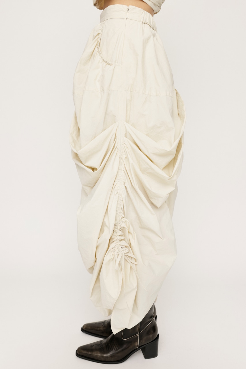 ■POINT:立体的なドレープパターンで、一枚で着映えするスカート。落ち感のあるナイロン素材を使用し、程良いハリ感にもこだわりました。