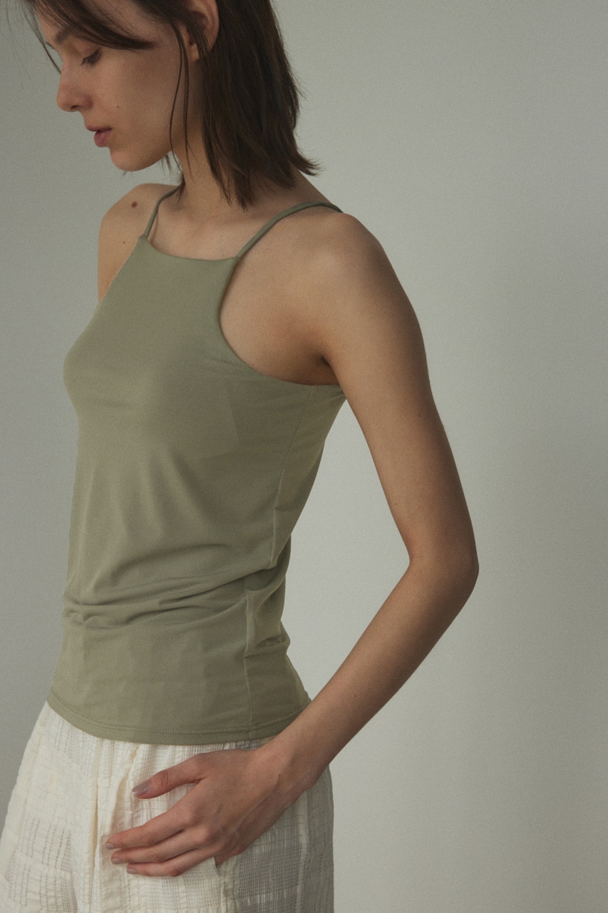 首詰まりのスクエアネックがポイントのパッド付きキャミソール。